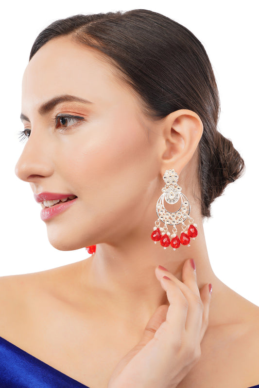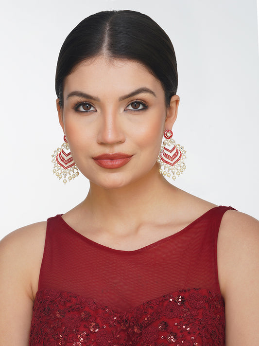 Ethnic Red Pearl Kundan Drop Earrings For Women