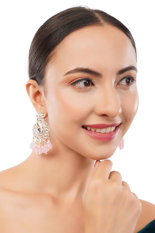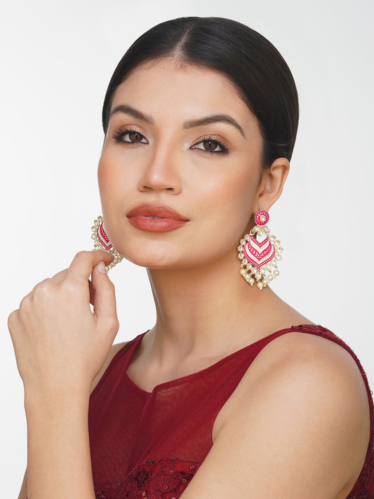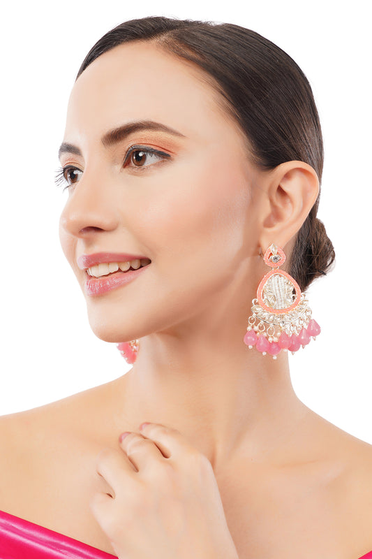 Ethnic Pink Kundan Pearl Earrings For Women