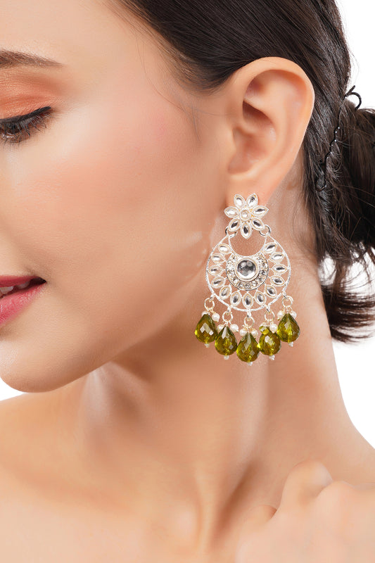 Ethnic Mustard Green Pearl Stone Earrings For Party