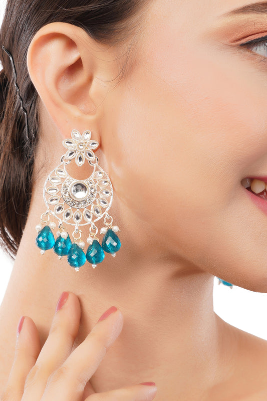 Ethnic Gold Plated Blue Pearl Earrings For Women