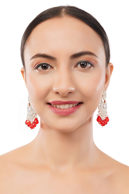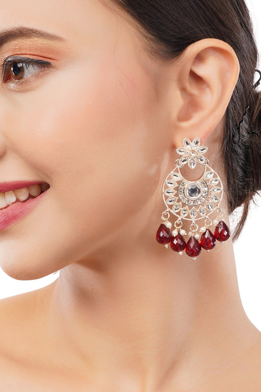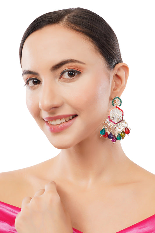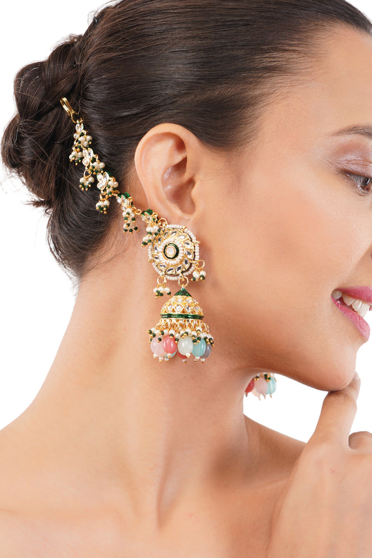 Gold Plated Multicolour Stone Pearl Earrings For Women