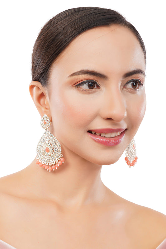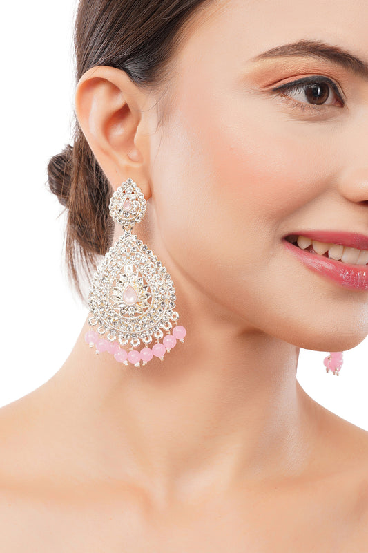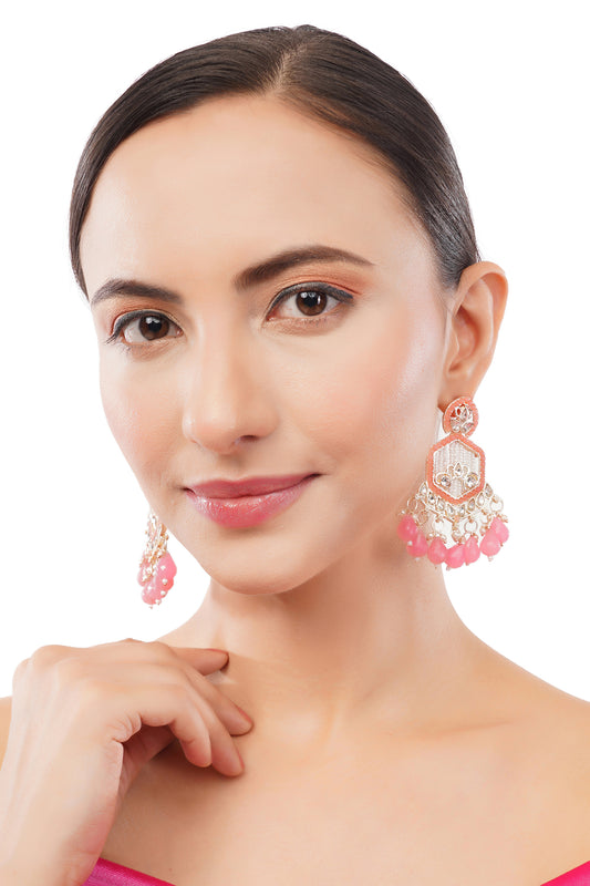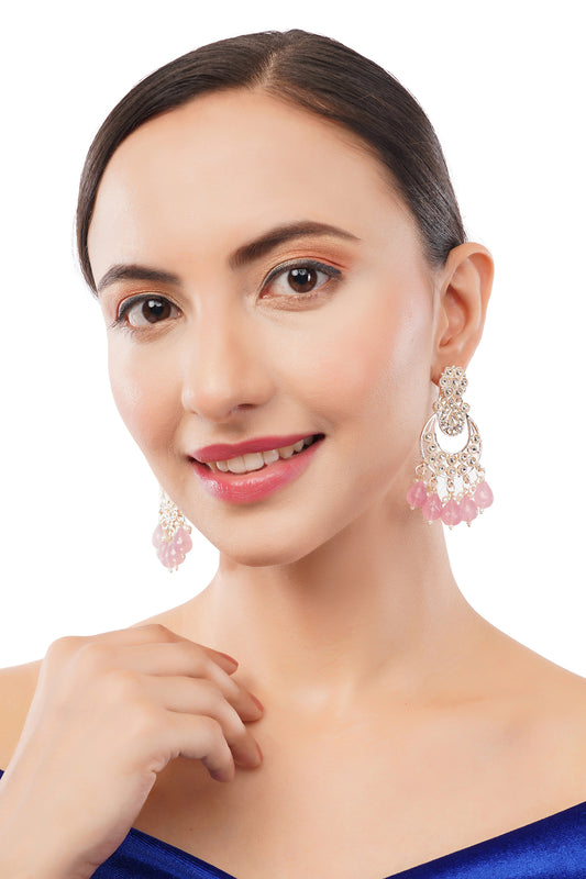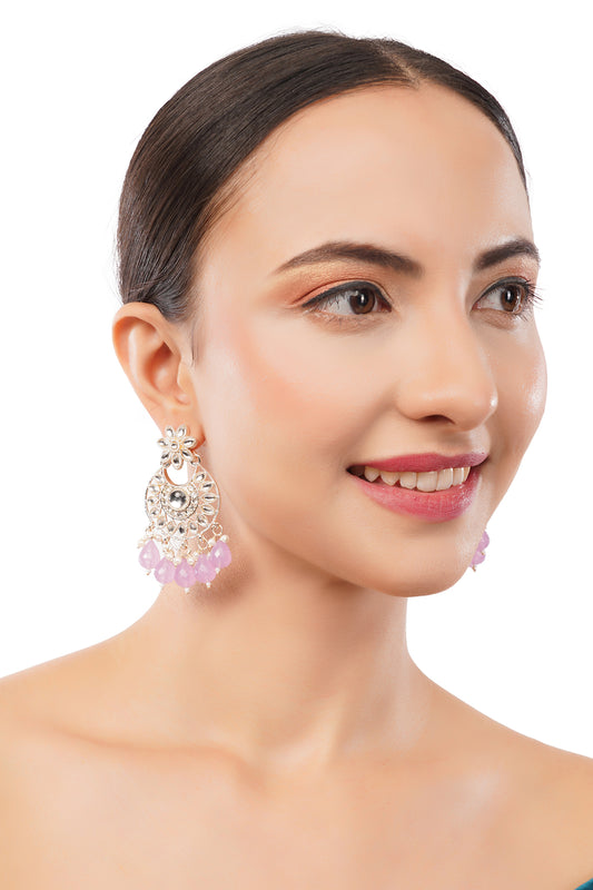 Gold Plated Light Pink Stone Chandbali Earrings For Women