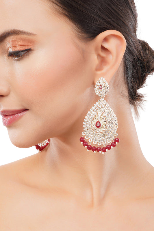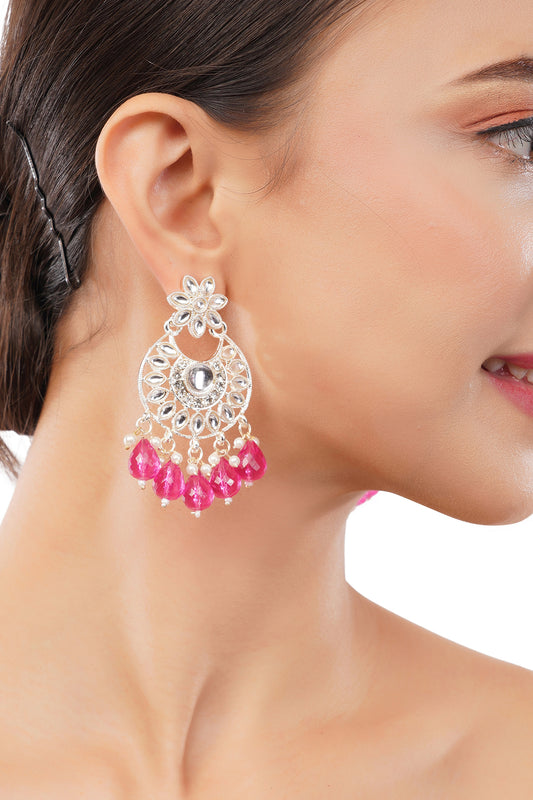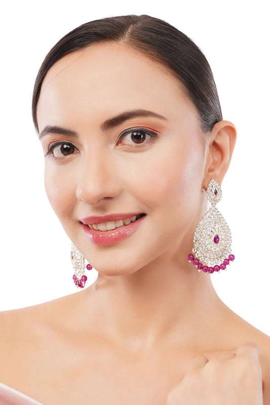 Gold Plated Magenta Pearl Drop Earrings For Women