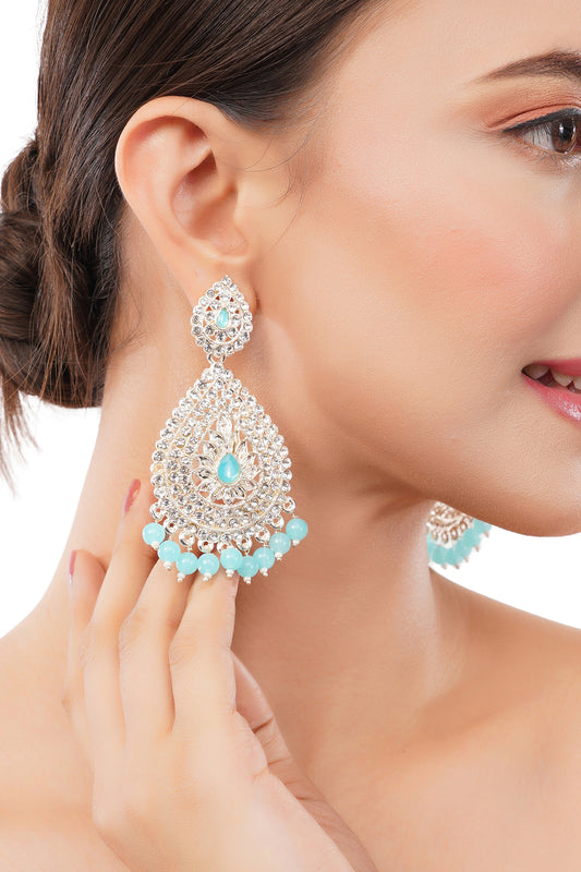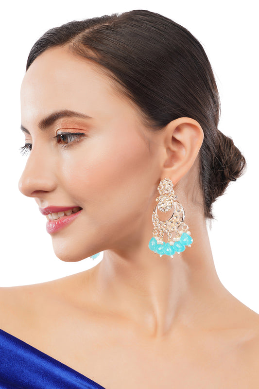Gold Plated Turquiose Blue Kundan Earrings For Women