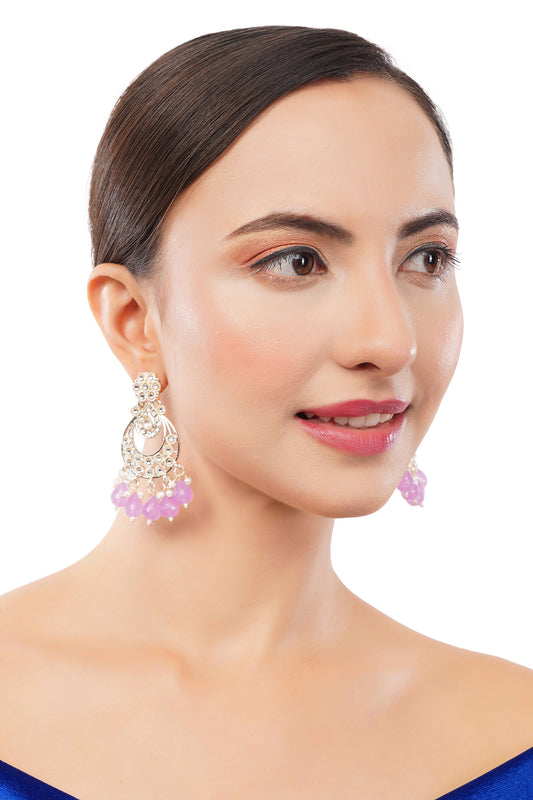 Gold Plated Purple Pearl And Stone Earrings For Women