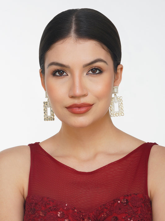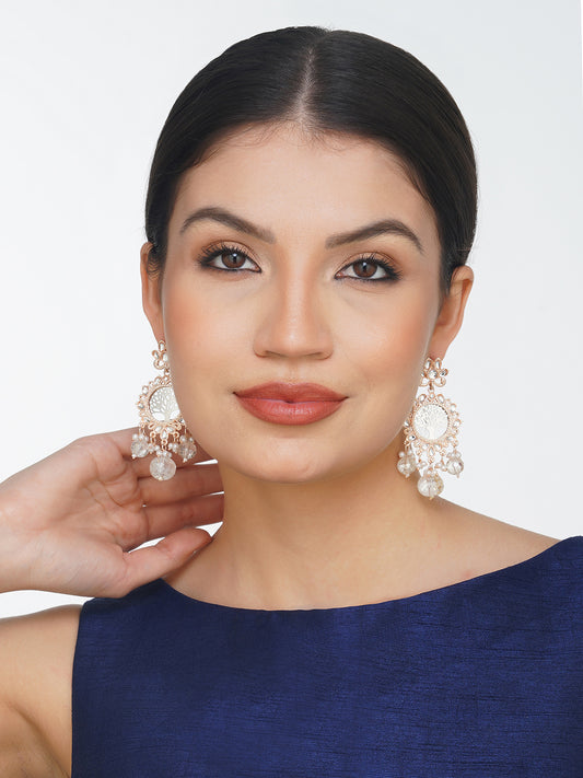 Rose Gold Kundan Transparent Pearl Long Earrings