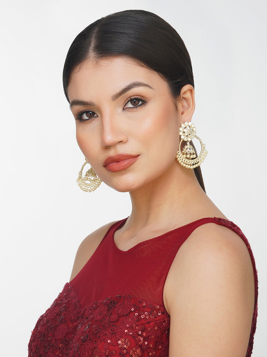 Traditional Gold Plated Mirror Chandbali Style Jhumka For Women