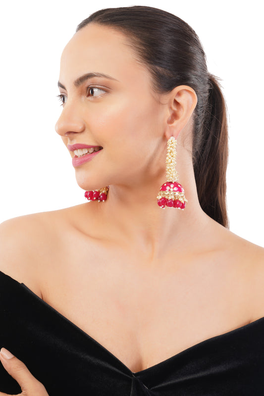 Traditional Gold Plated Peach Stone Pearl Earrings For Women