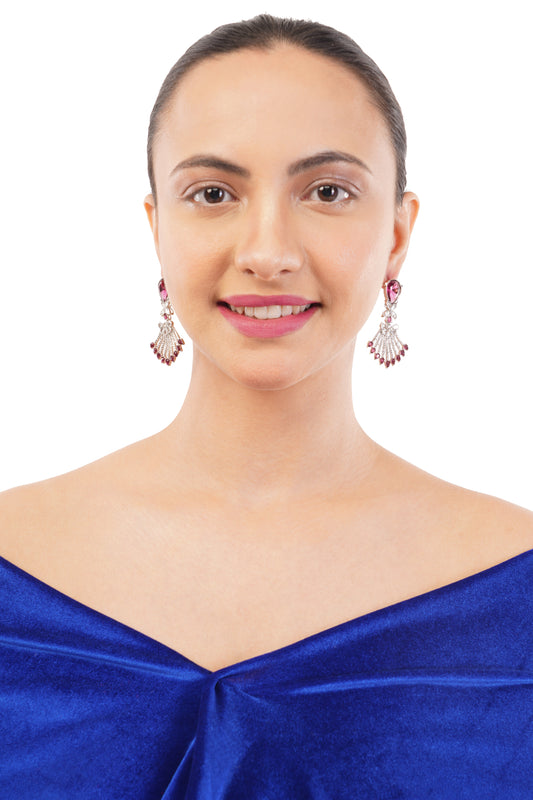 Traditional Gold Plated Purple And White Stone Pearl Earrings