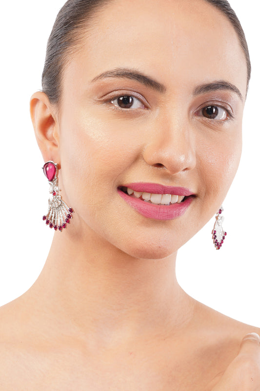 Silver Plated Red Stone Diamond Necklace With Earring And Mangtika Set