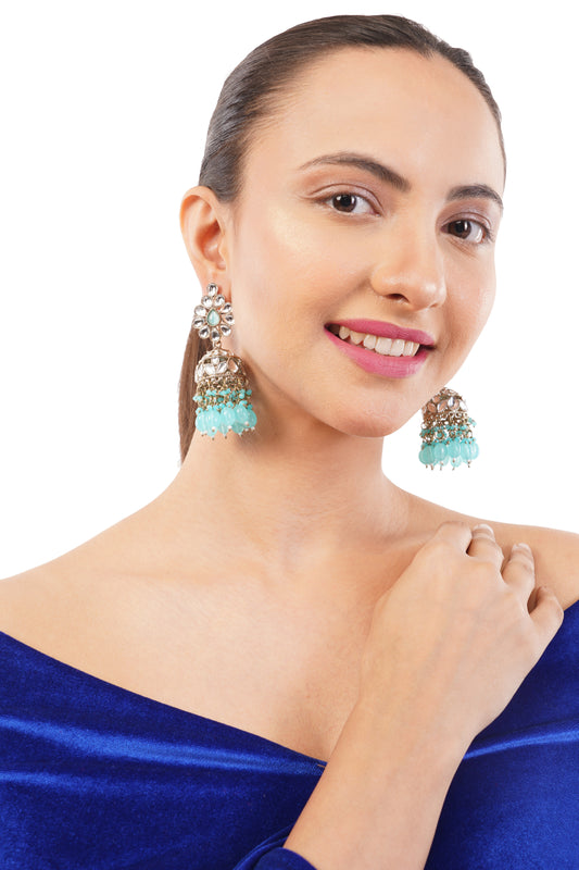 Statement Aqua Green Kundan Jhumka Earrings For Women