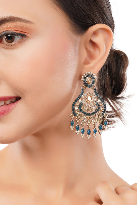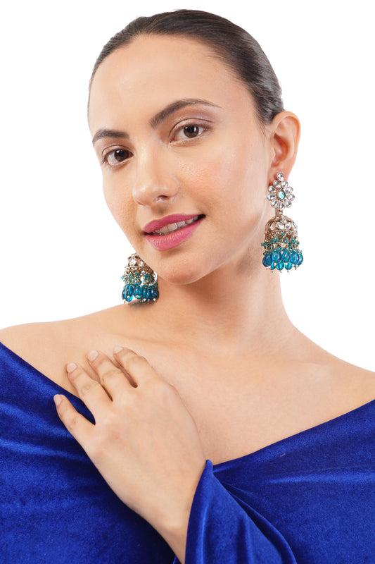 Traditional Blue Stones Cluster Beads Drop Jhumka Earrings