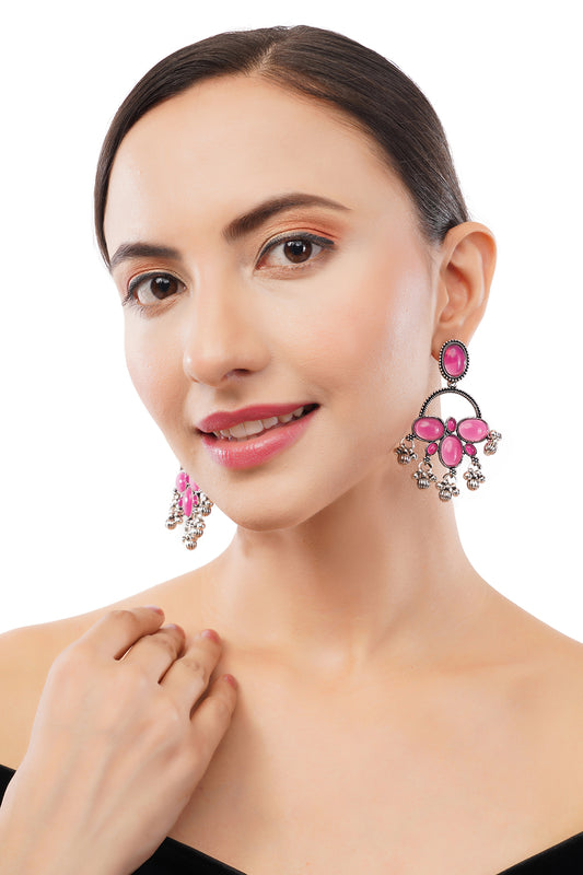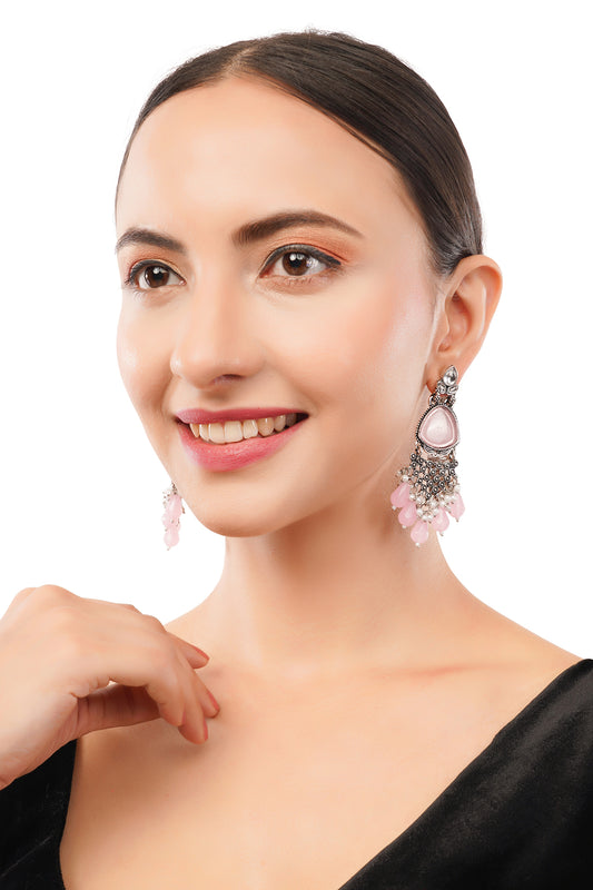 Silver Oxidised Light Pink Pearl Drop Earrings