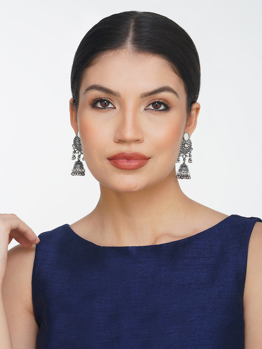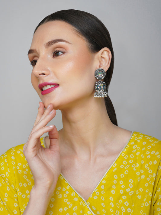 Oxidised Silver Turquoise Blue Jhumka Earrings For Women