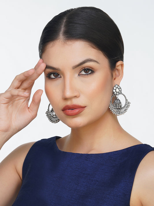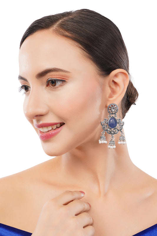 Oxidised Silver Blue Stone Jhumka Earrings For Women