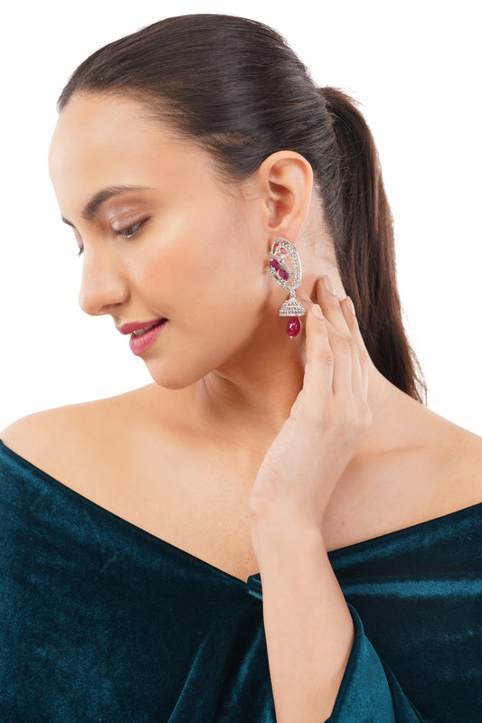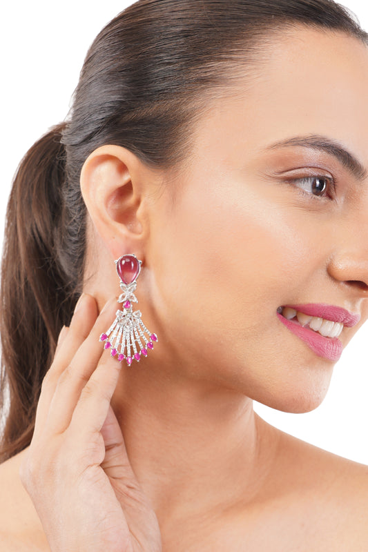 Pink Cubic Zirconia (CZ) Diamond Silver Earrings For Women