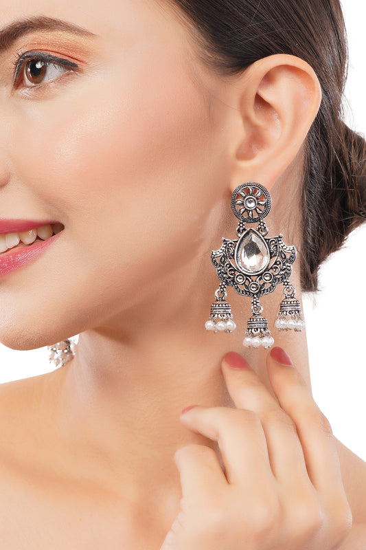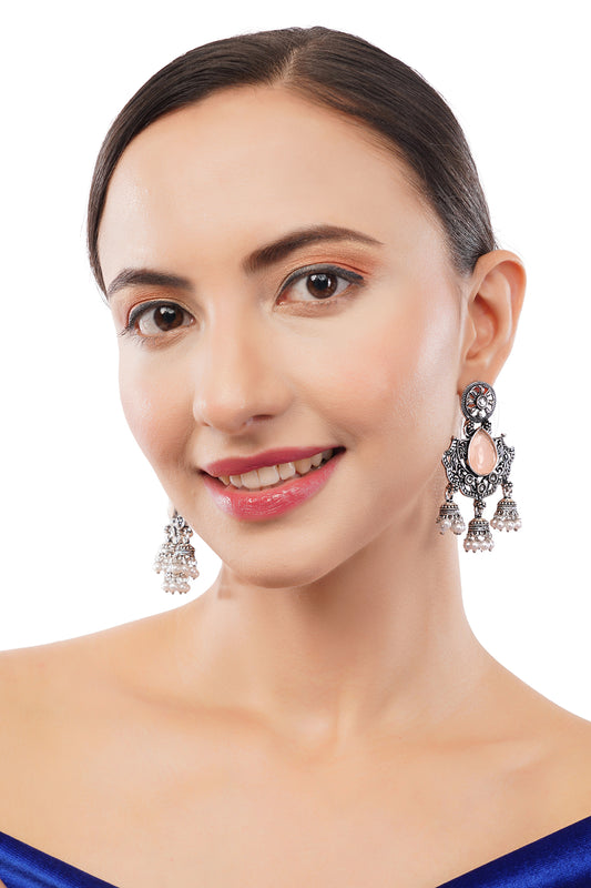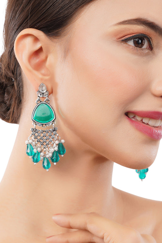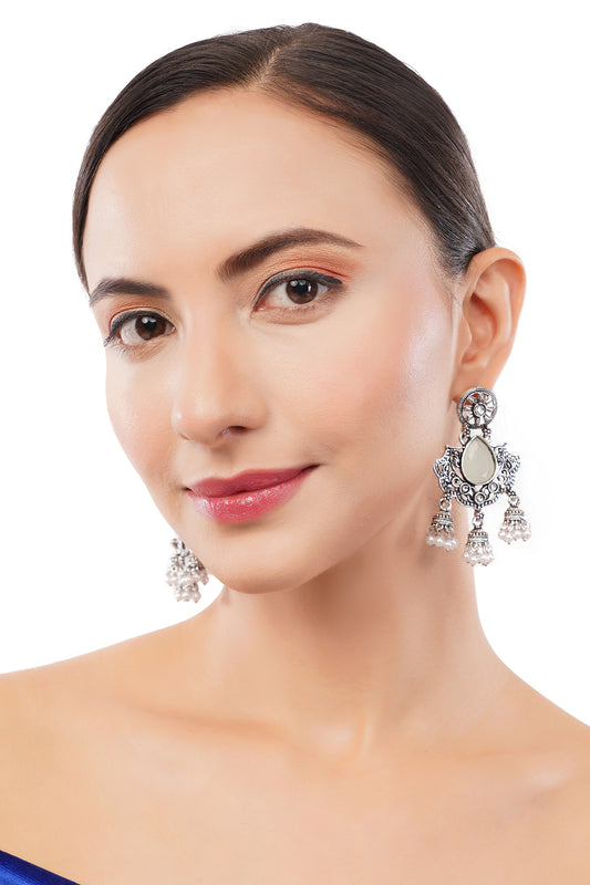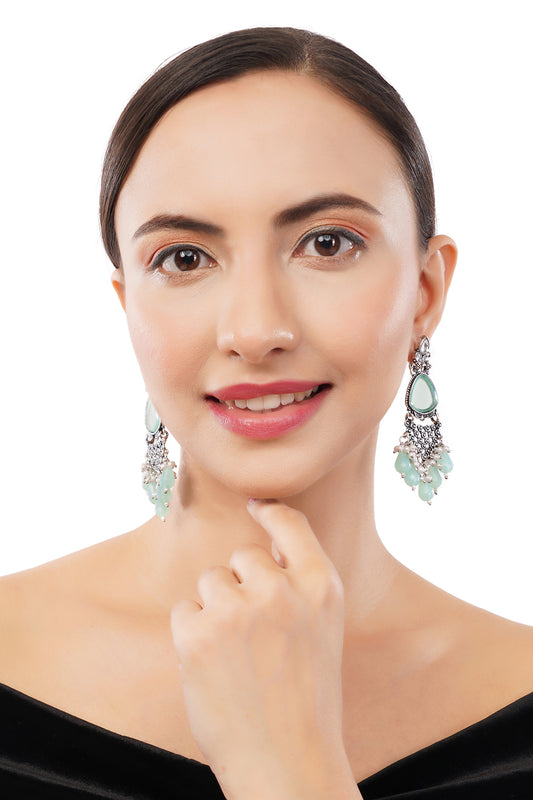 Oxidised Silver Aqua Green Pearl Earrings For Women