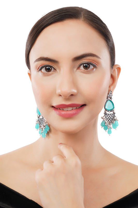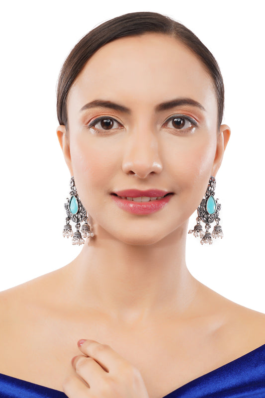 Oxidised Silver Turquoise Blue Stone Earrings For Women