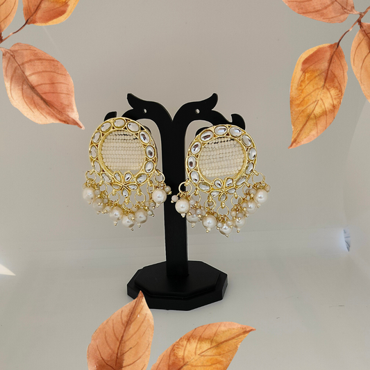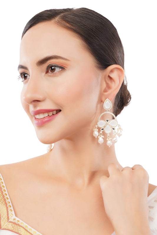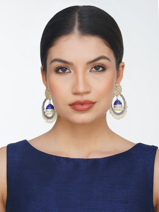 Kundan And Pearl Minakari Blue Jhumki Earrings For Women