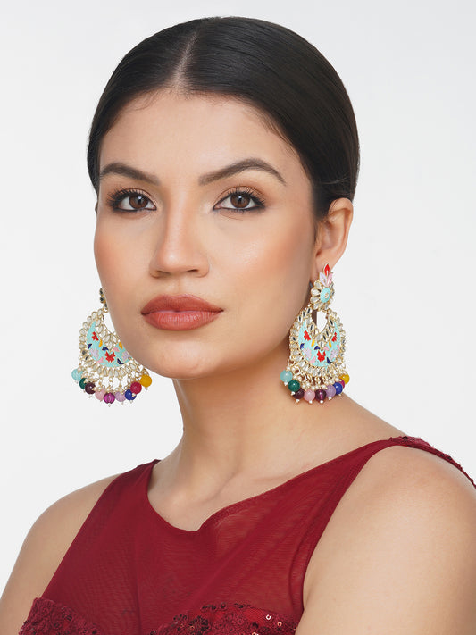 Long Gold Plated Multicolor Minakari Mirror Chandbali
