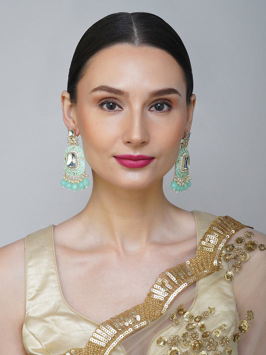 Gold Tone Green Kundan Minakari Stone Long Earring