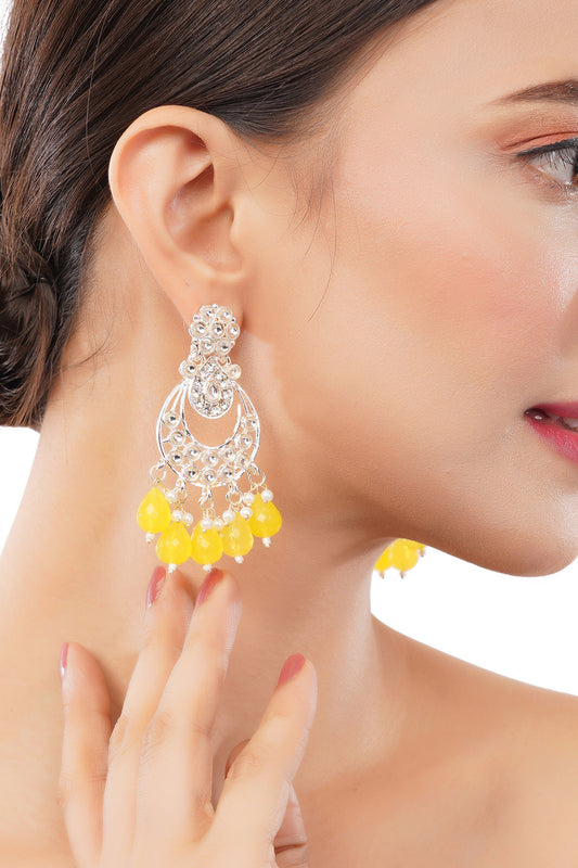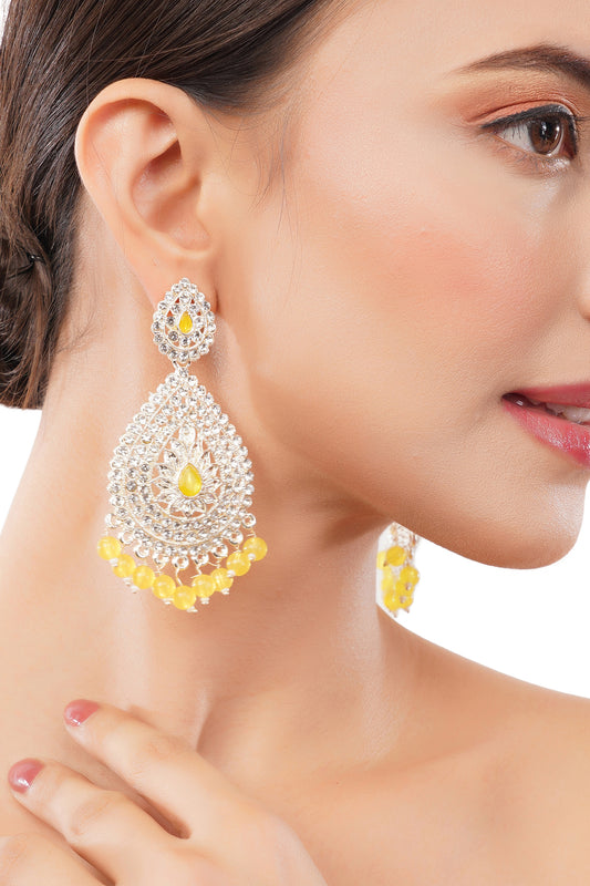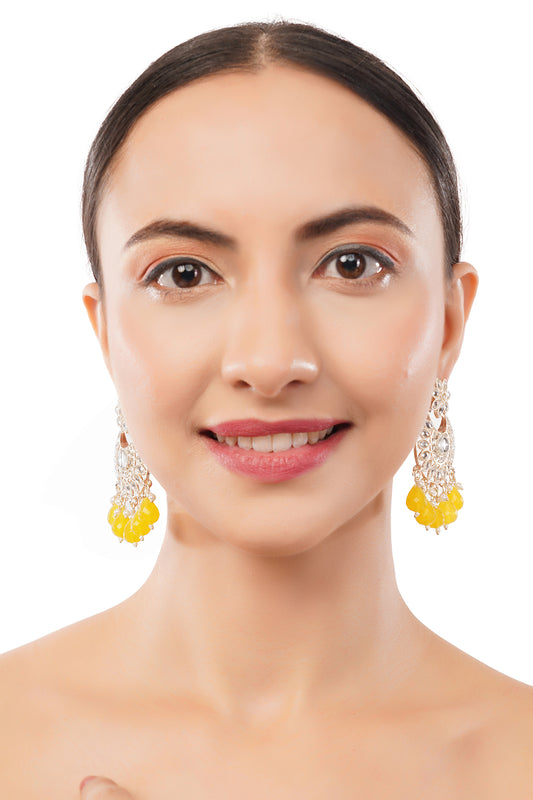 Gold Plated Yellow Stone Pearl Earrings For Haldi Ceremony