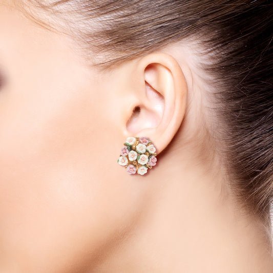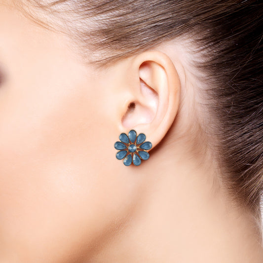 Western Stylish Grey Flower Crystal Stud Earrings For Women