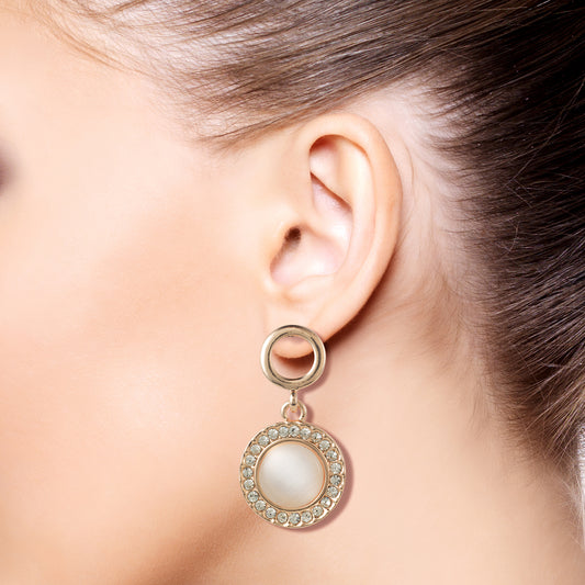 Elegant Stone Green Flower With Pearl Stud Earring For Women