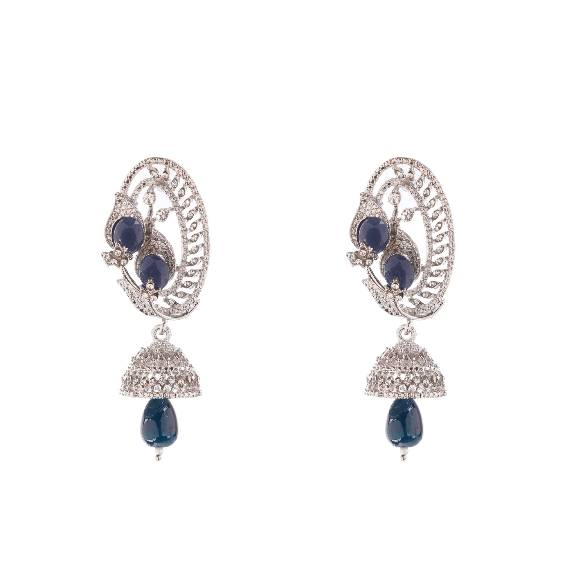 Blue Sapphire Diamond Silver Pearl Earring