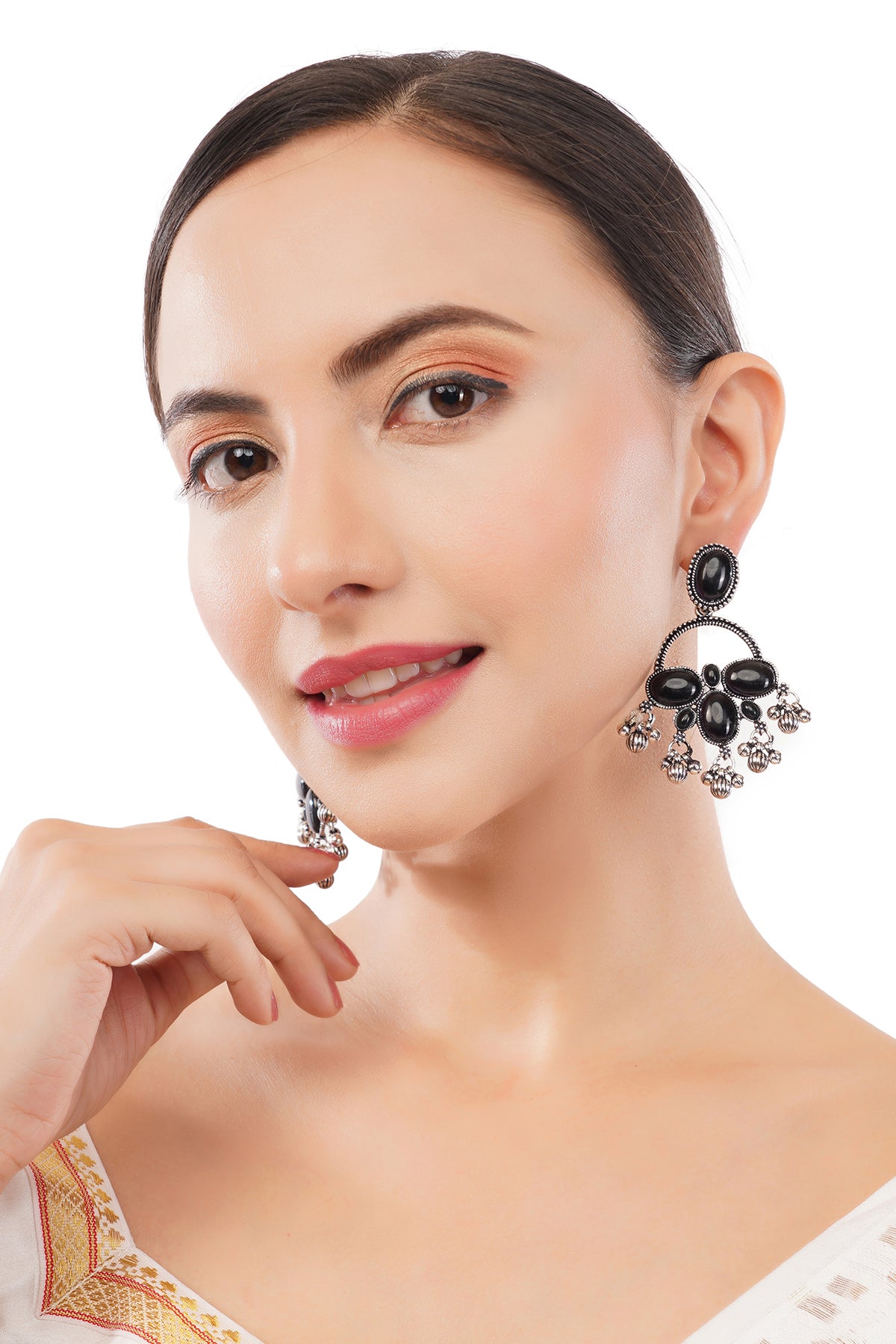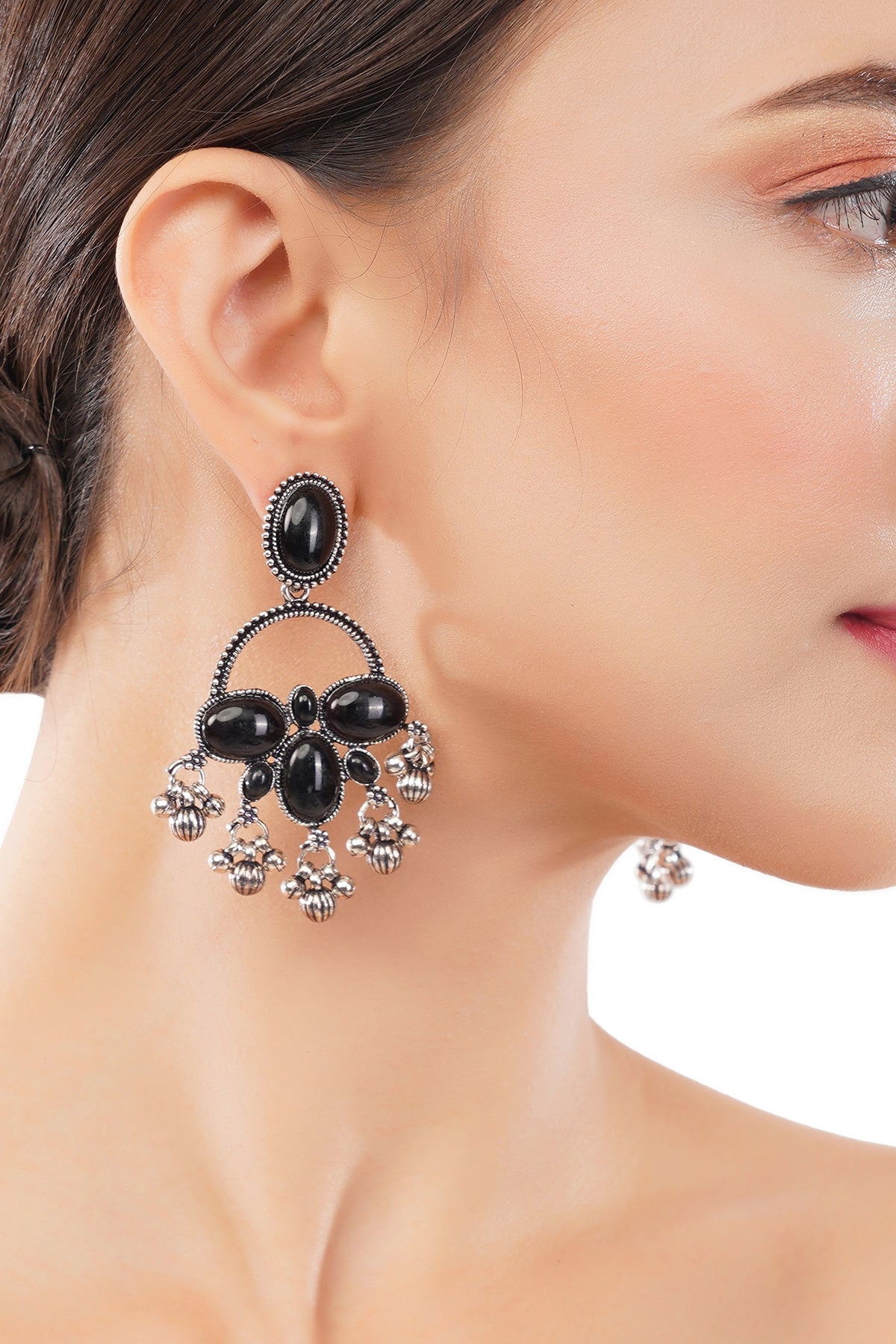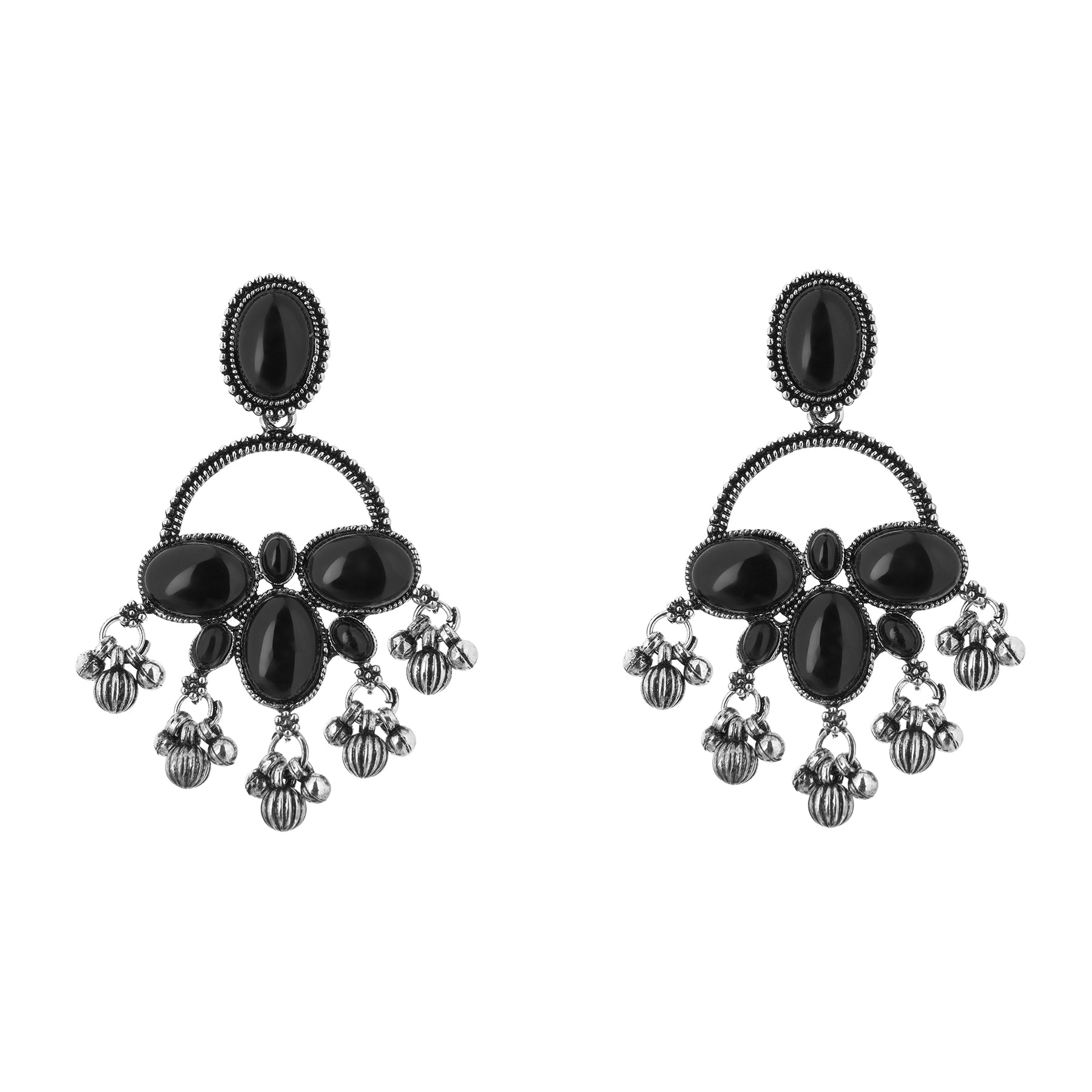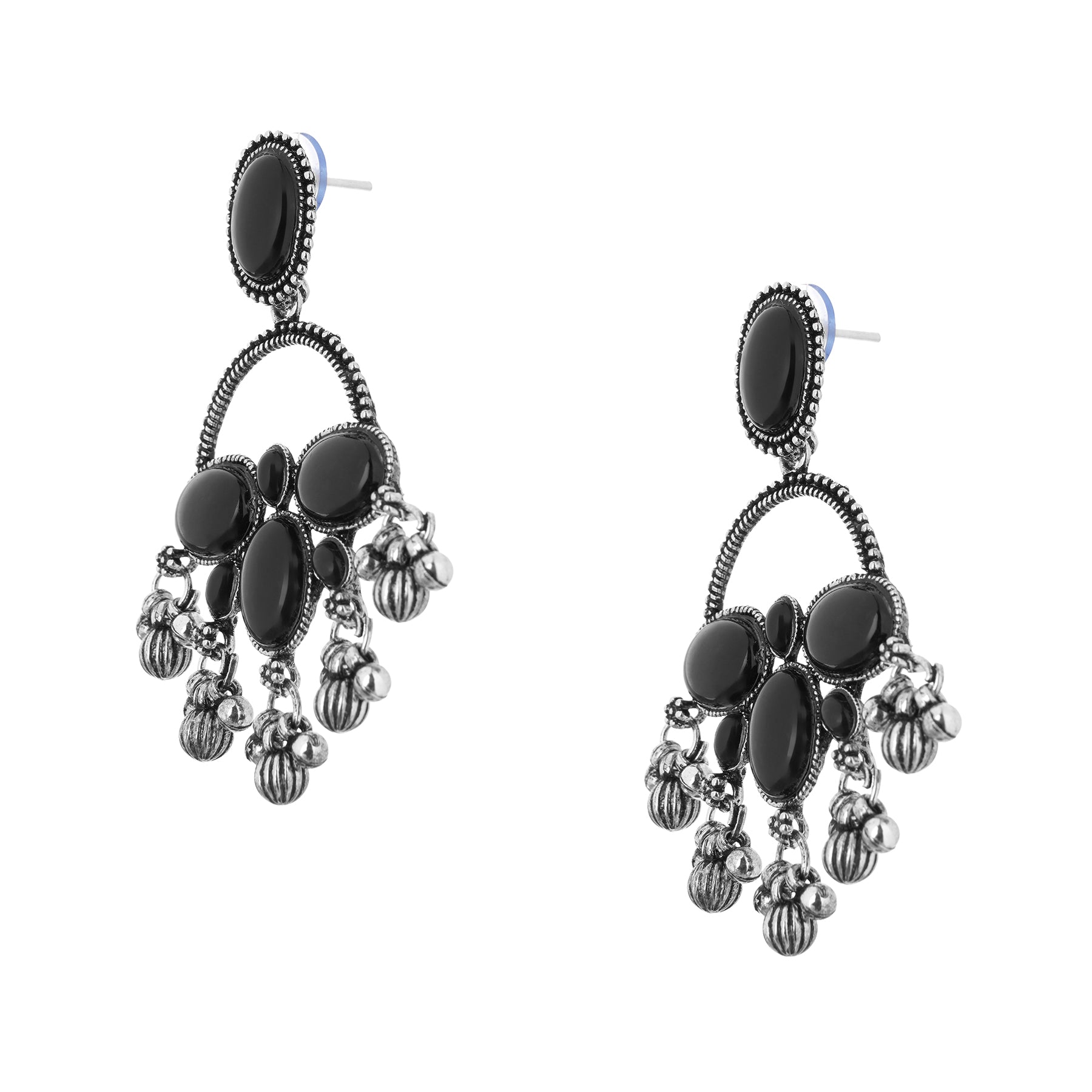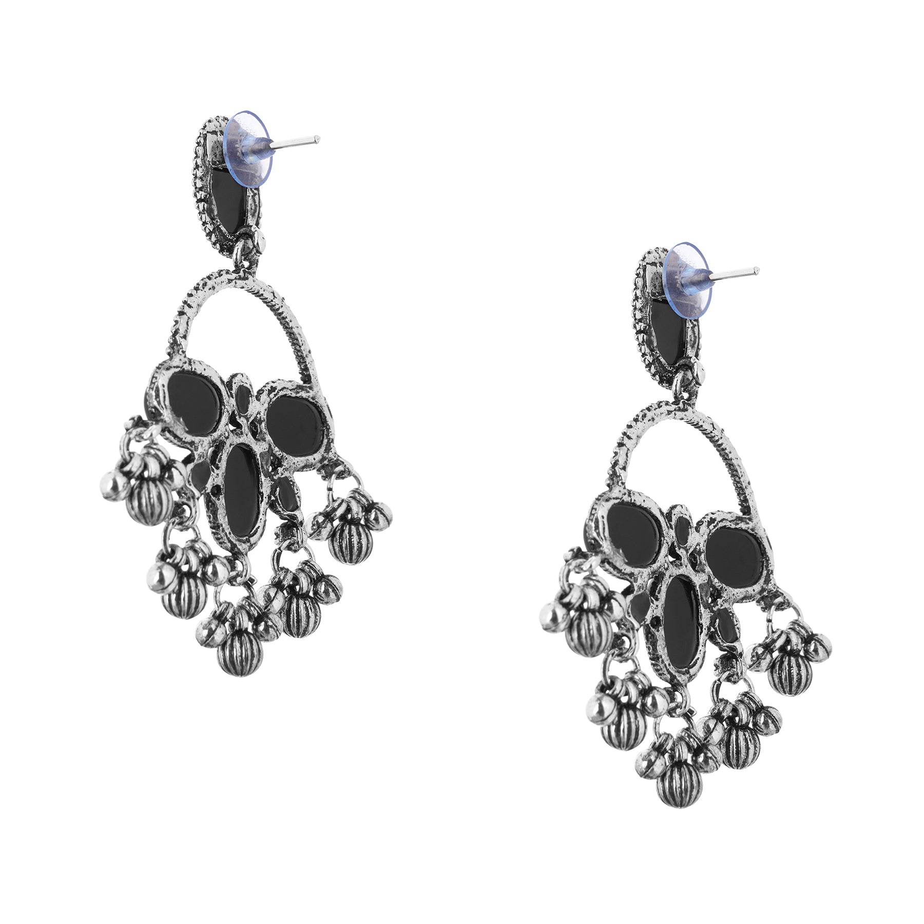 Clustertrend German Silver Black Stone Earrings For Women