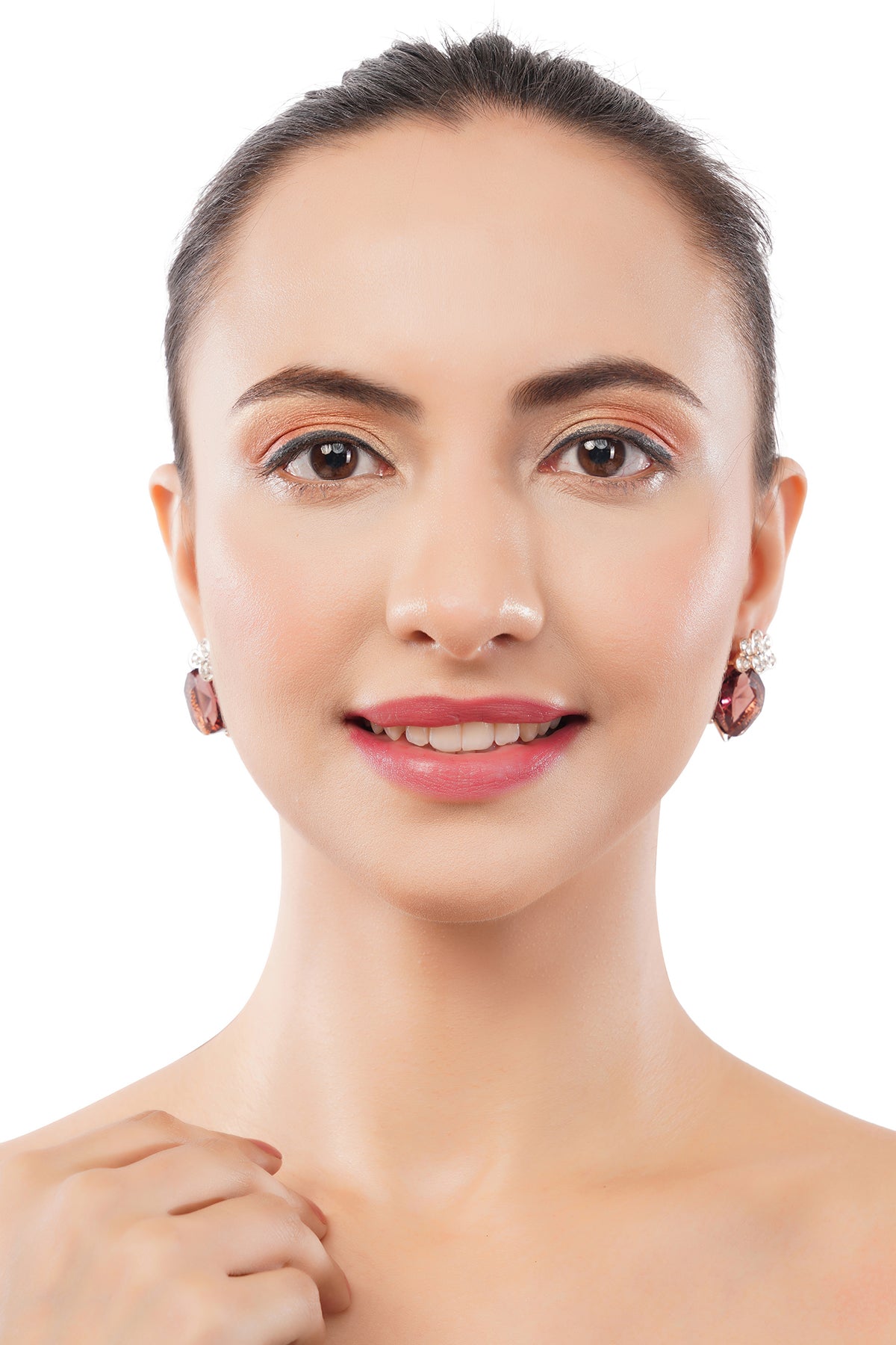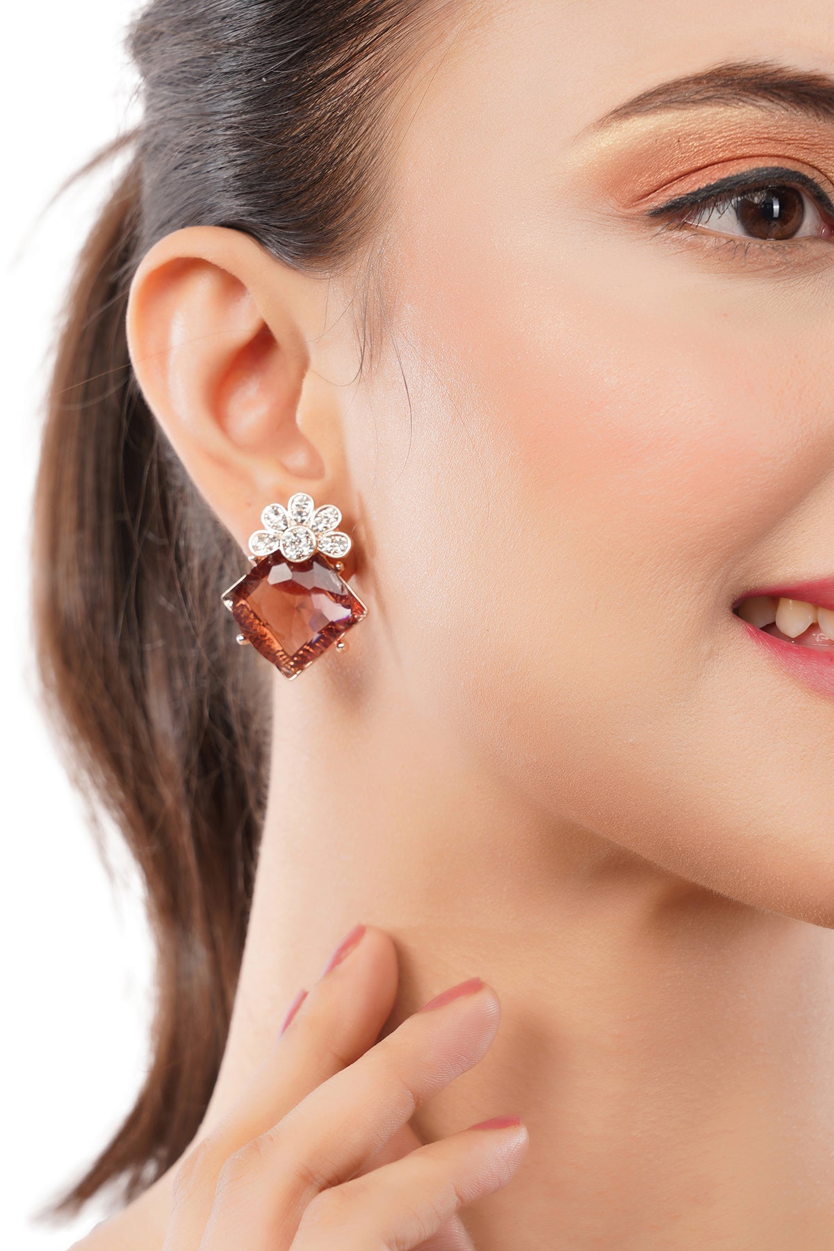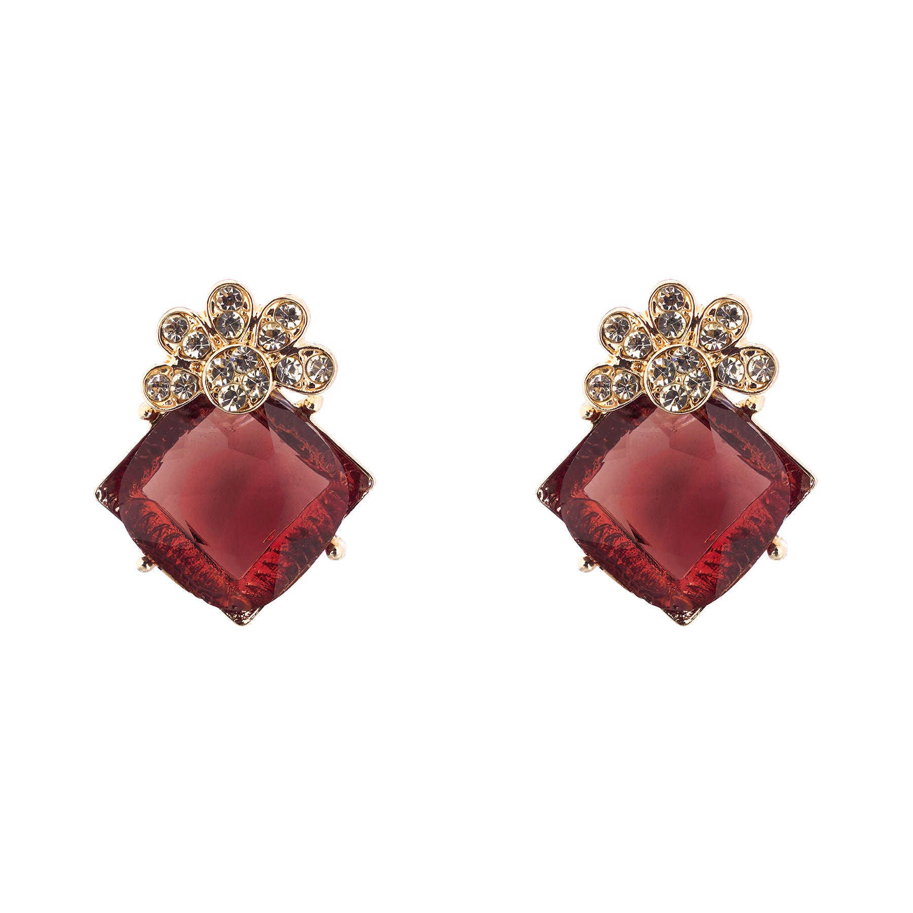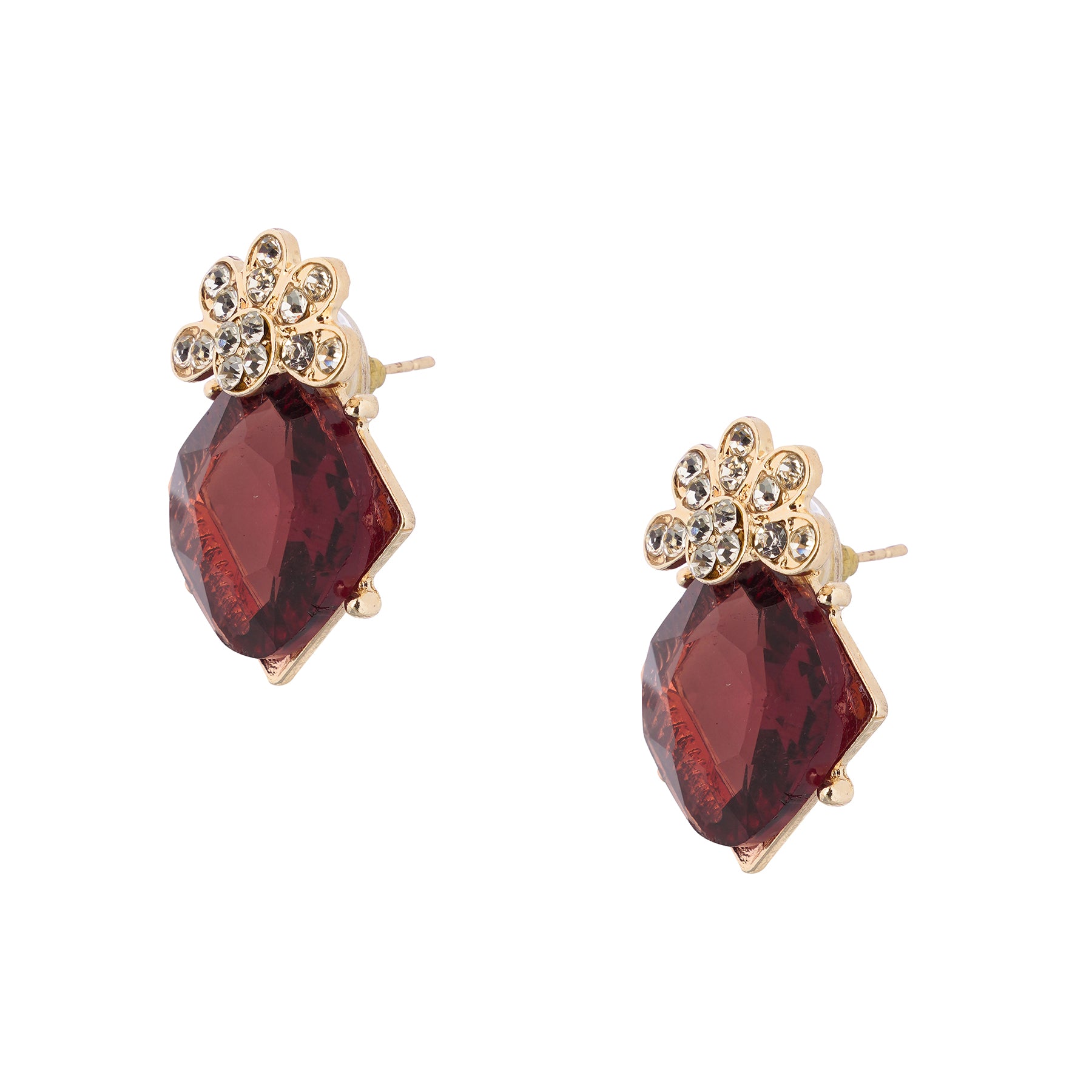 Clustertrend Gold Plated Crystal Brown Diamond Earrings