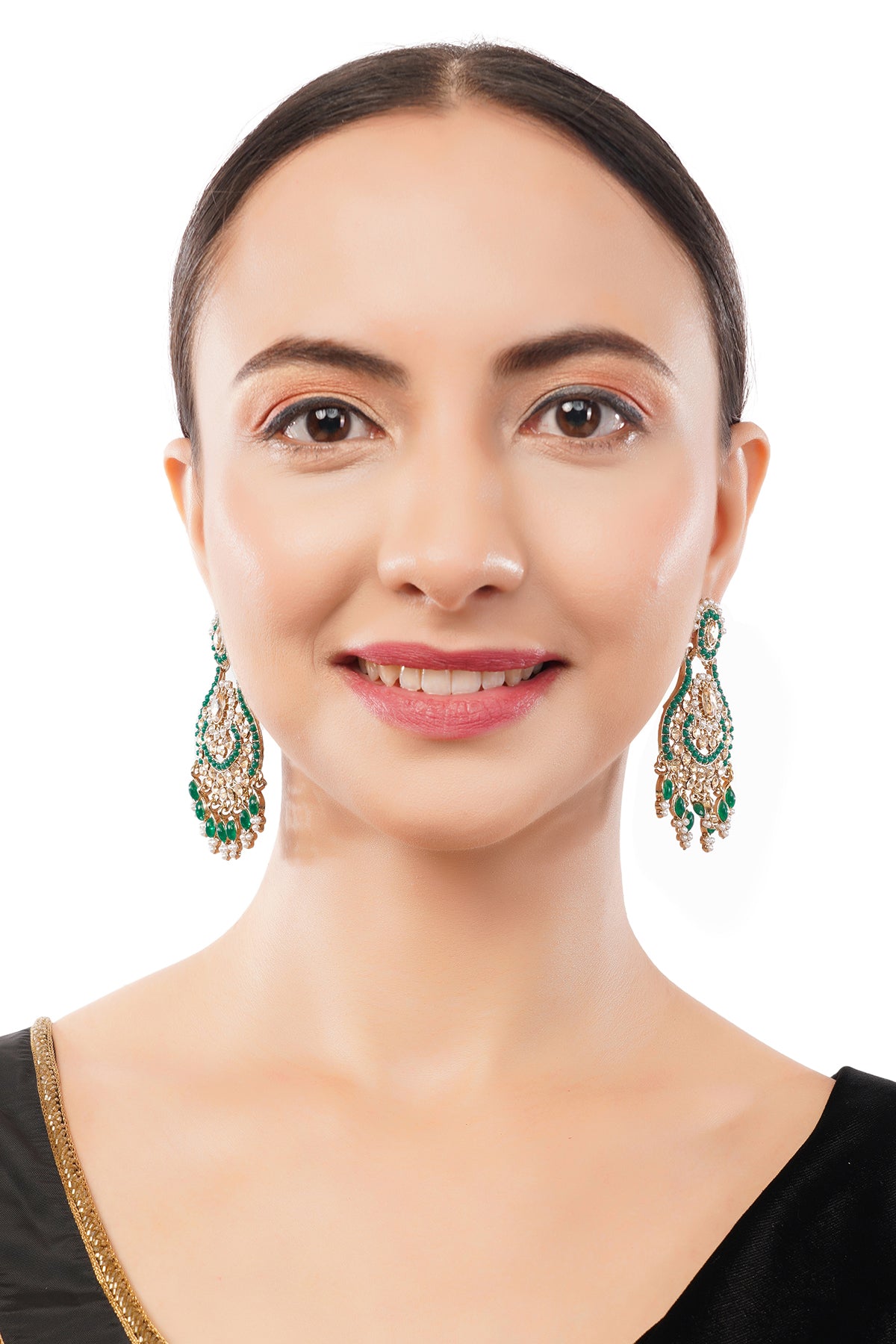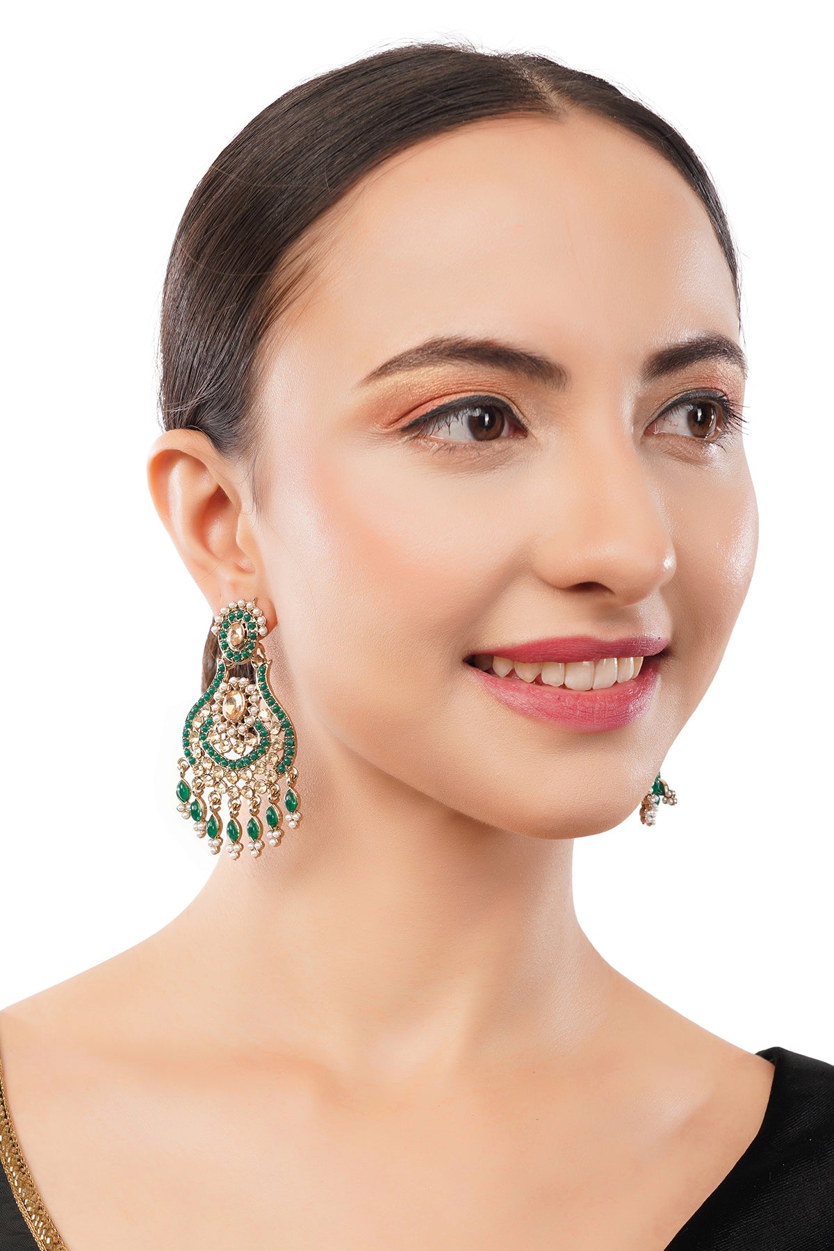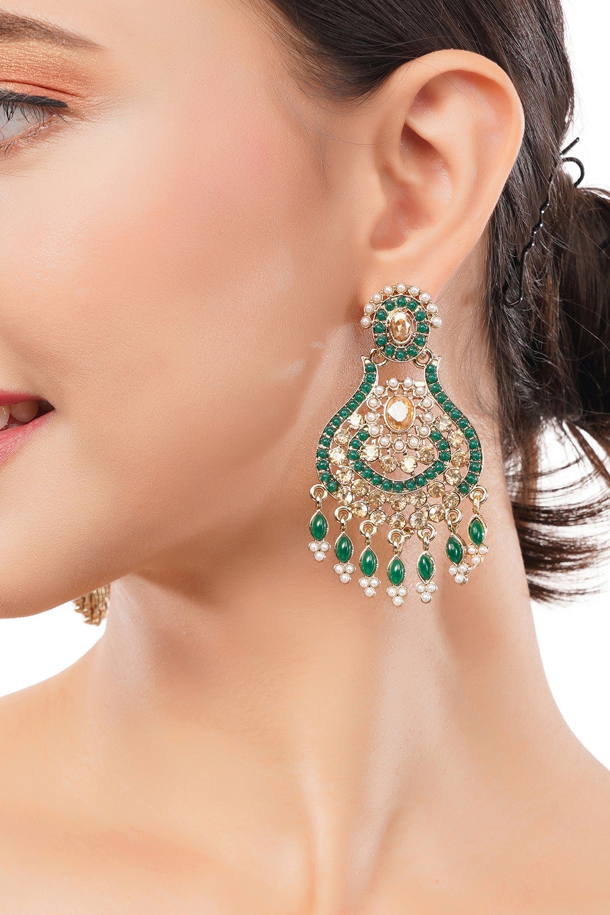 Clustertrend Gold Plated Green Stone And Pearl Earrings For Women