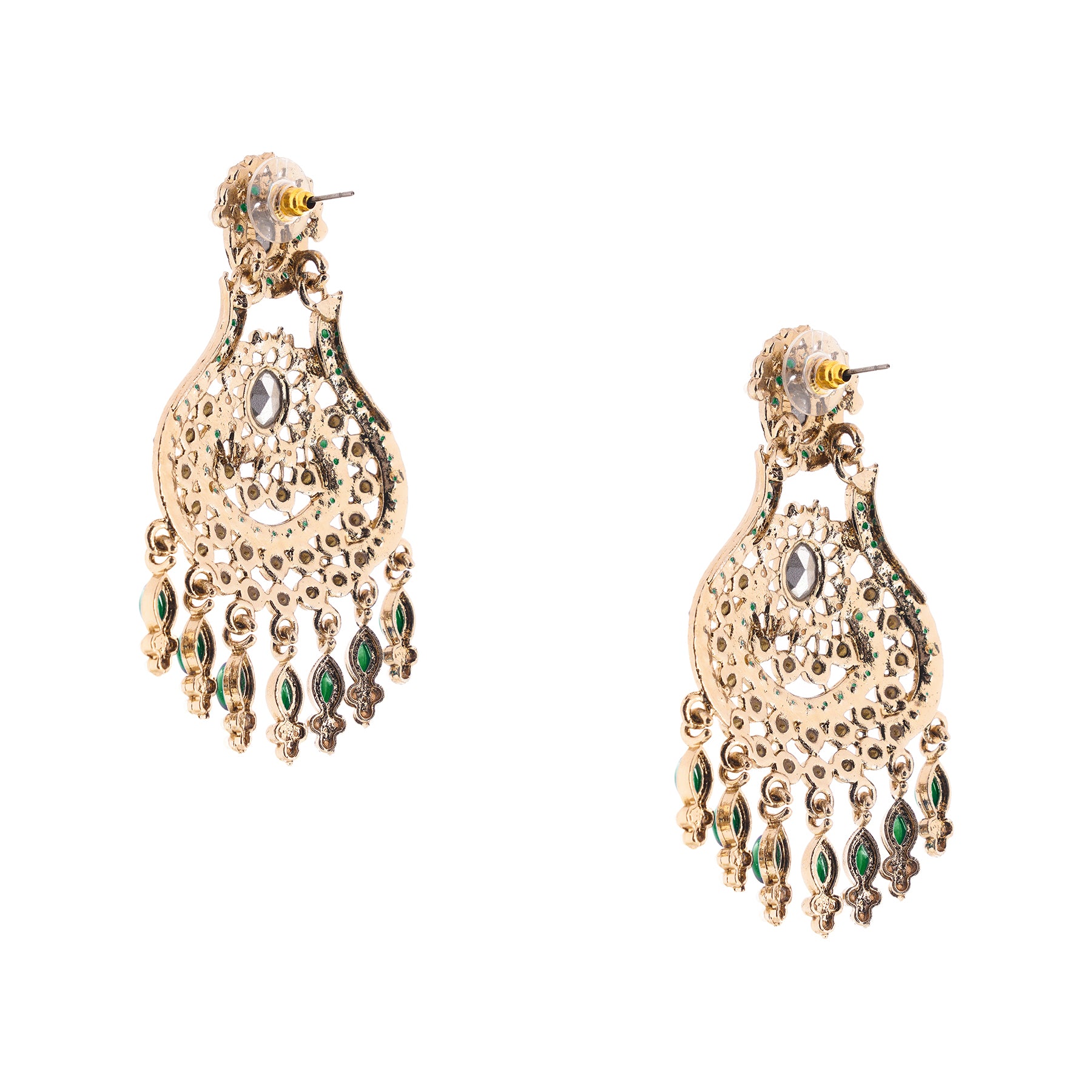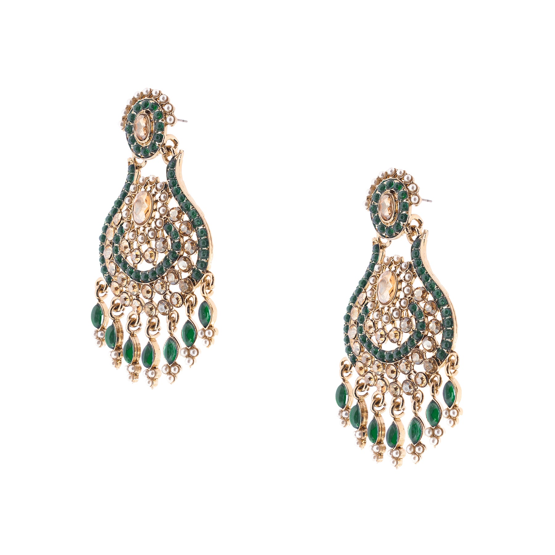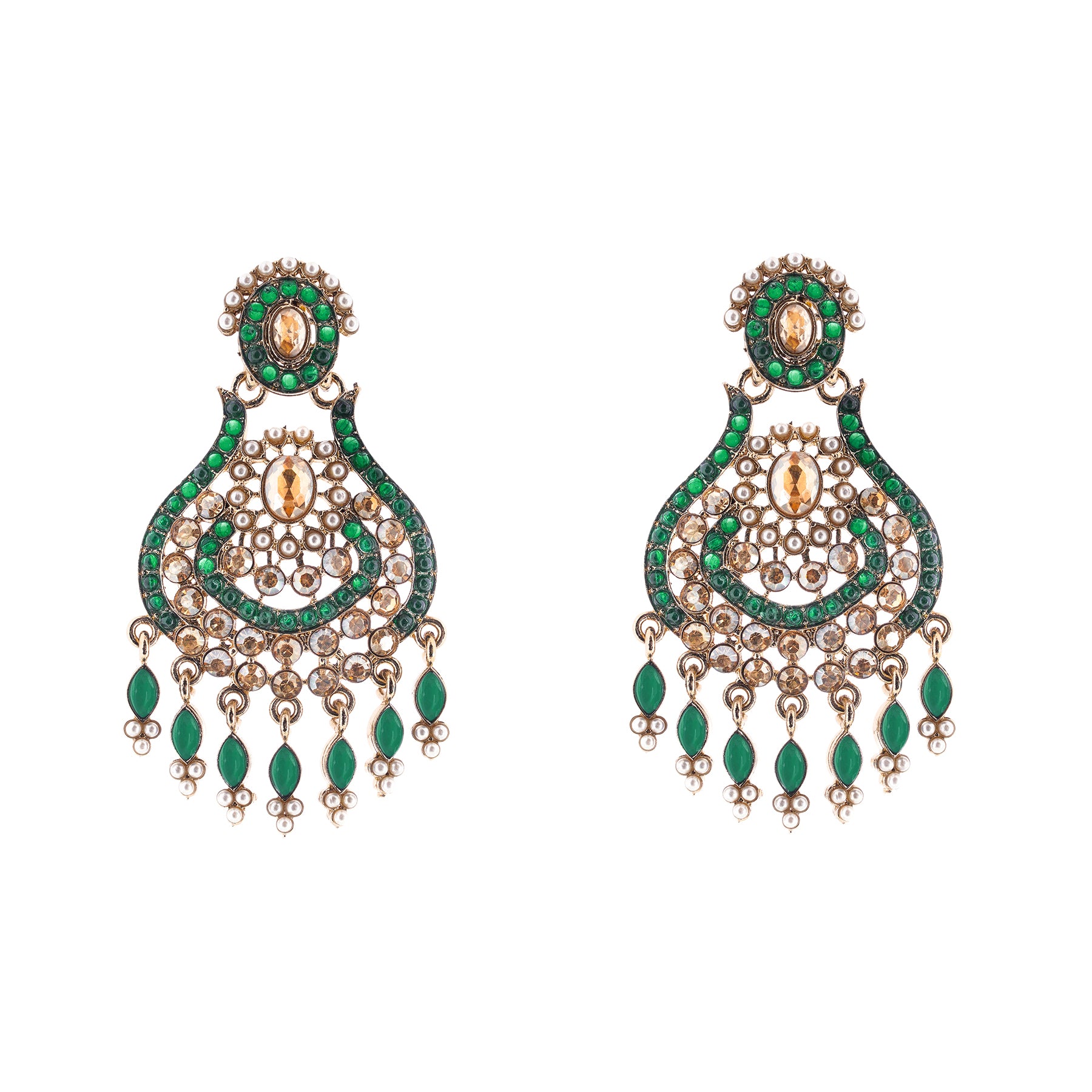 Clustertrend Gold Plated Green Stone And Pearl Earrings For Women