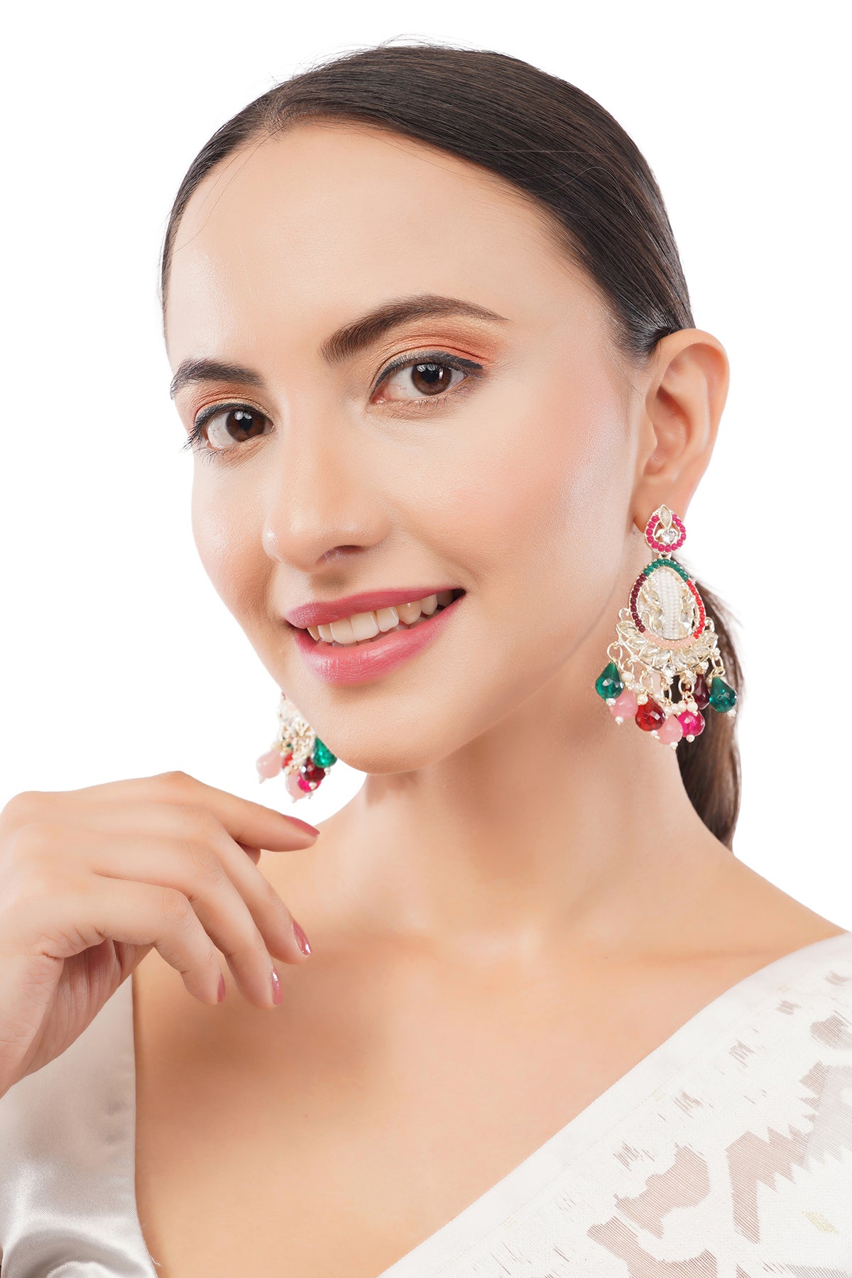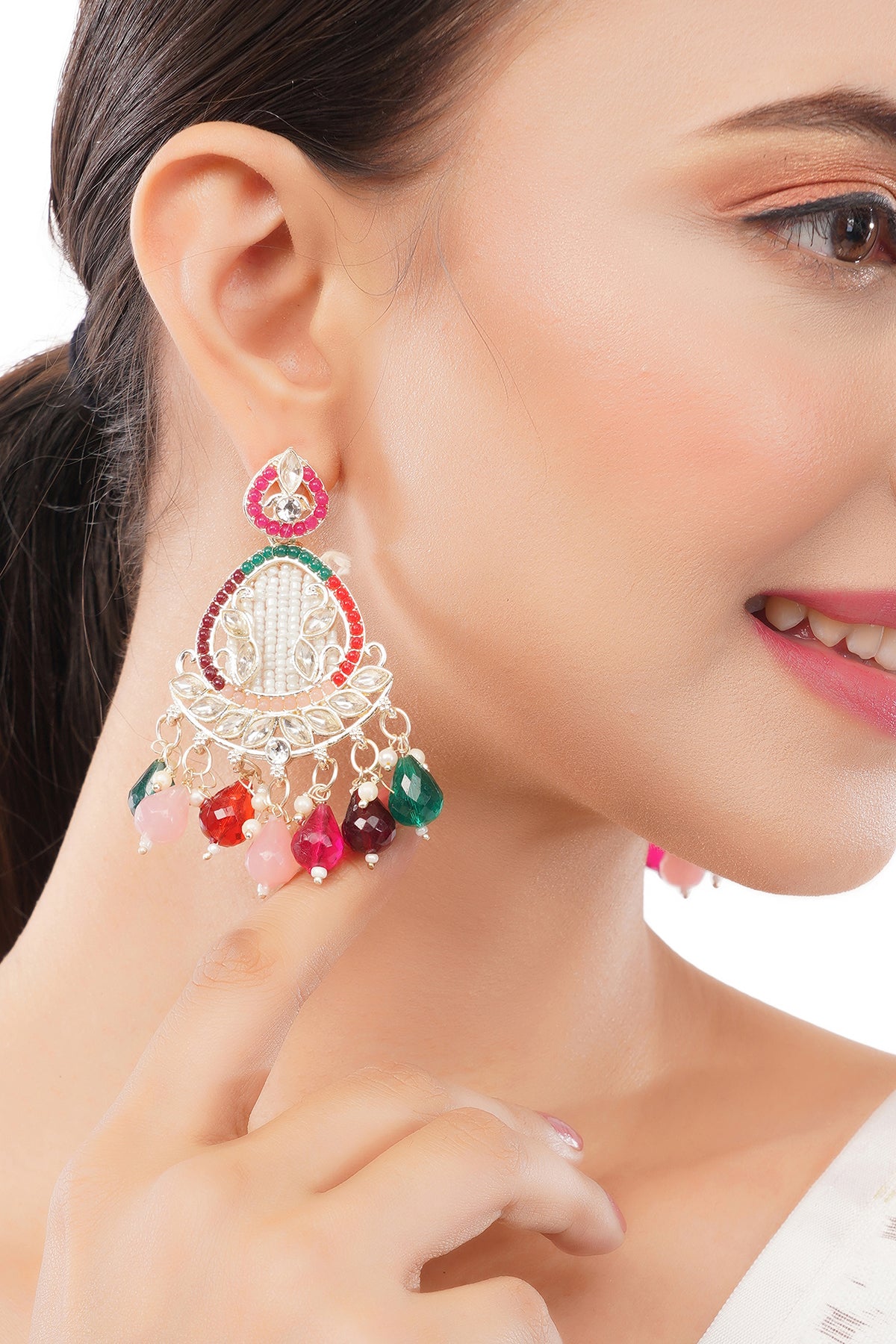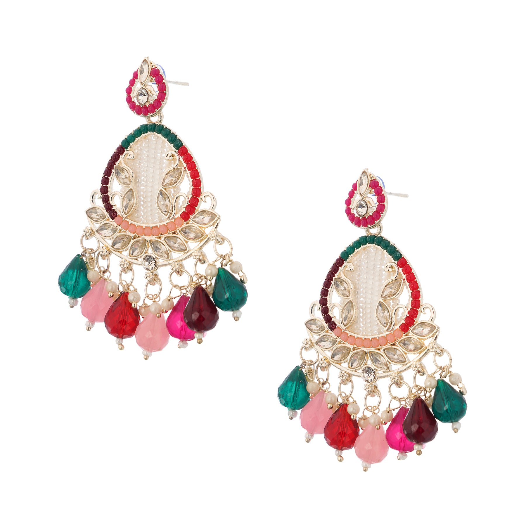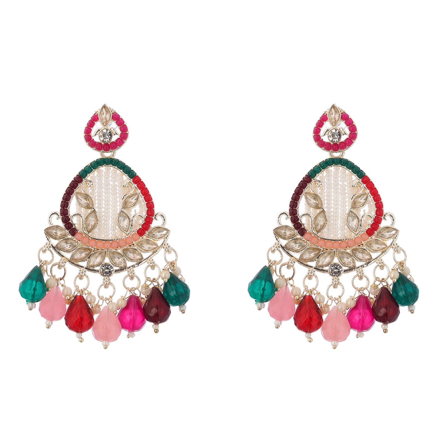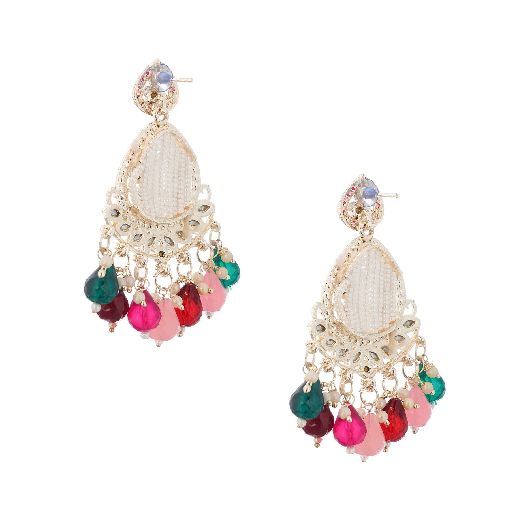Clustertrend Gold Plated Multicolour Stone With Pearl Earrings For Women