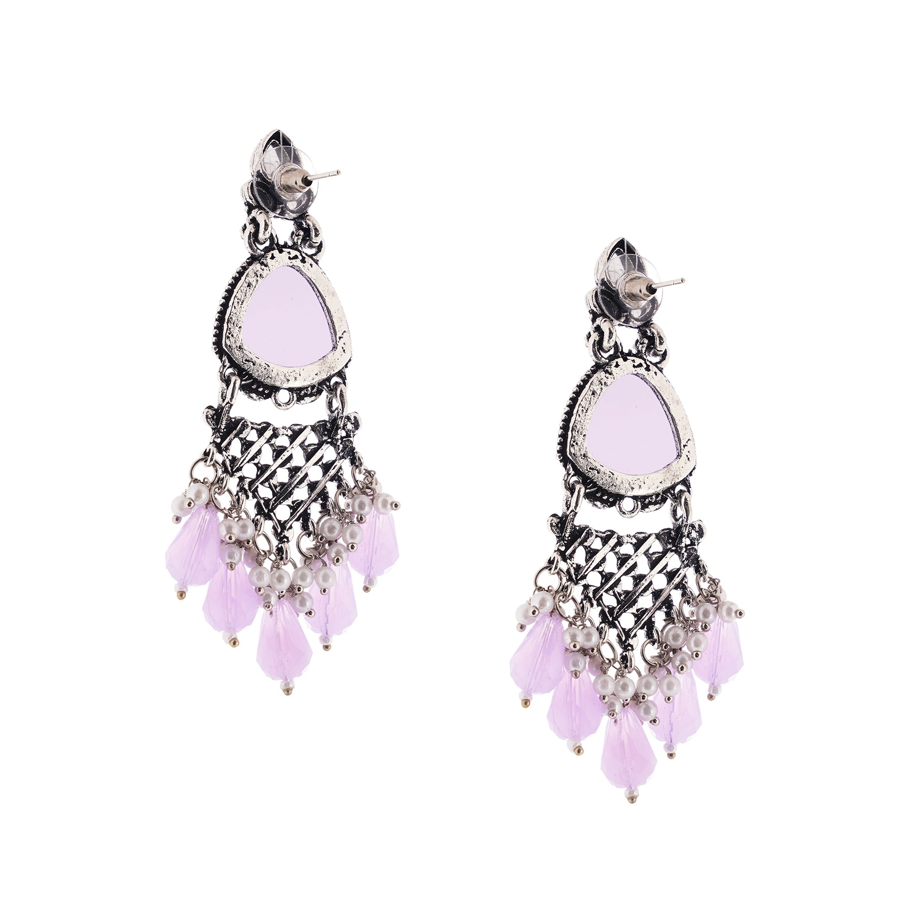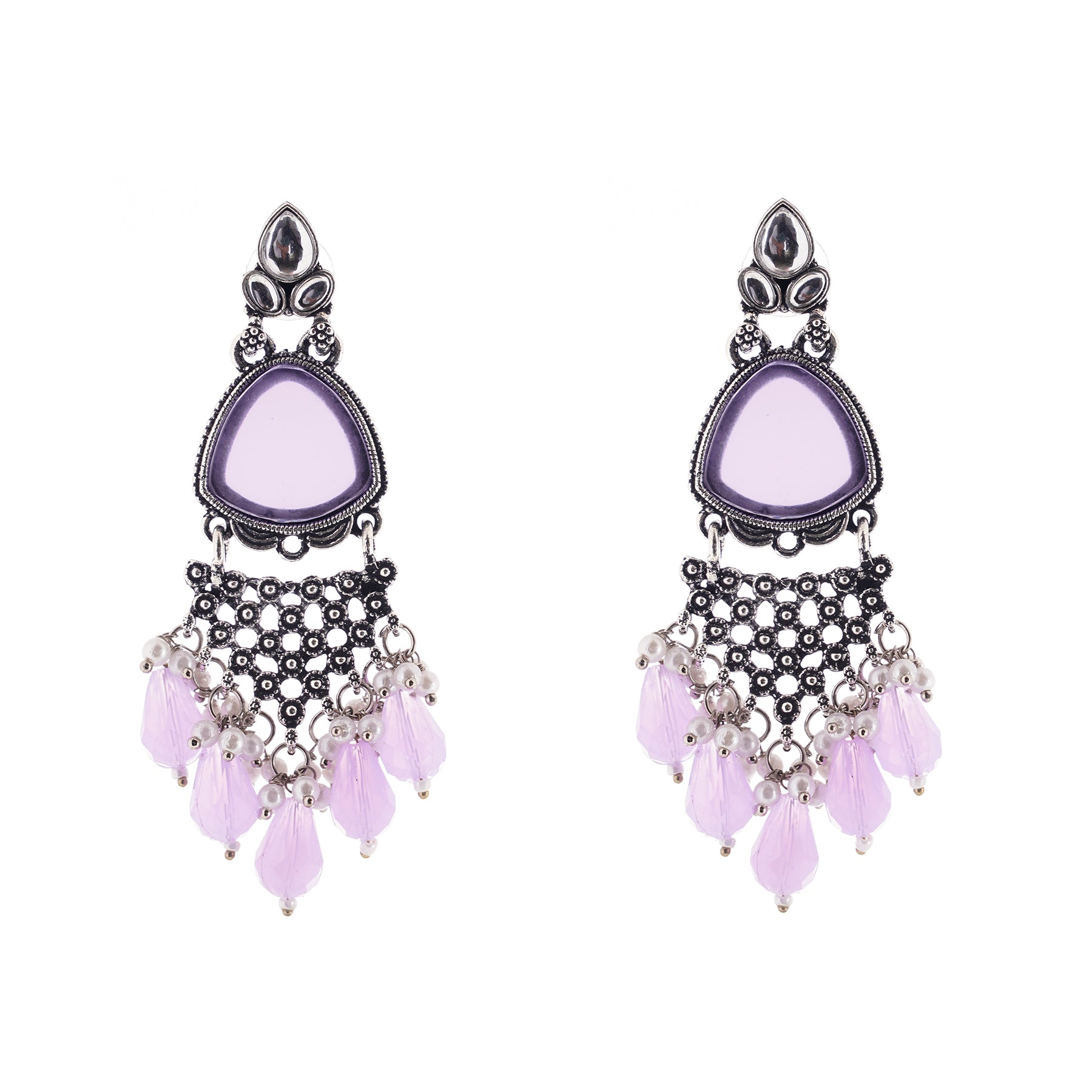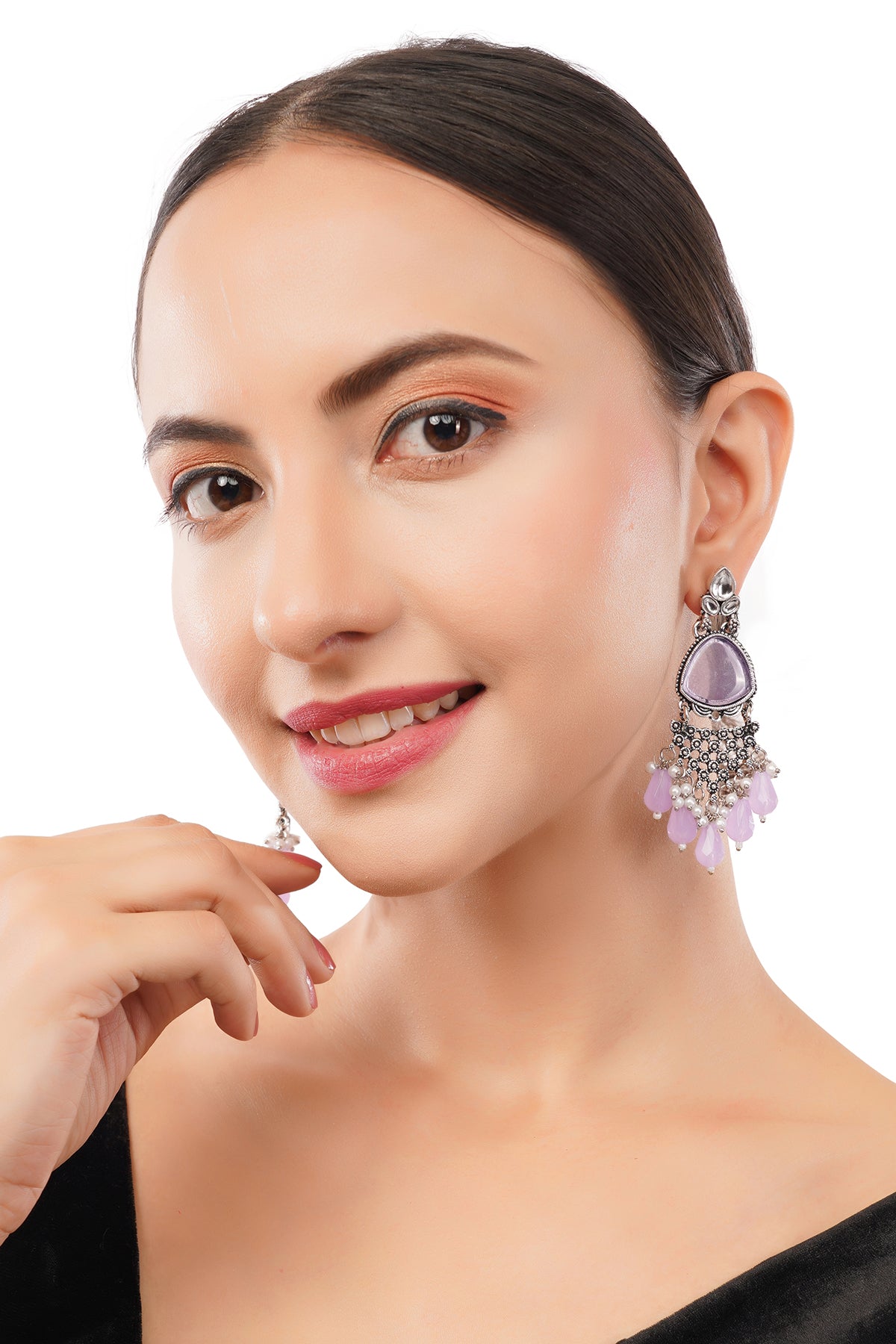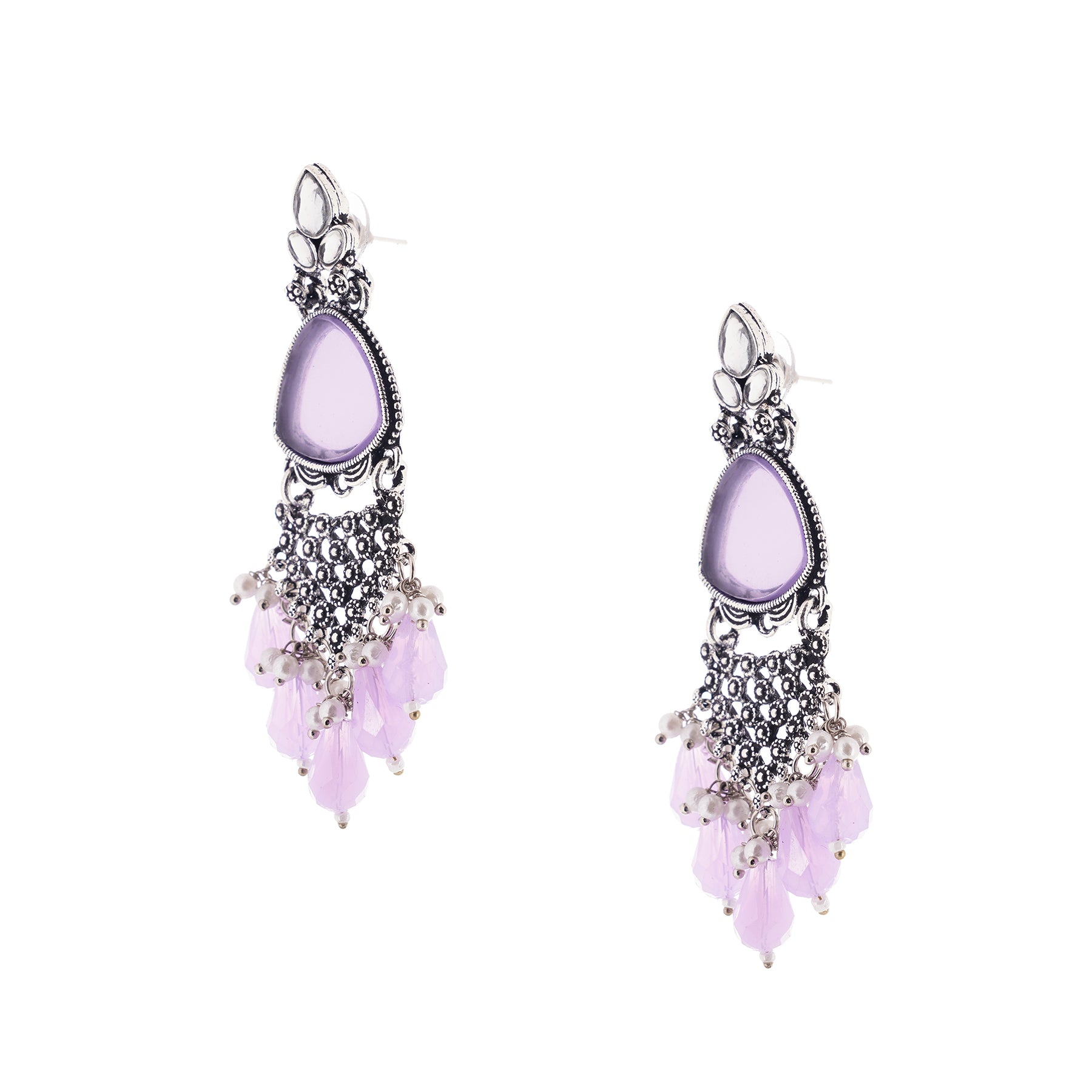 Clustertrend Oxidised Silve Light Purple Crystal Earrings For Women