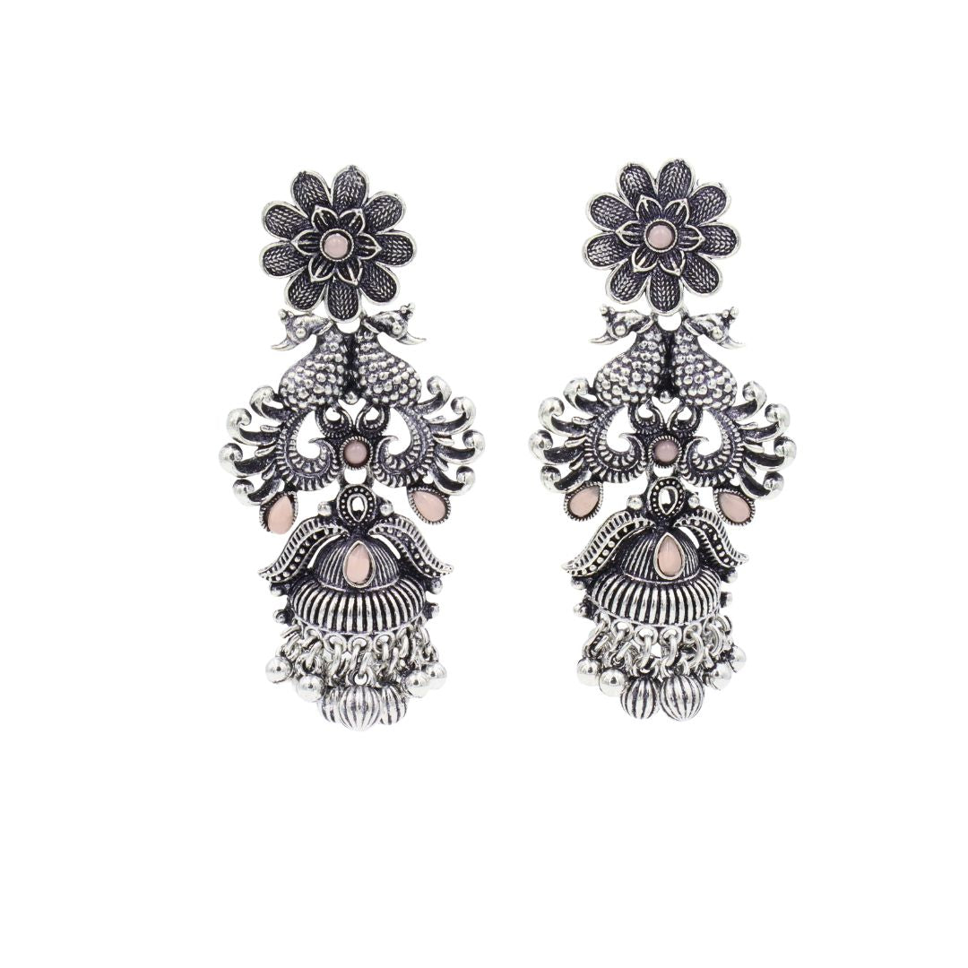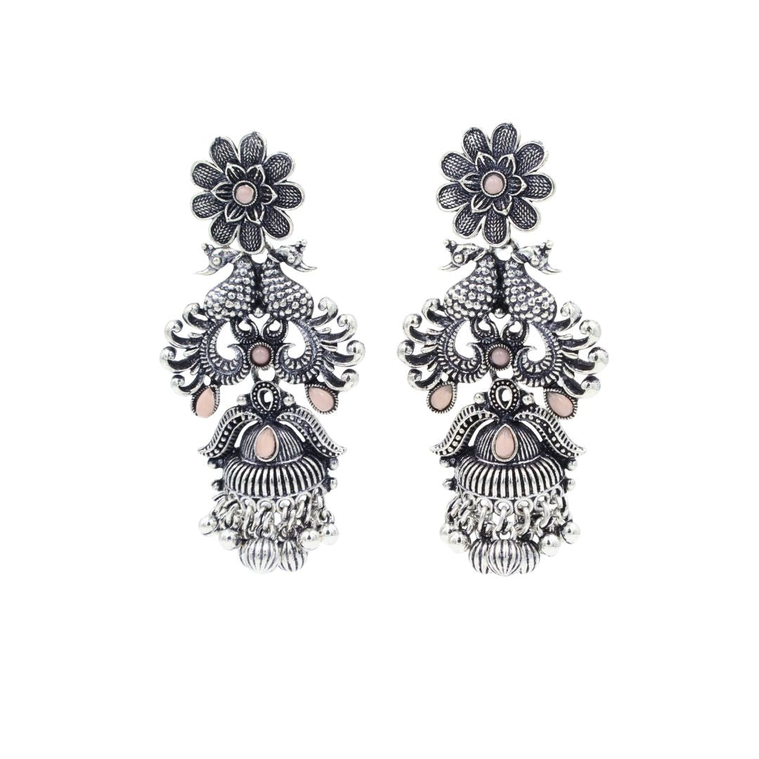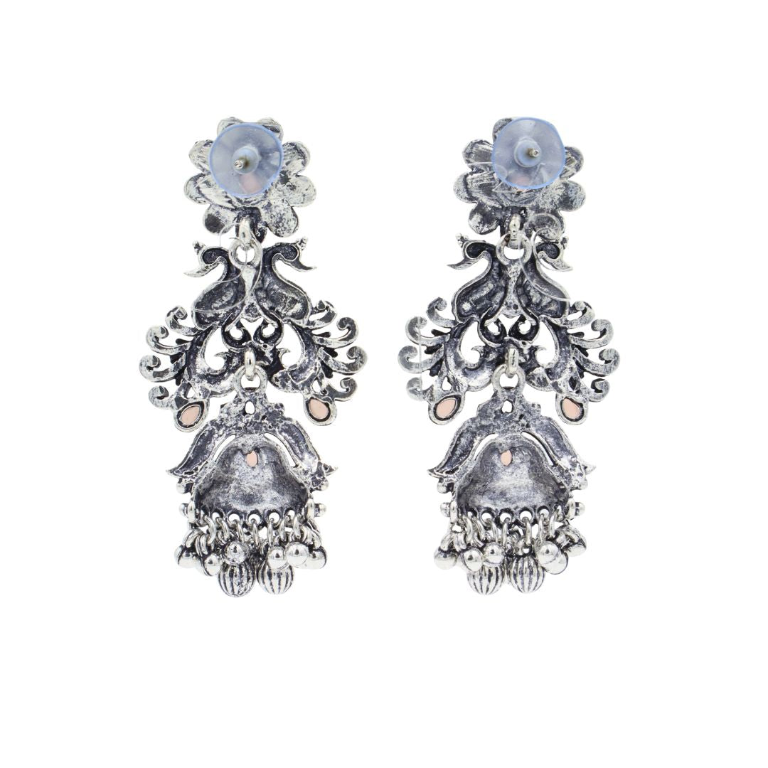 Clustertrend Oxidised Silver Floral Pearl Earrings For Women