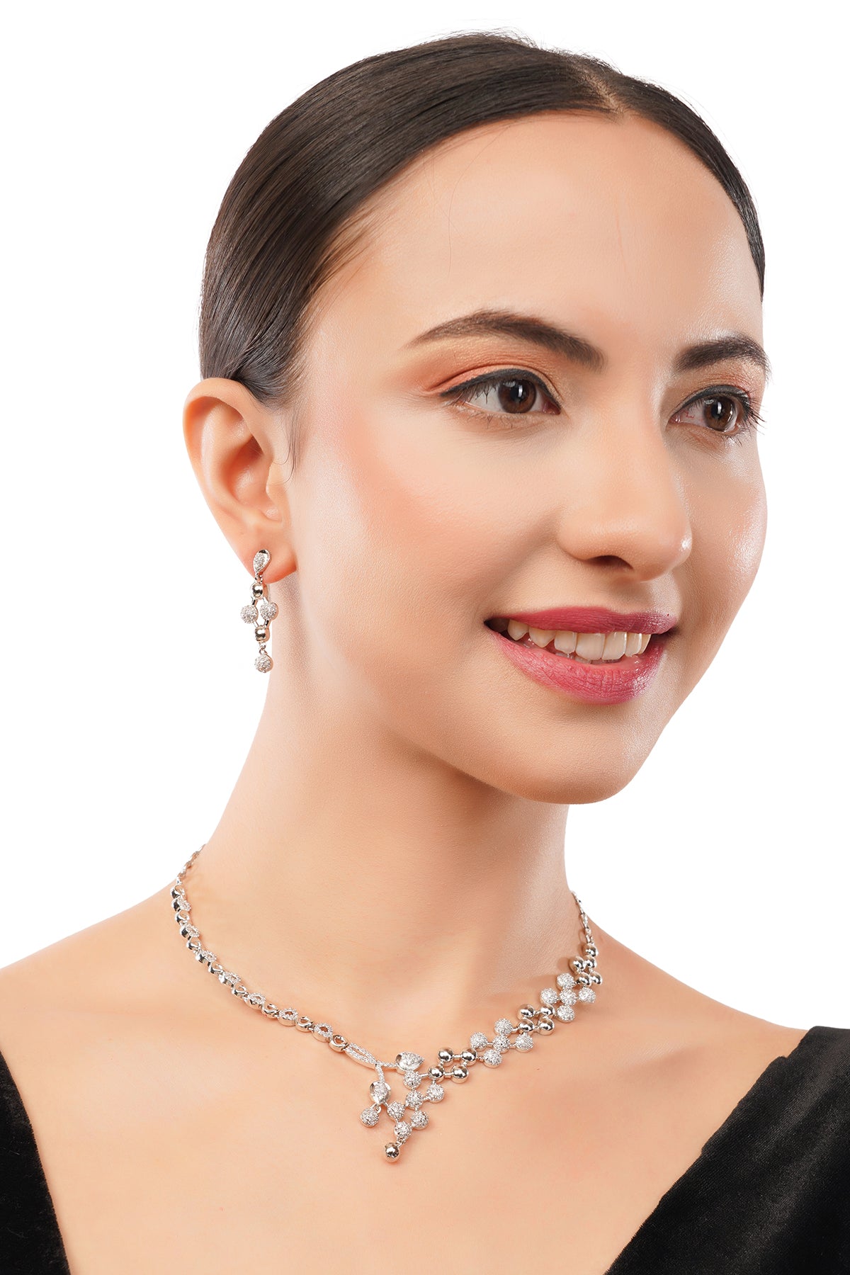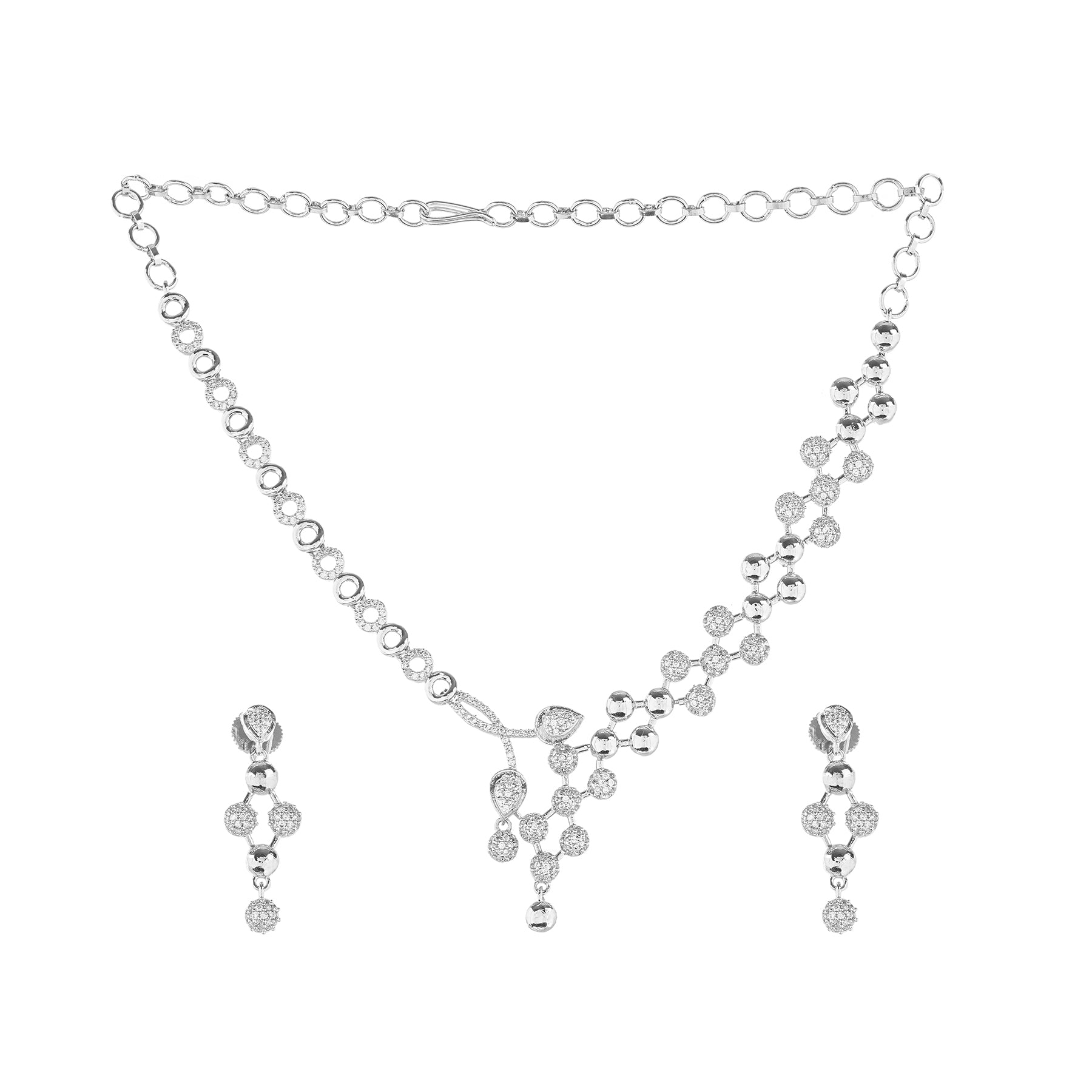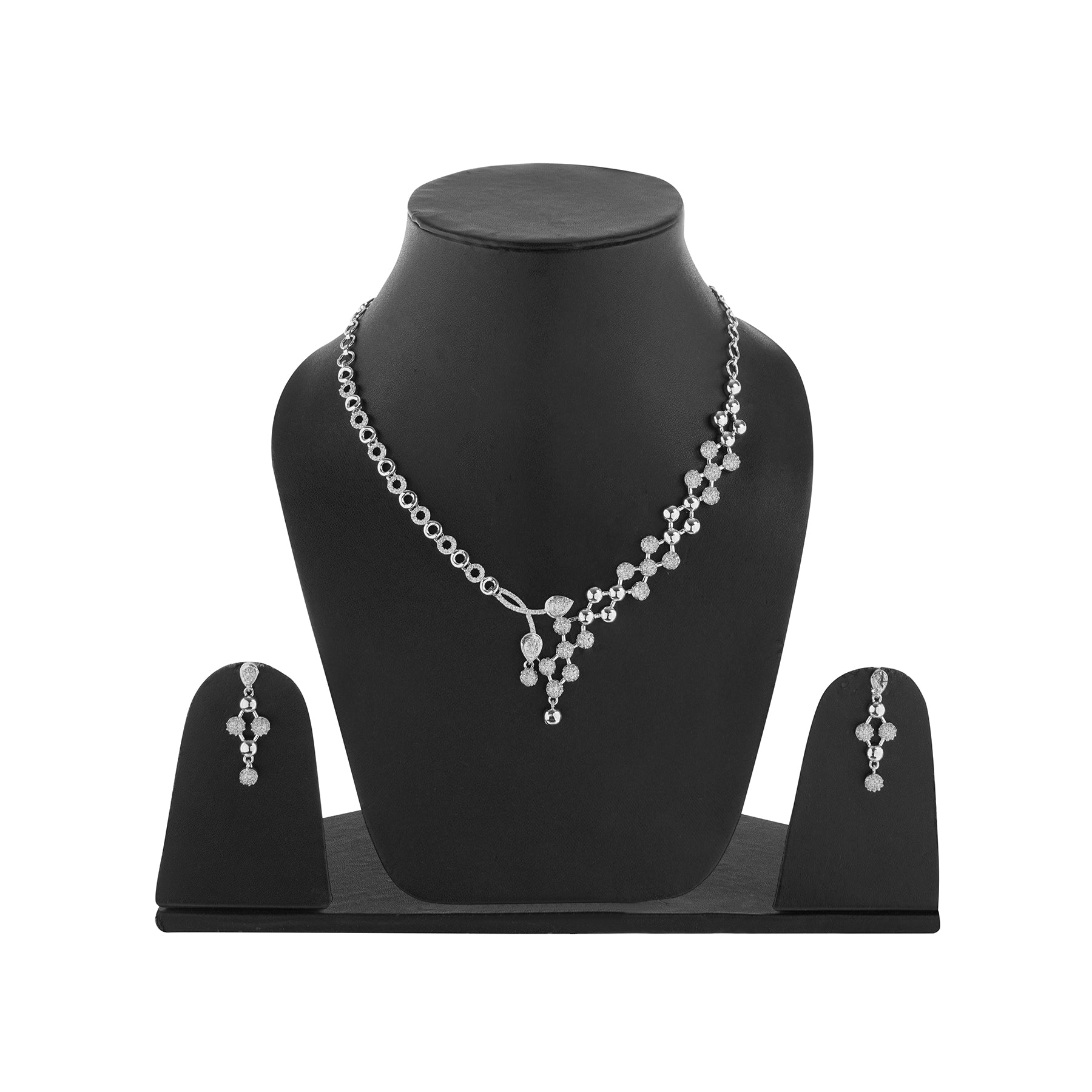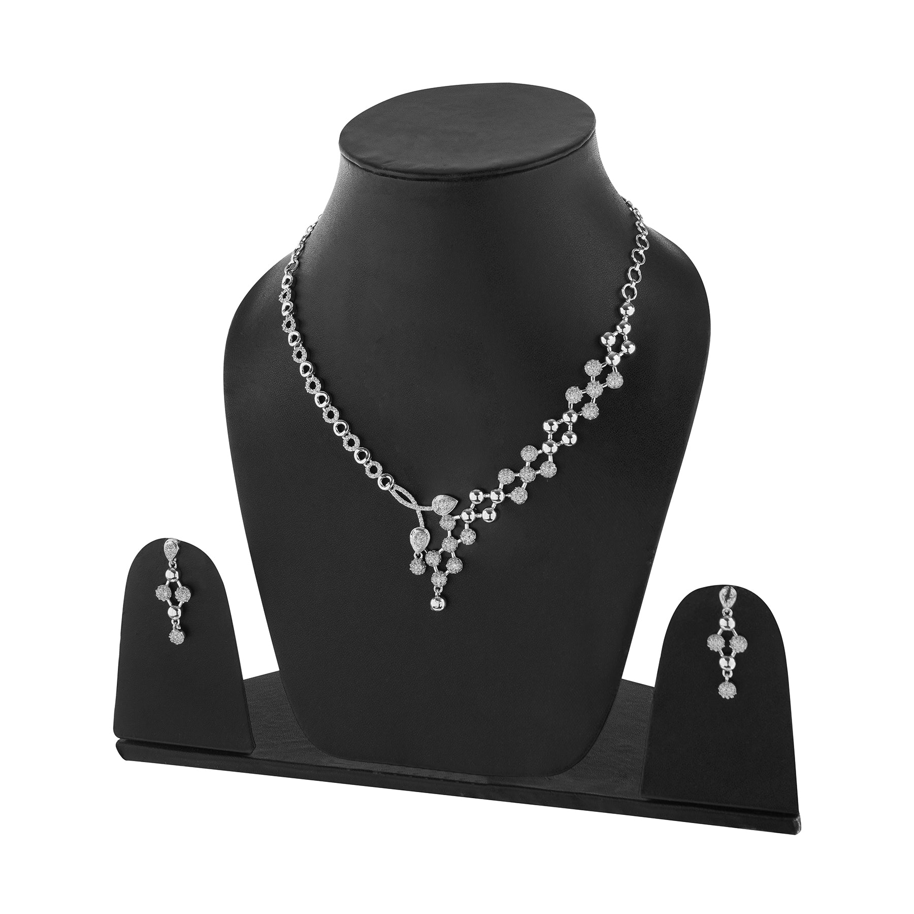 Clustertrend Silver Cubic Zirconia Dimaond Chain Necklace With Earrings