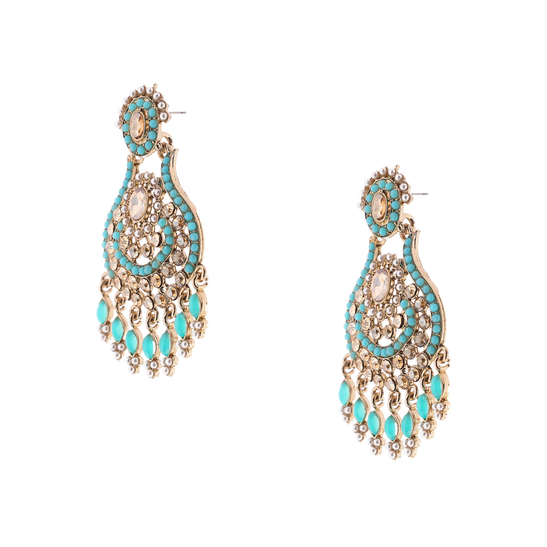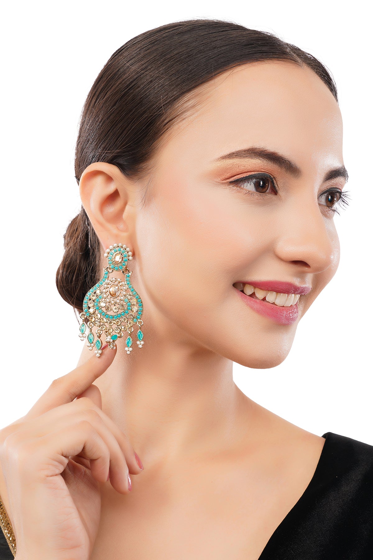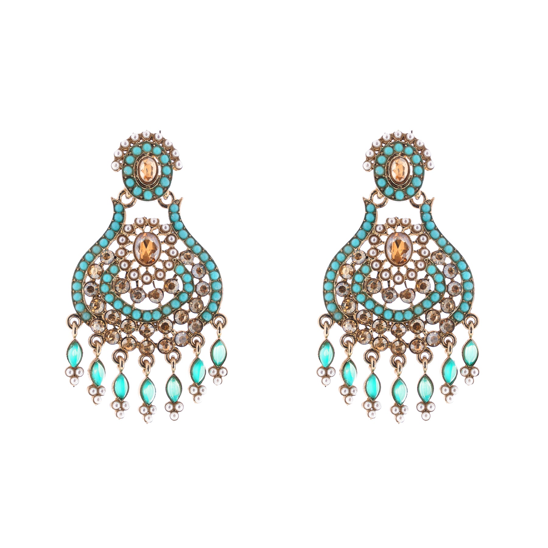 Elegant Gold turquoise Blue Stone Pearl Earrings For Wedding