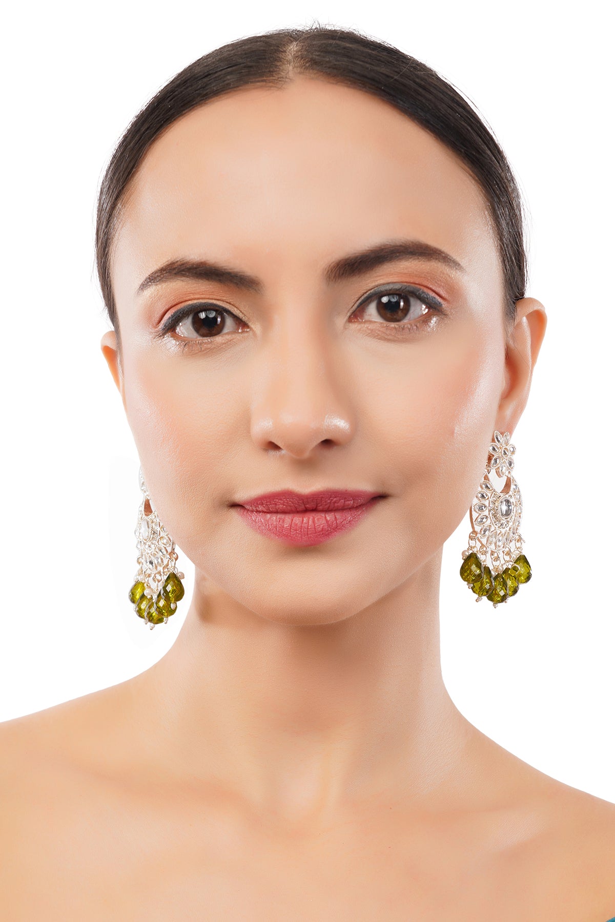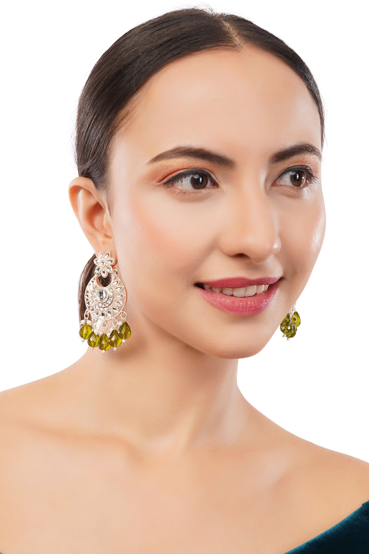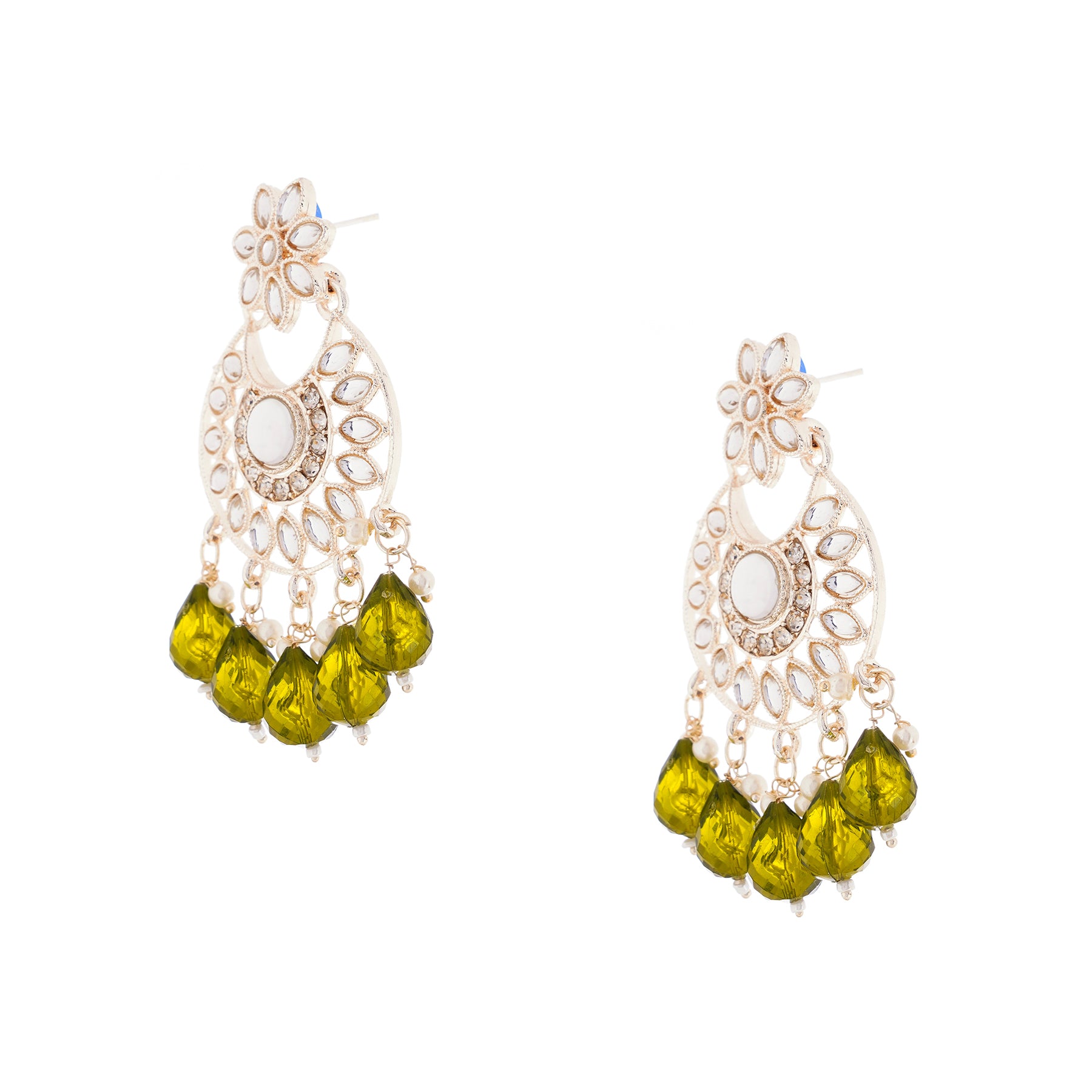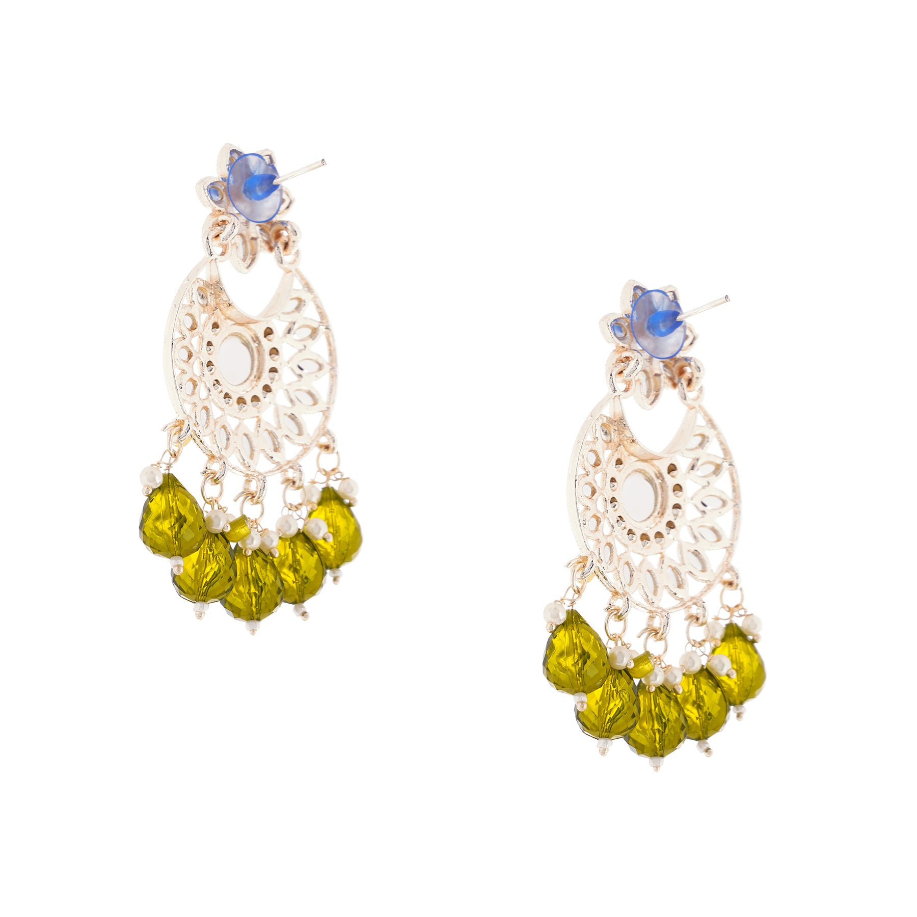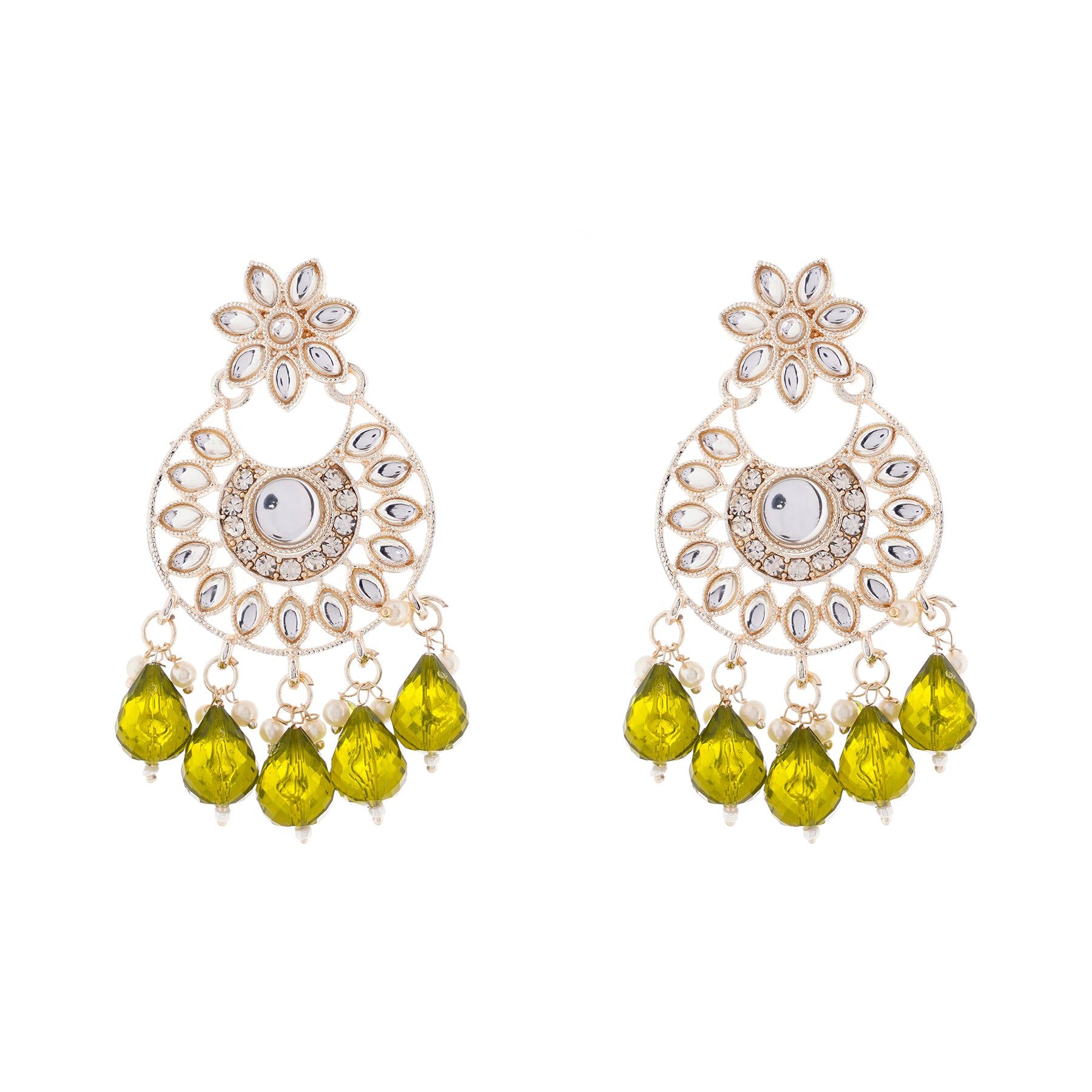 Ethnic Mustard Green Pearl Stone Earrings For Party