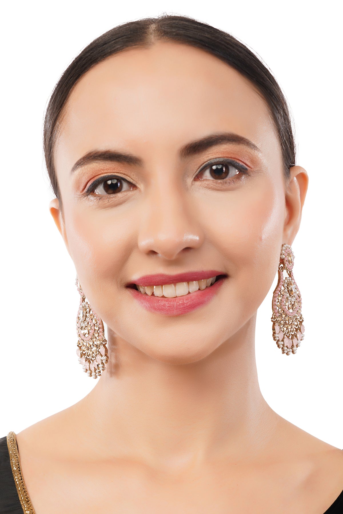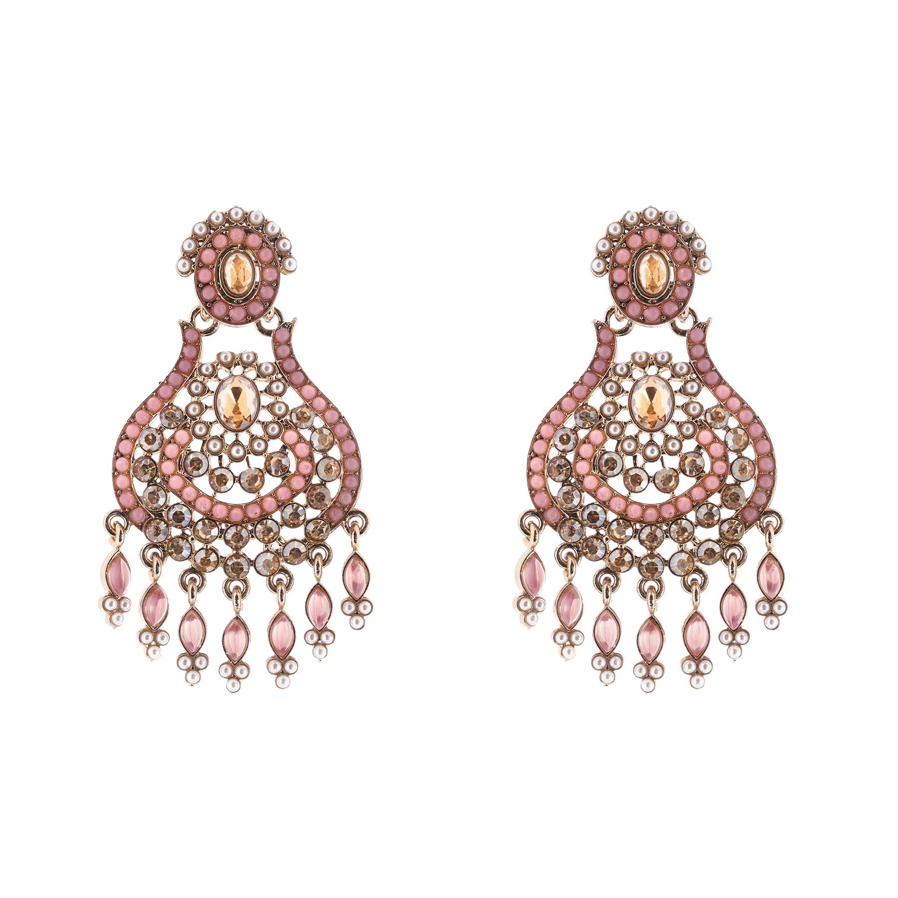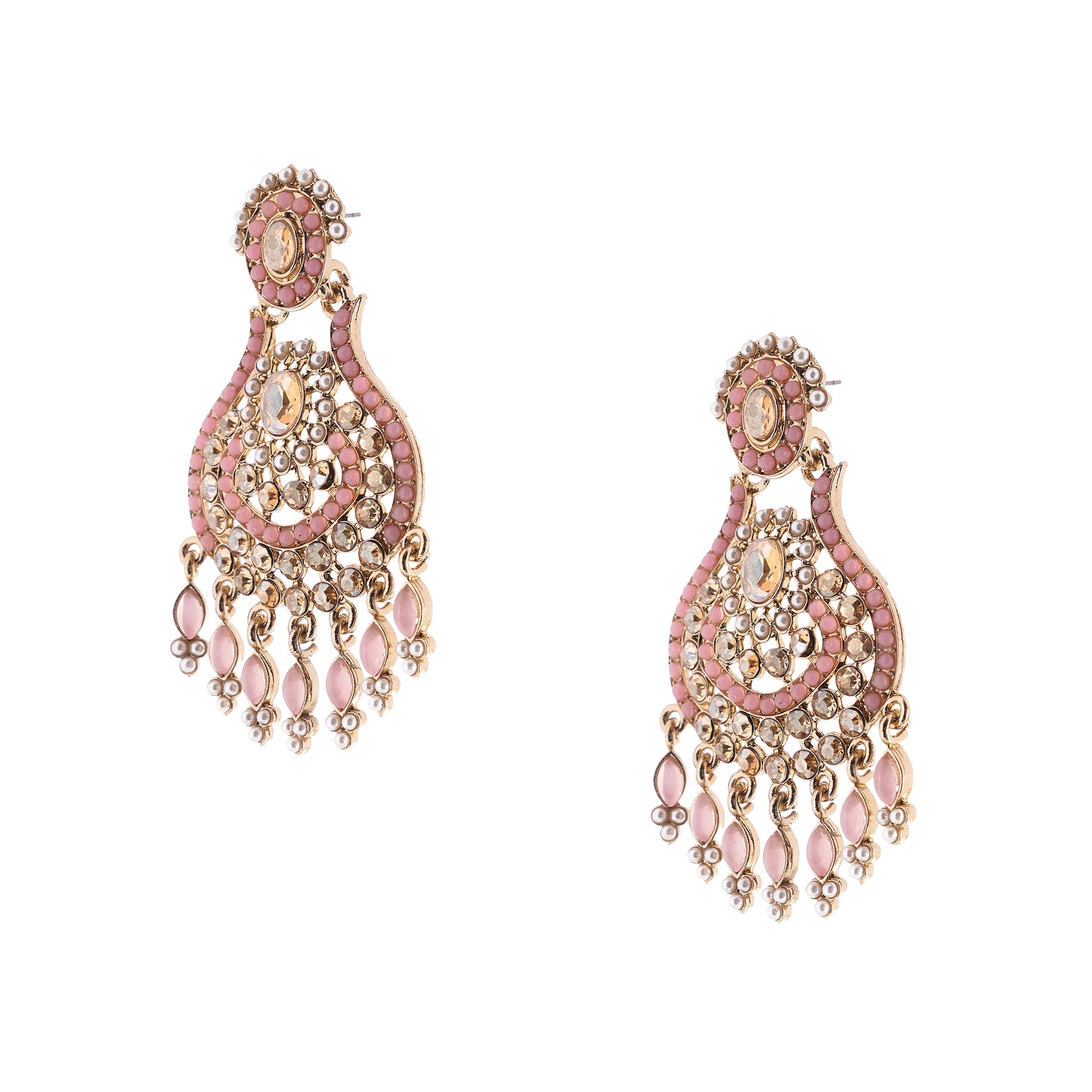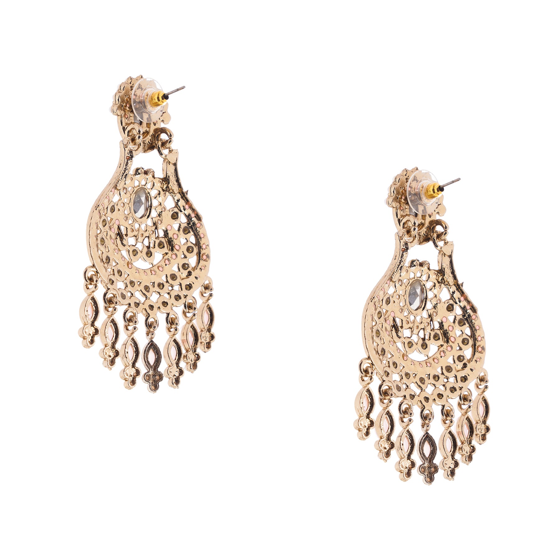 Gold Plated Light Pink Stone Chandbali Earrings For Women