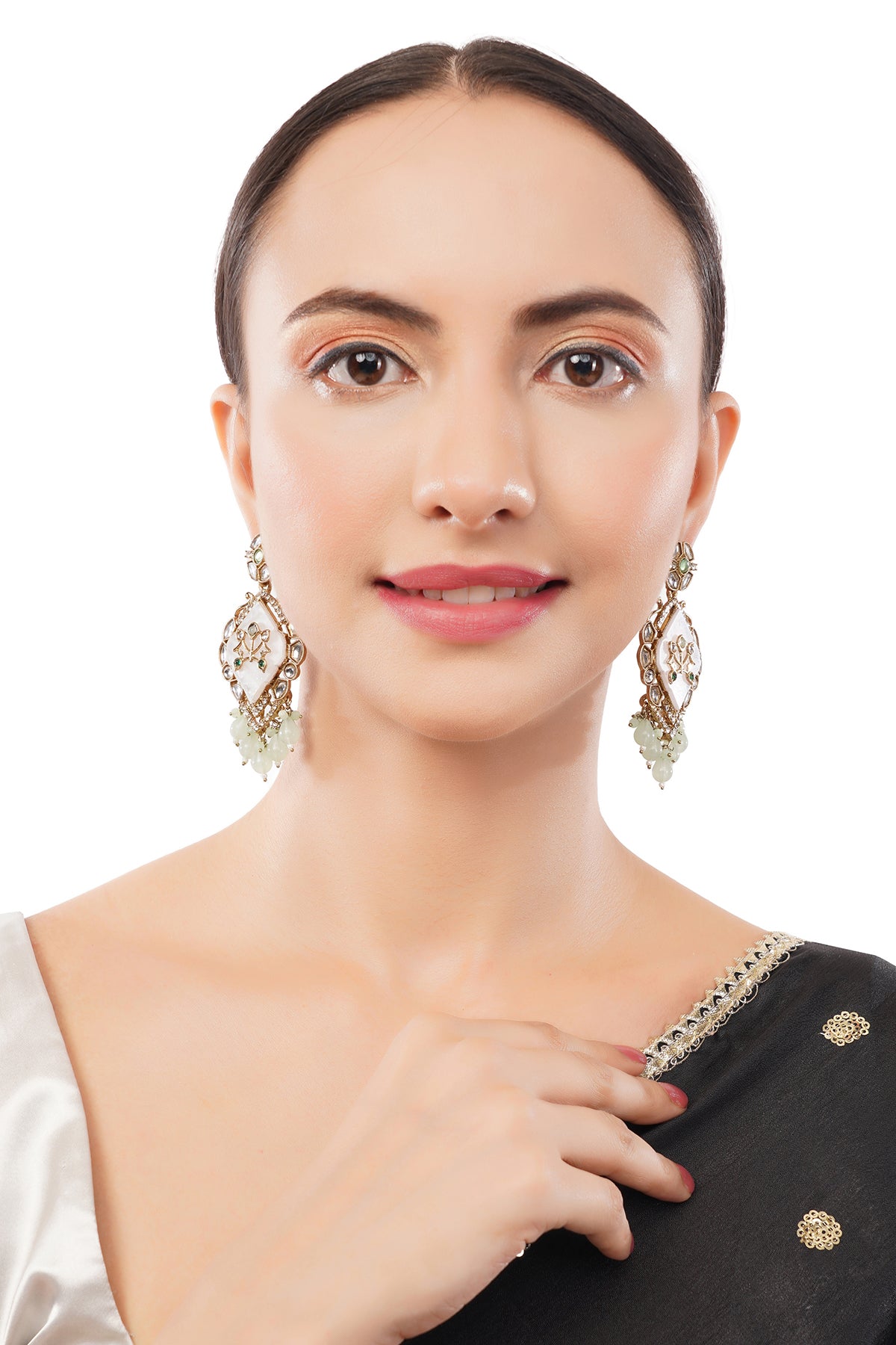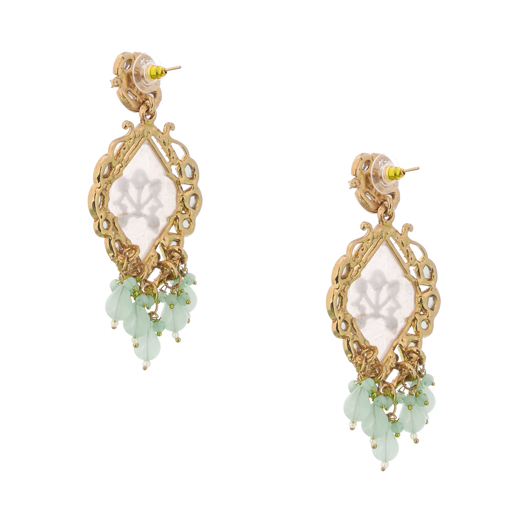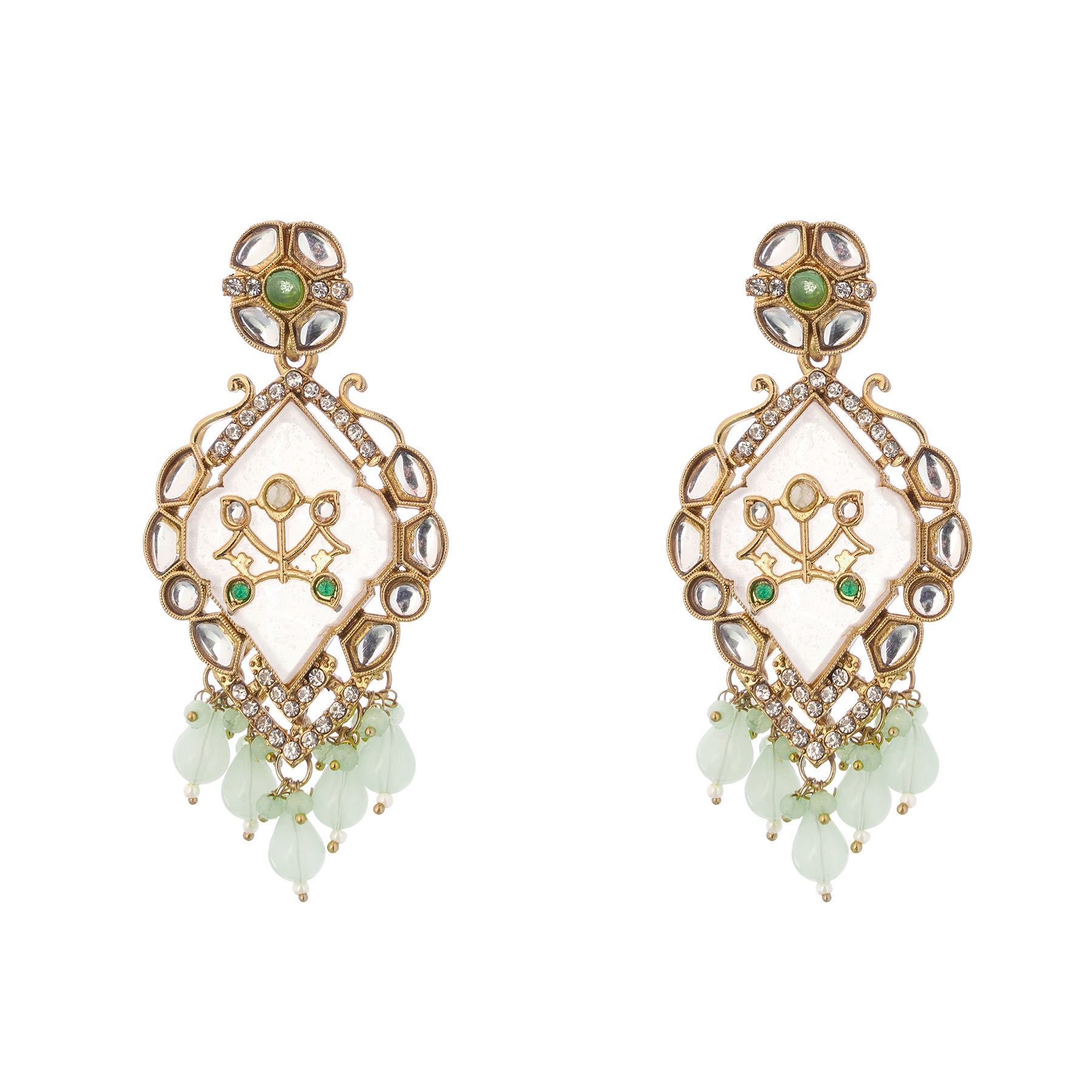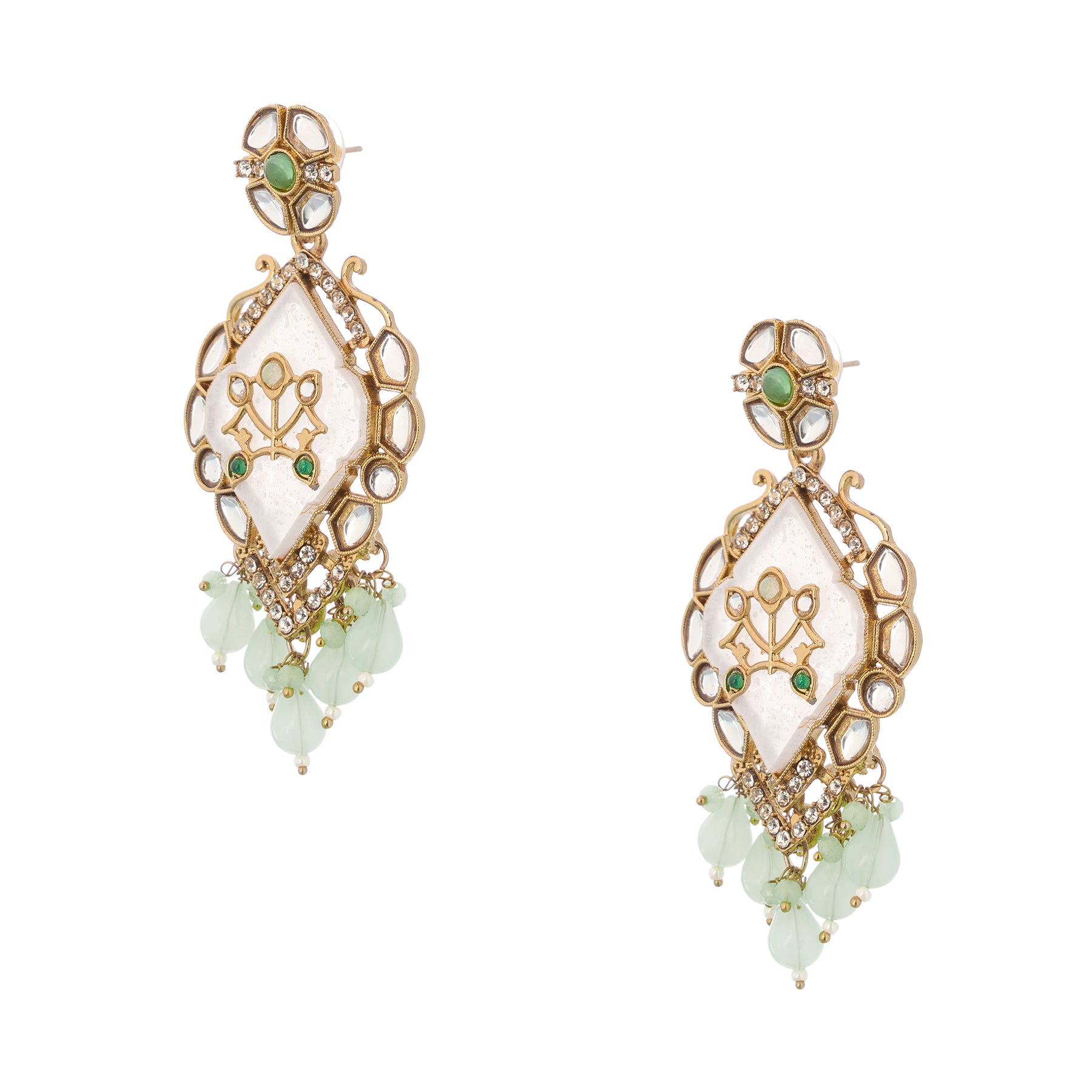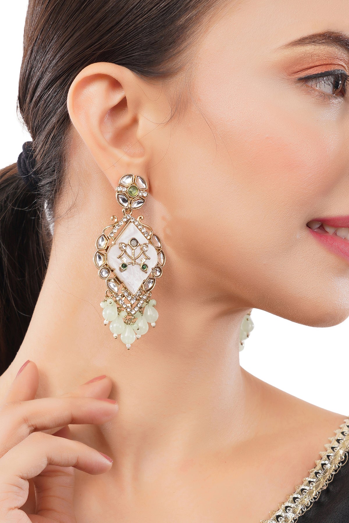 Gold Plated MOP(Mother Of Pearl) Light Geen Pearl Kundan Earrings