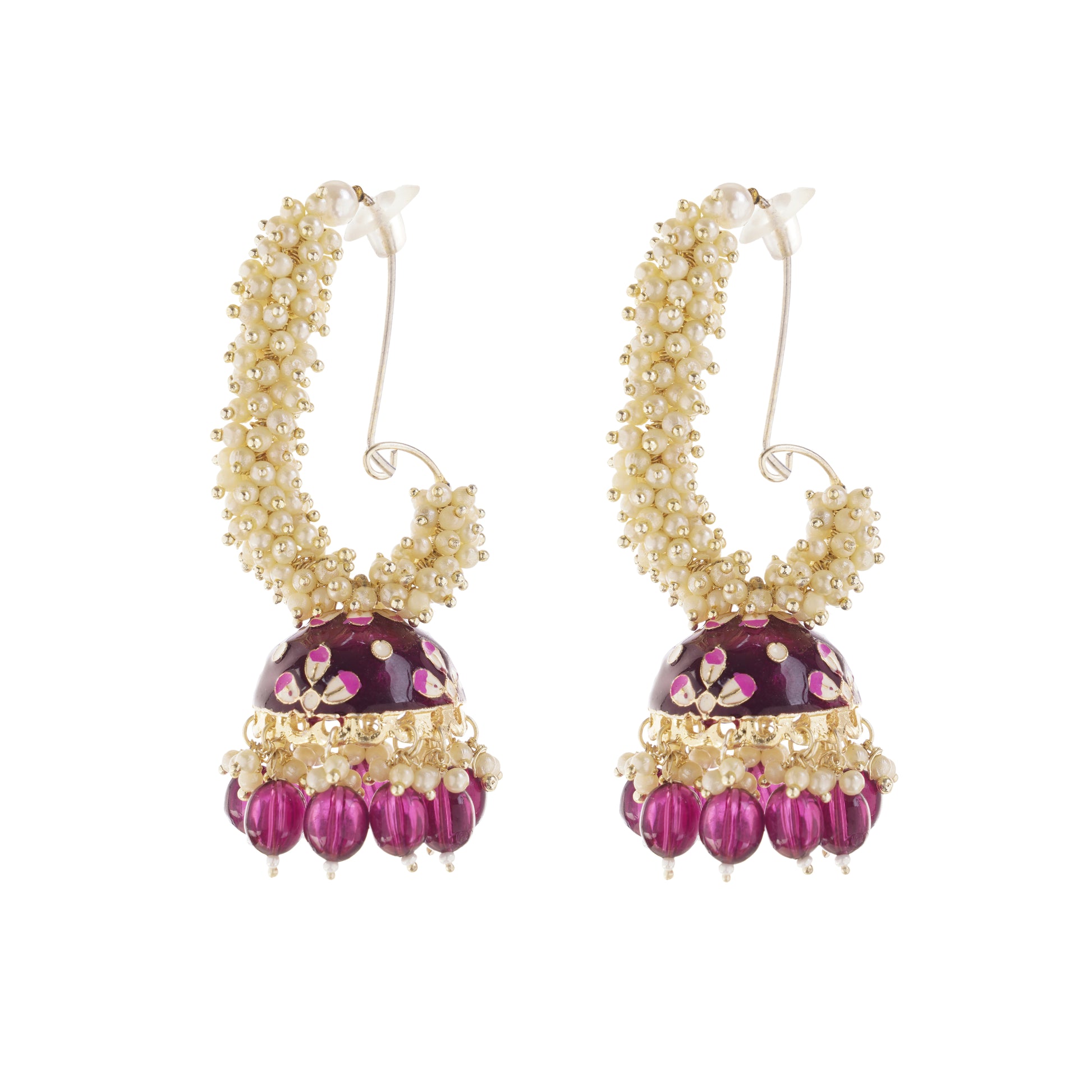 Gold Plated Purple Pearl Jhumka Earrings