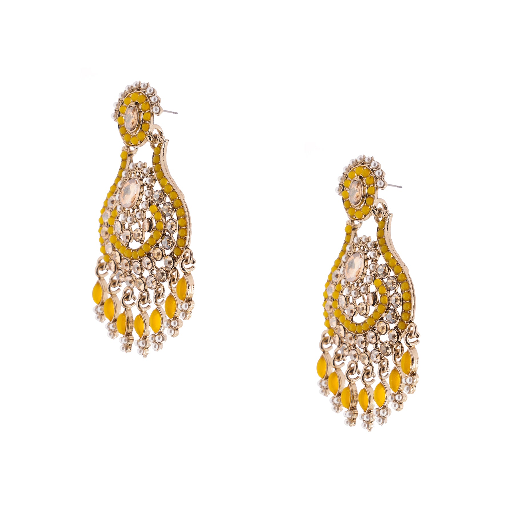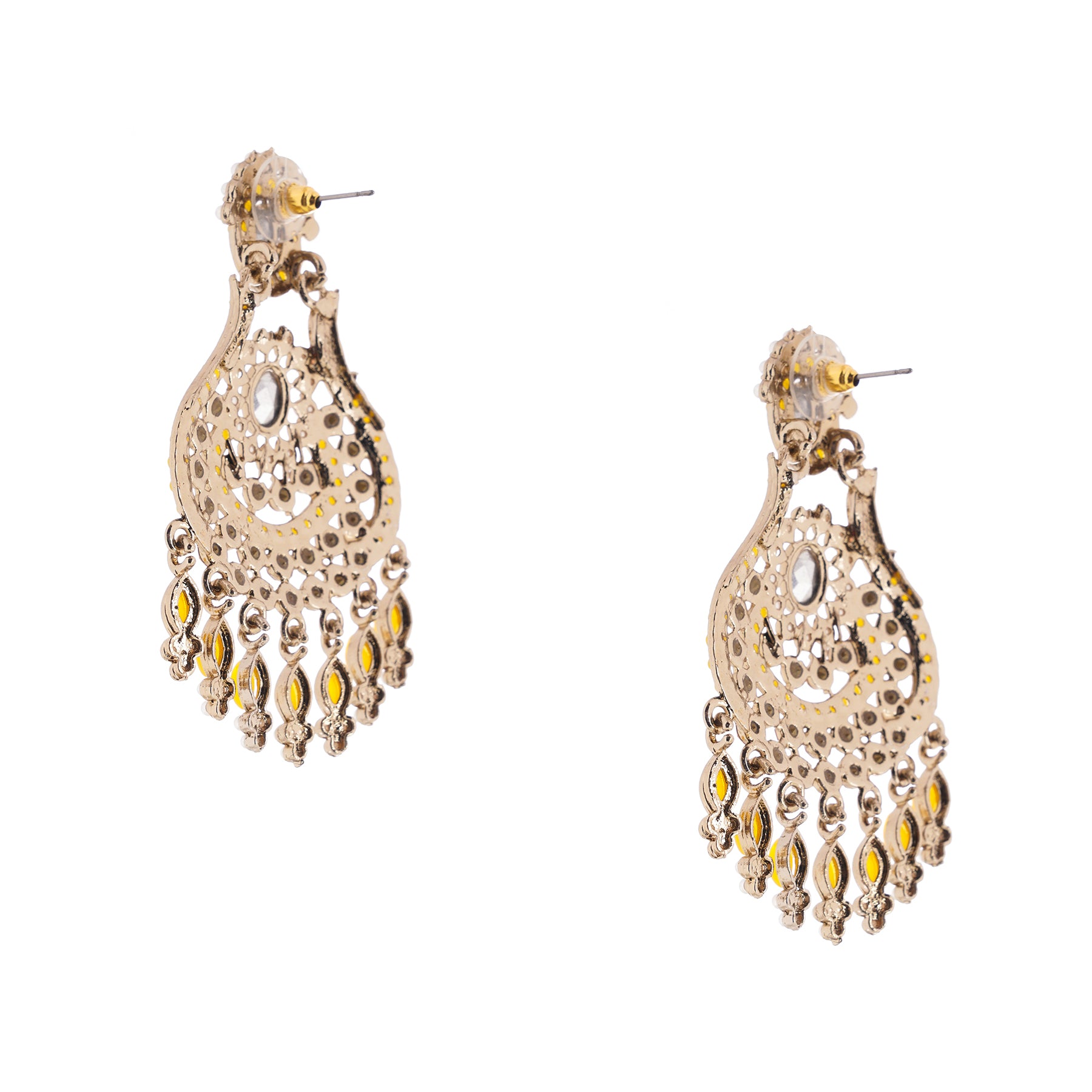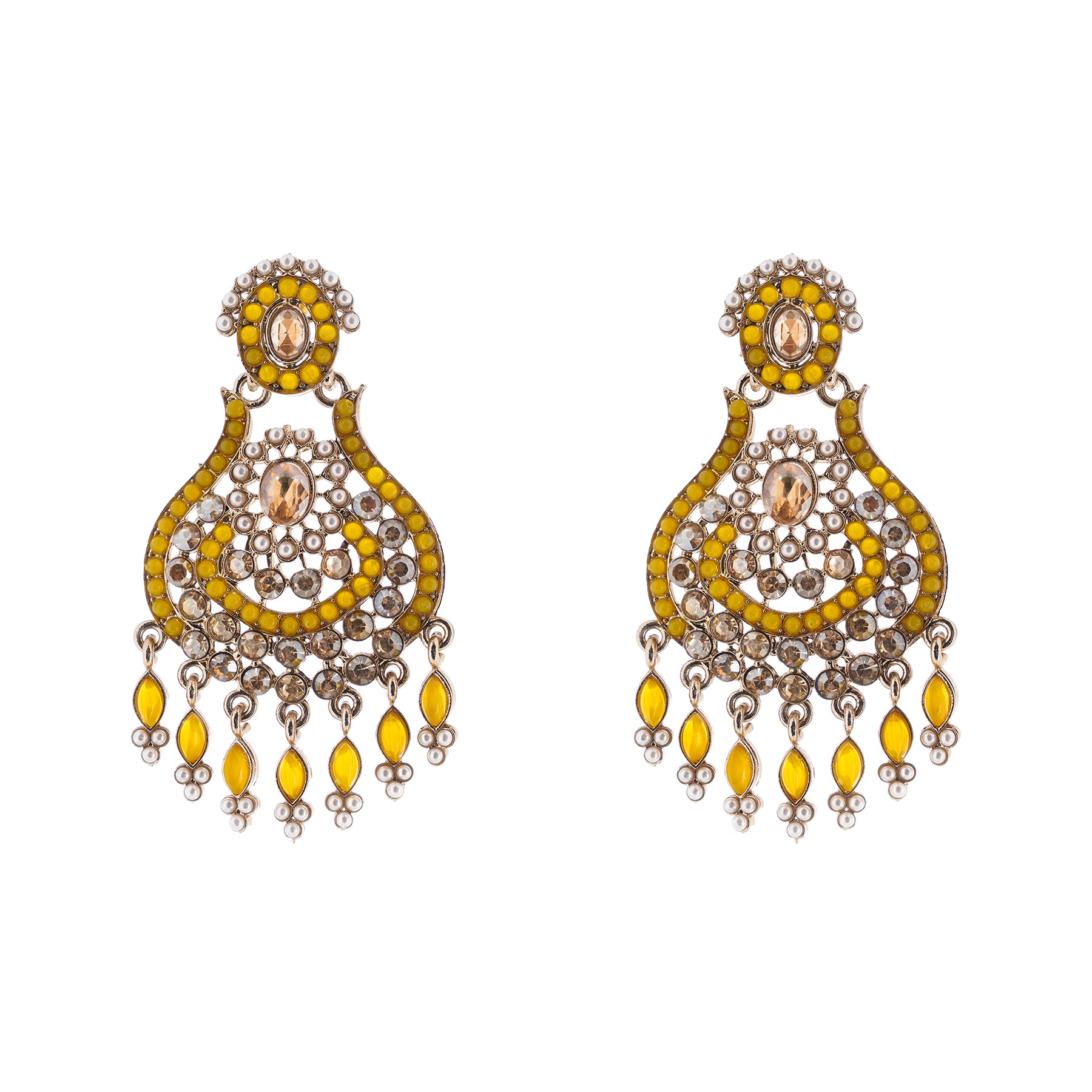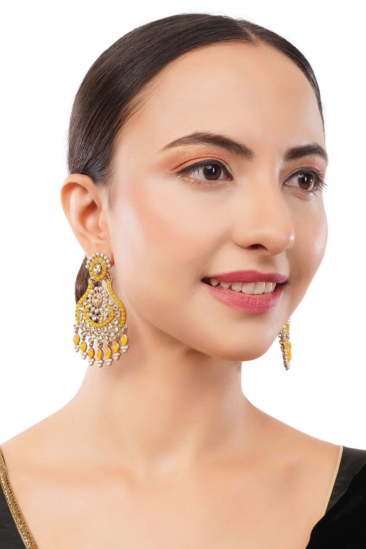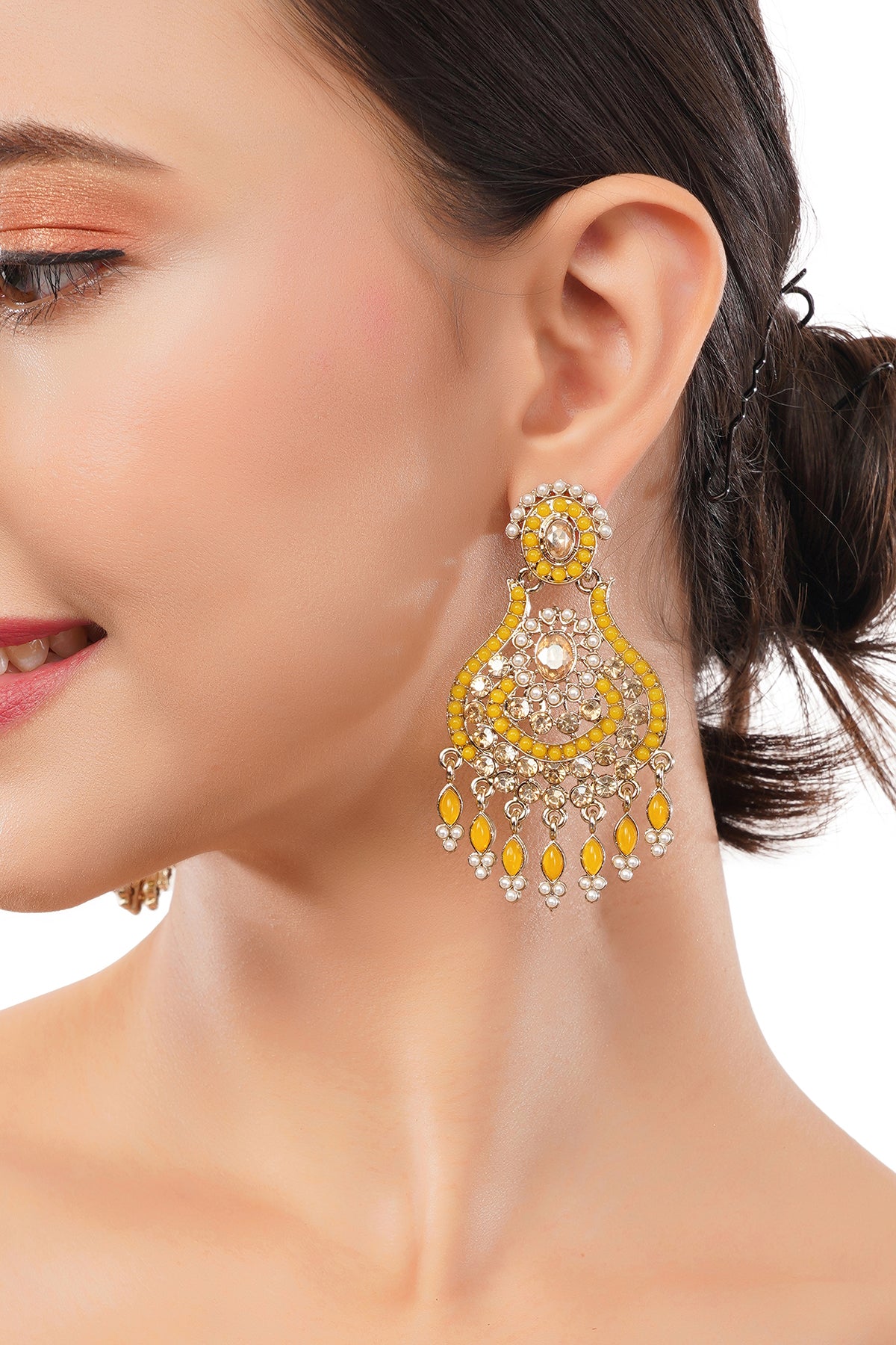 Gold Plated Yellow Stone Pearl Earrings For Haldi Ceremony