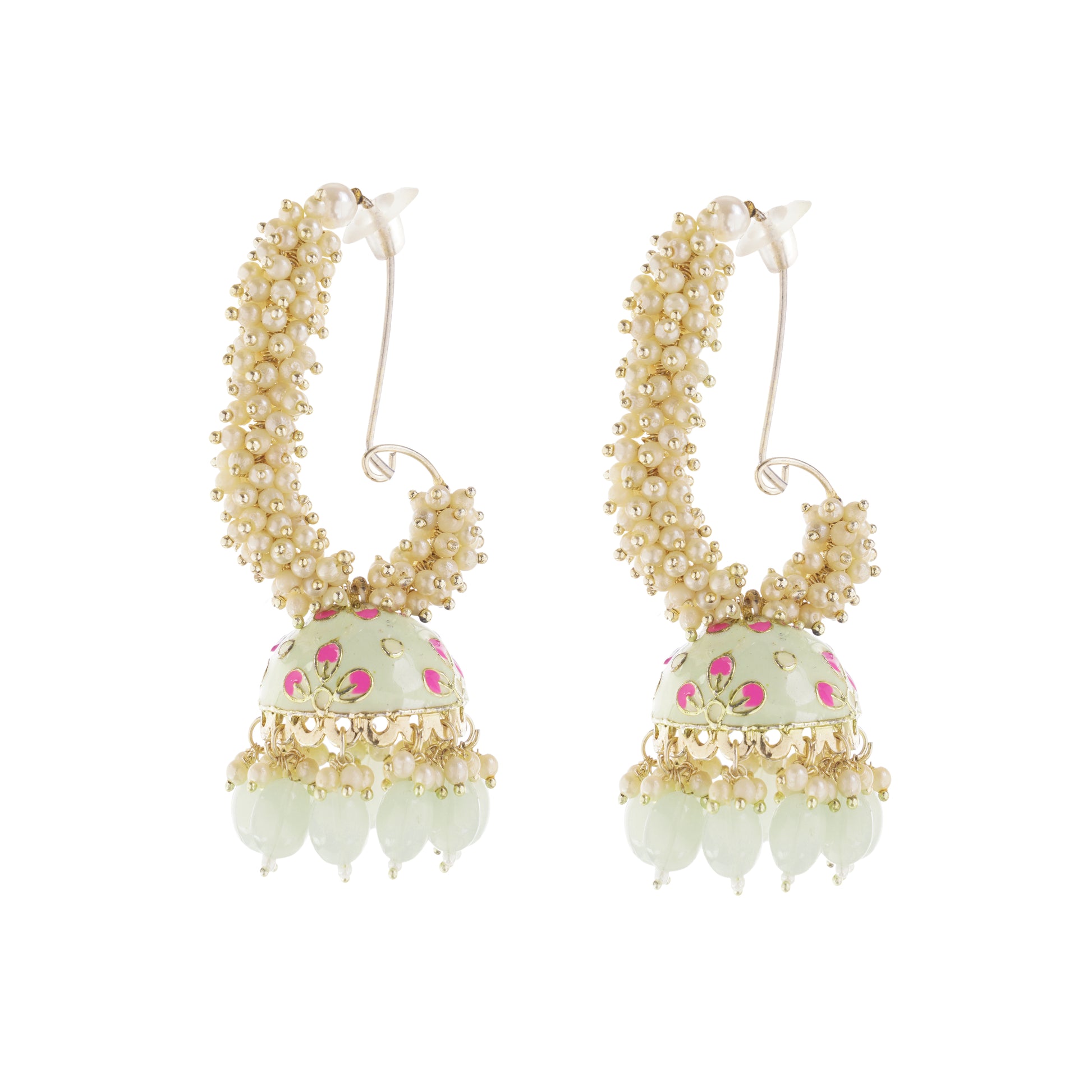 The light green hue is super versatile, and the classic jhumka design brings a traditional charm with a modern twist. Plus, the pearl detail adds a touch of sophistication.
