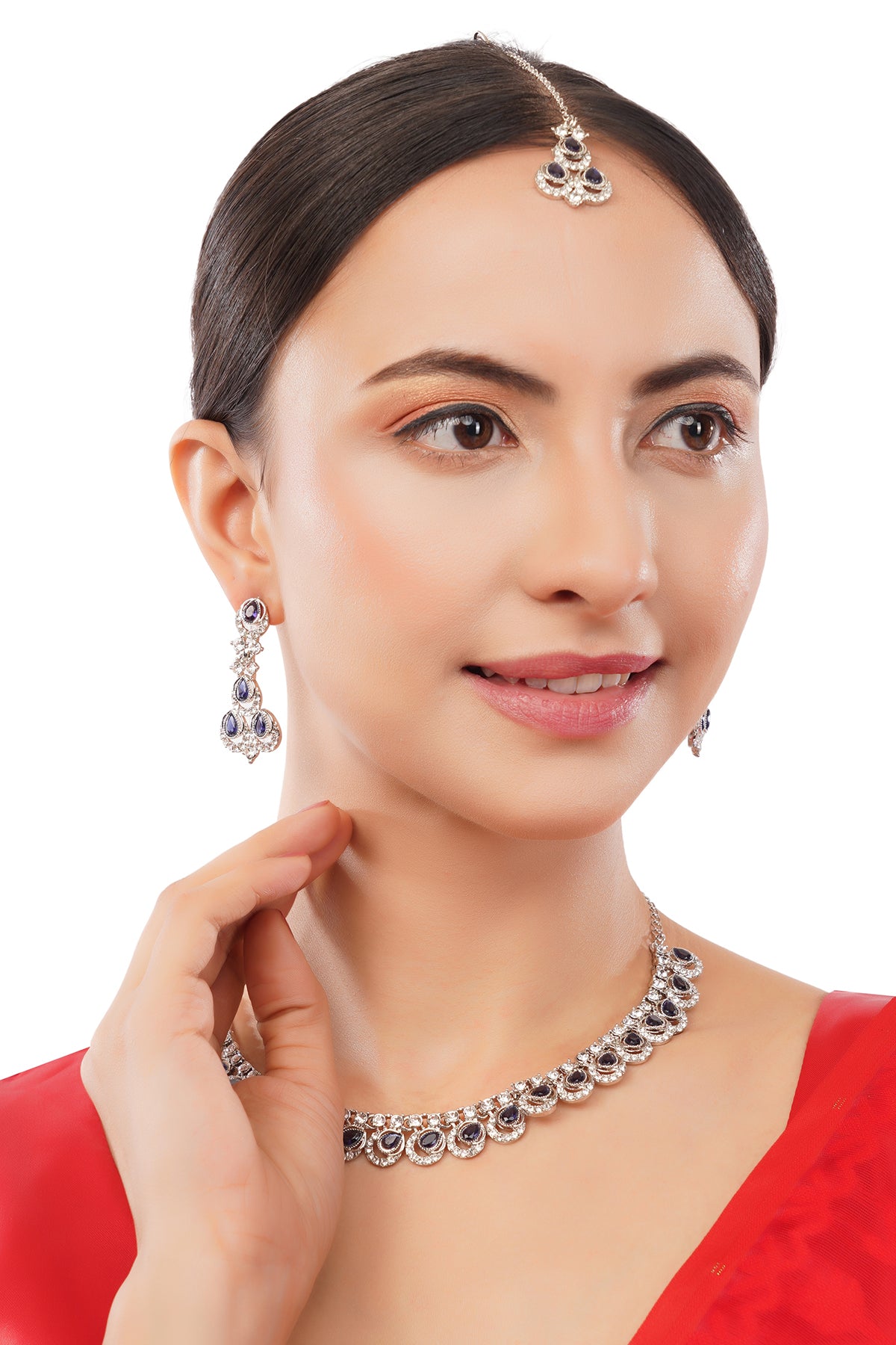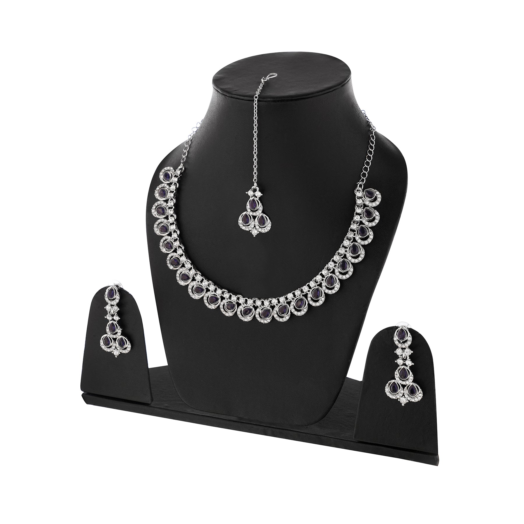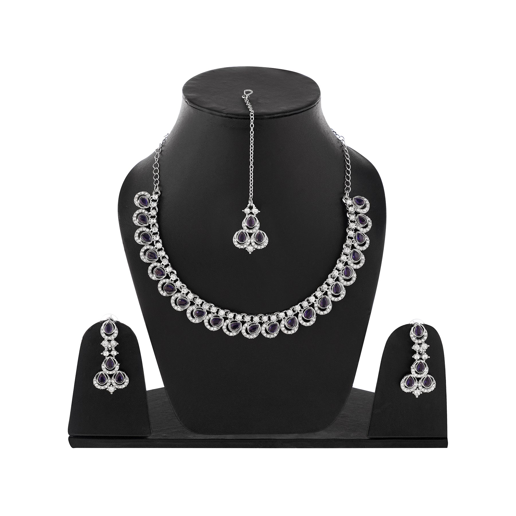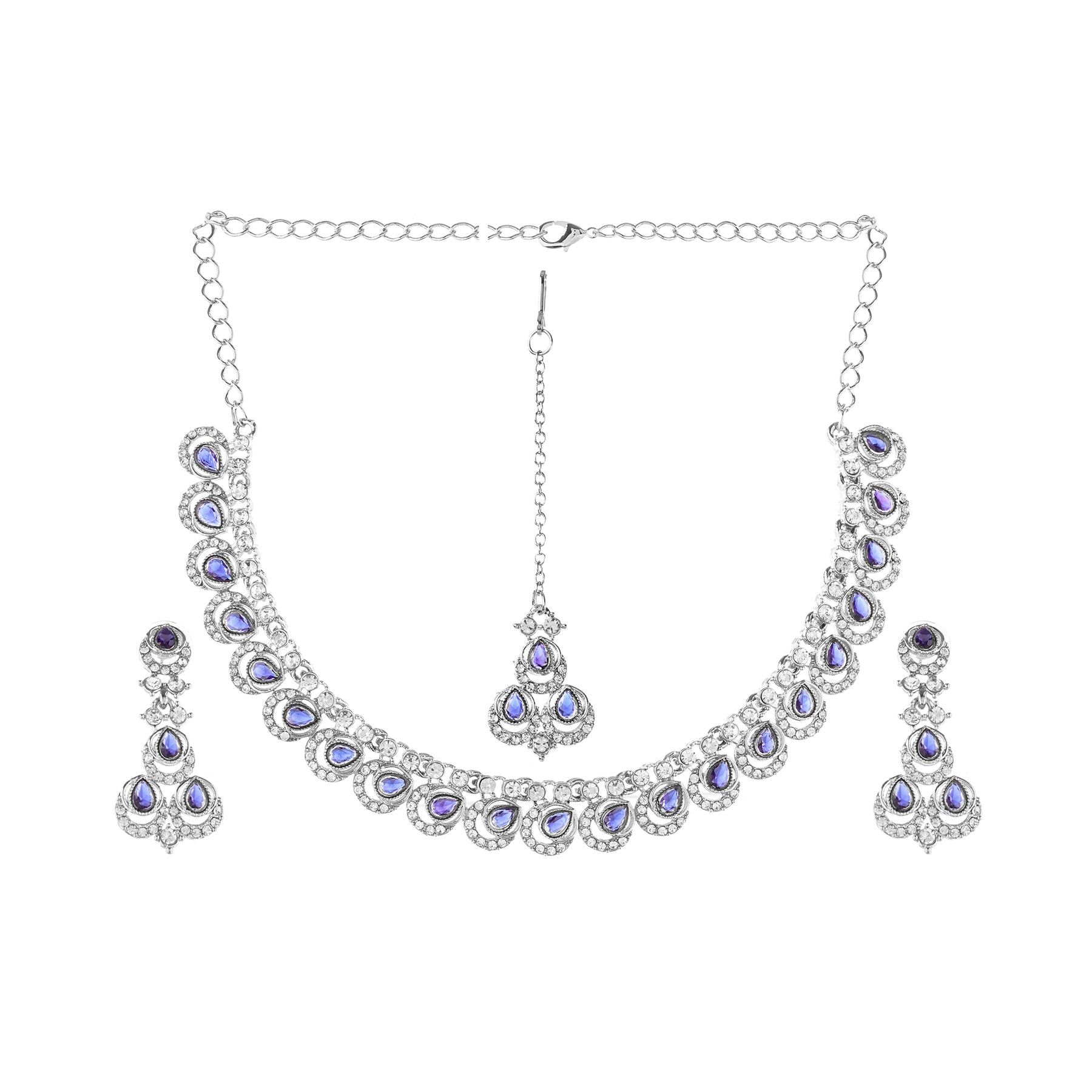 Silver Plated Blue Diamond Necklace With Earring Set