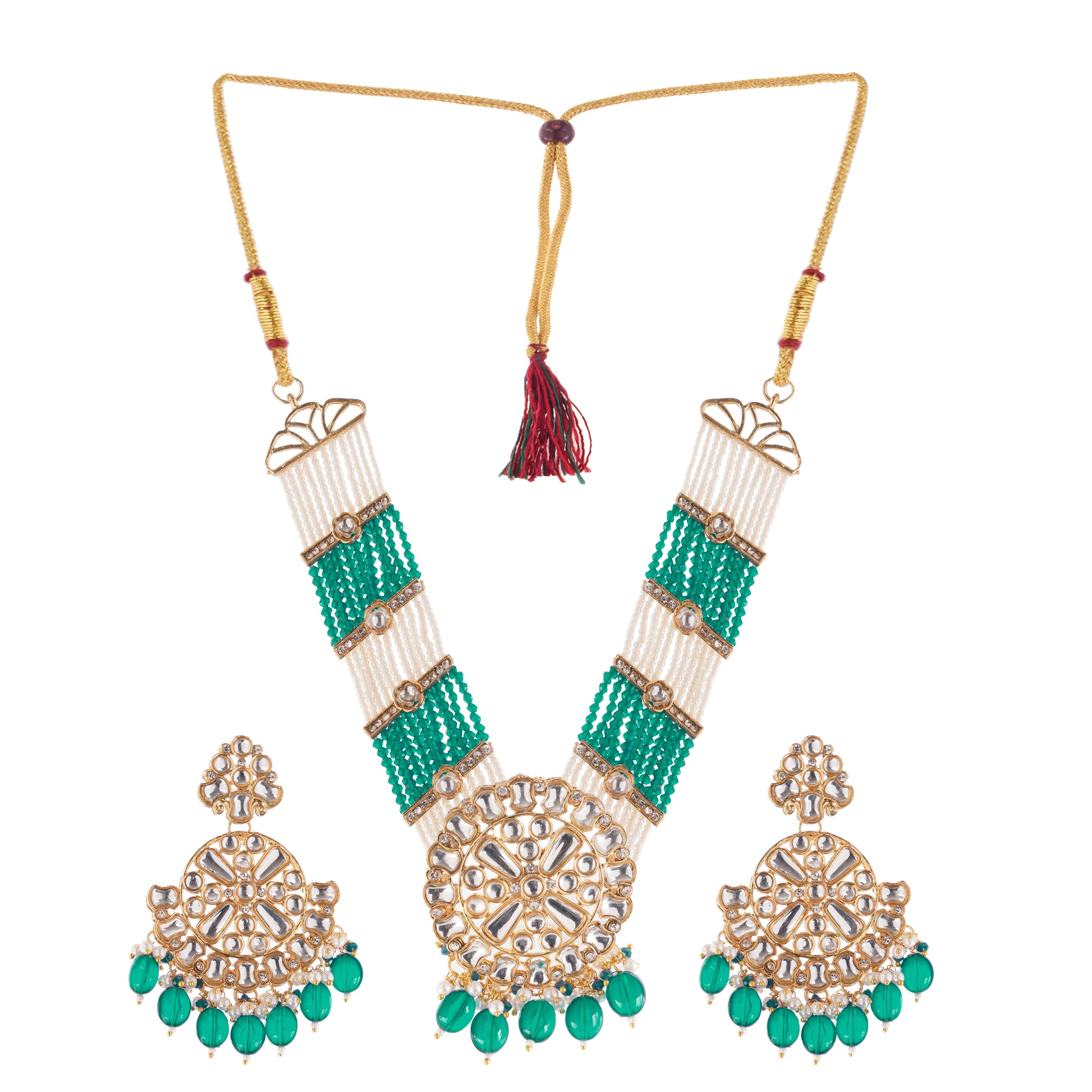 Traditional Green Kundan Necklace And Earrings Set For Women