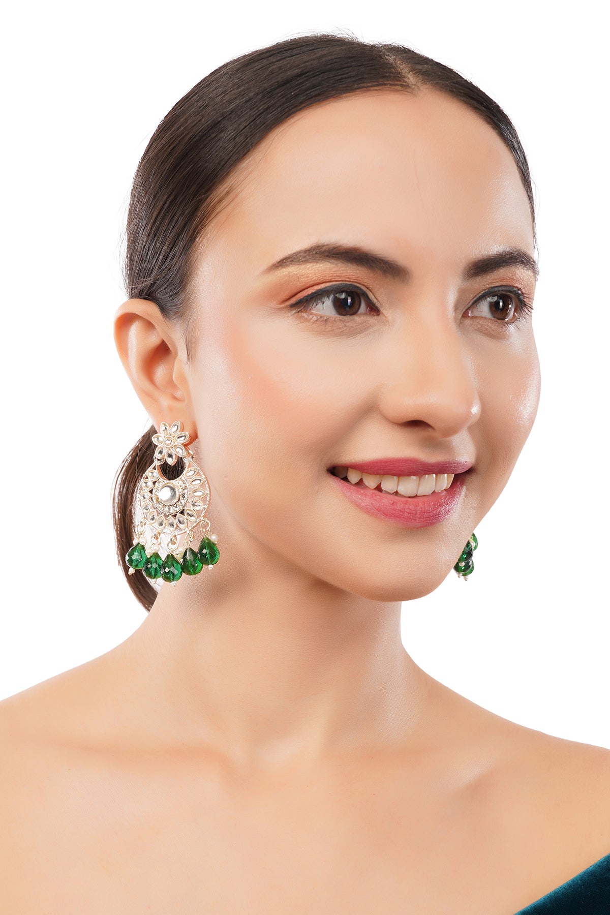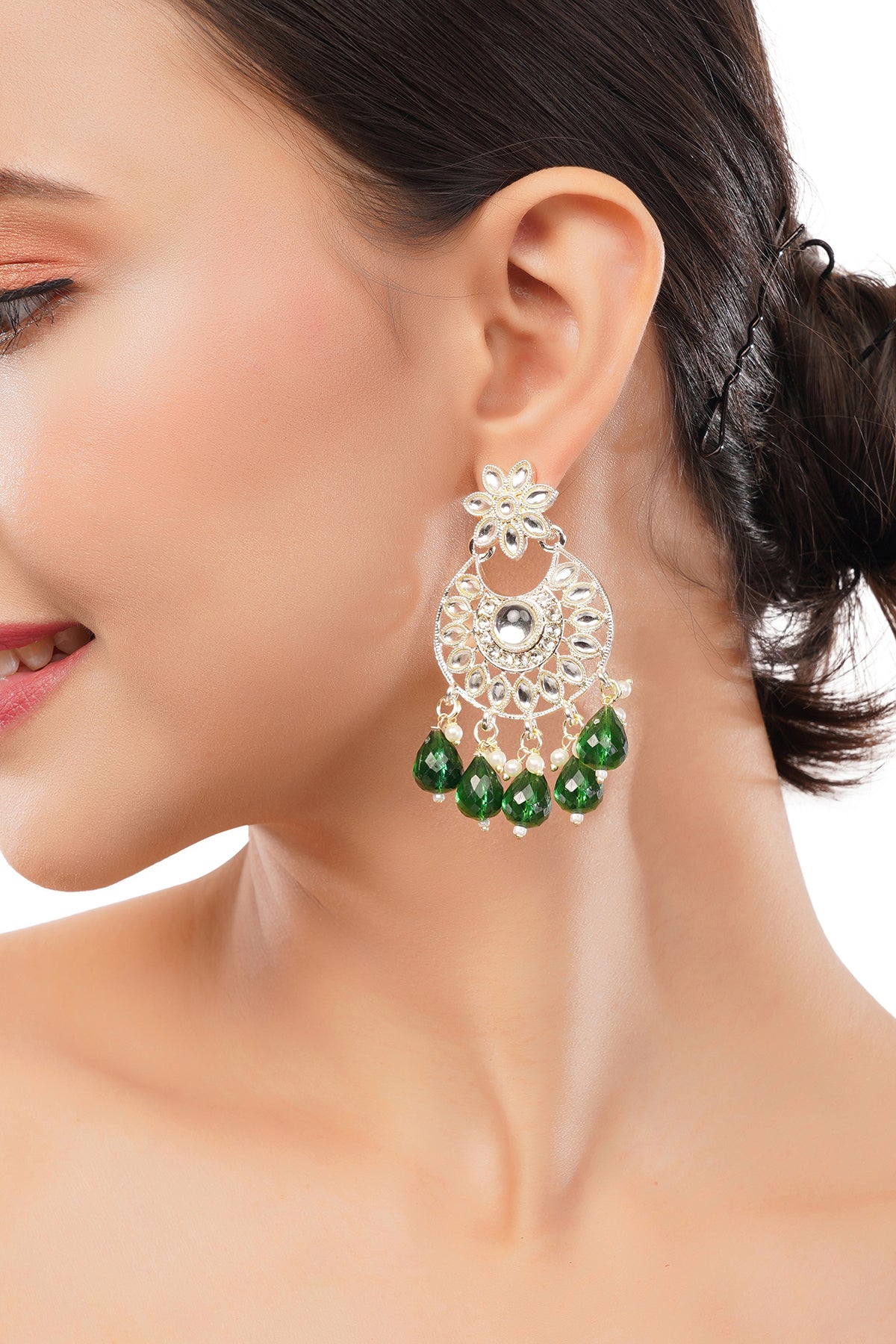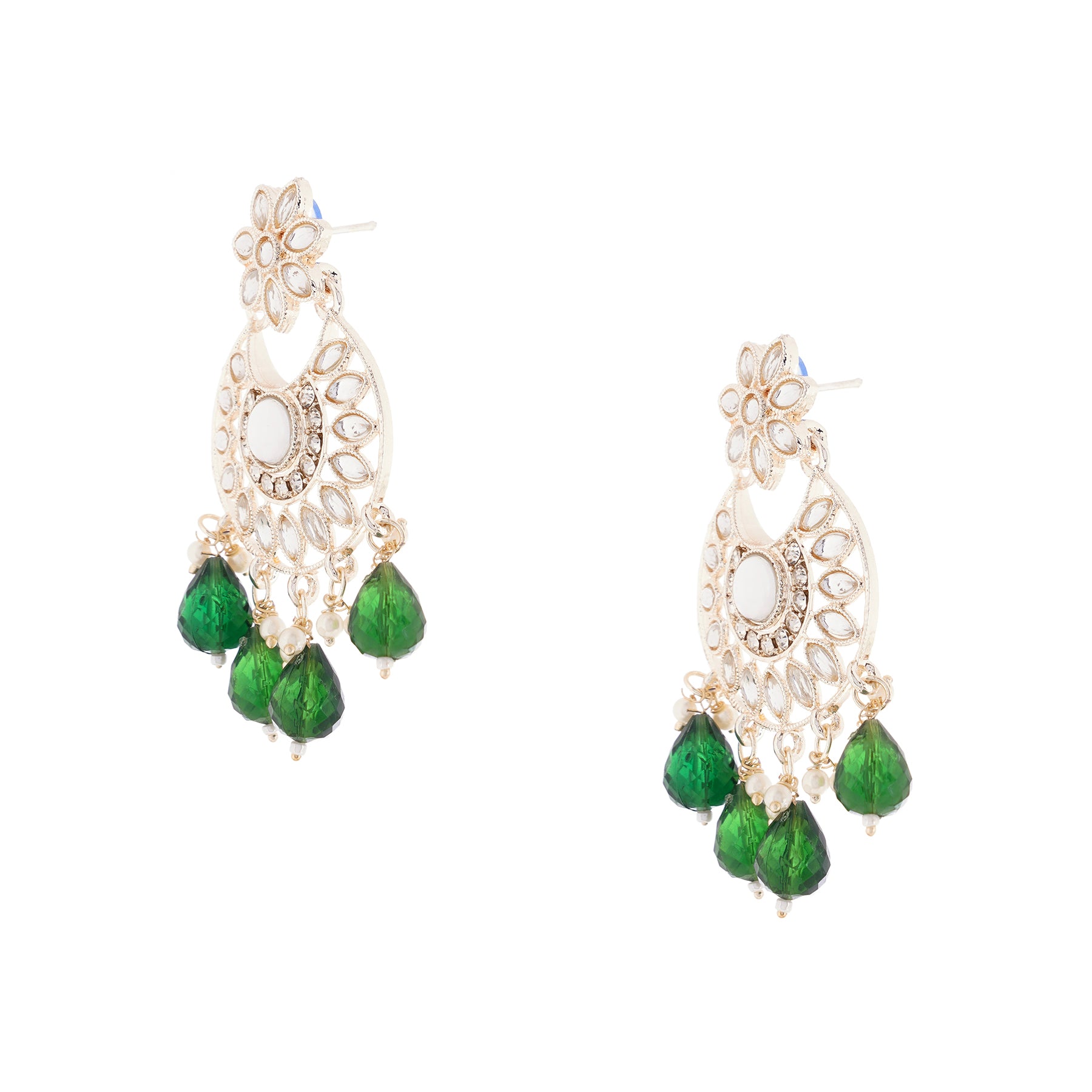 Traditional Green Pearl Earrings For Wedding
