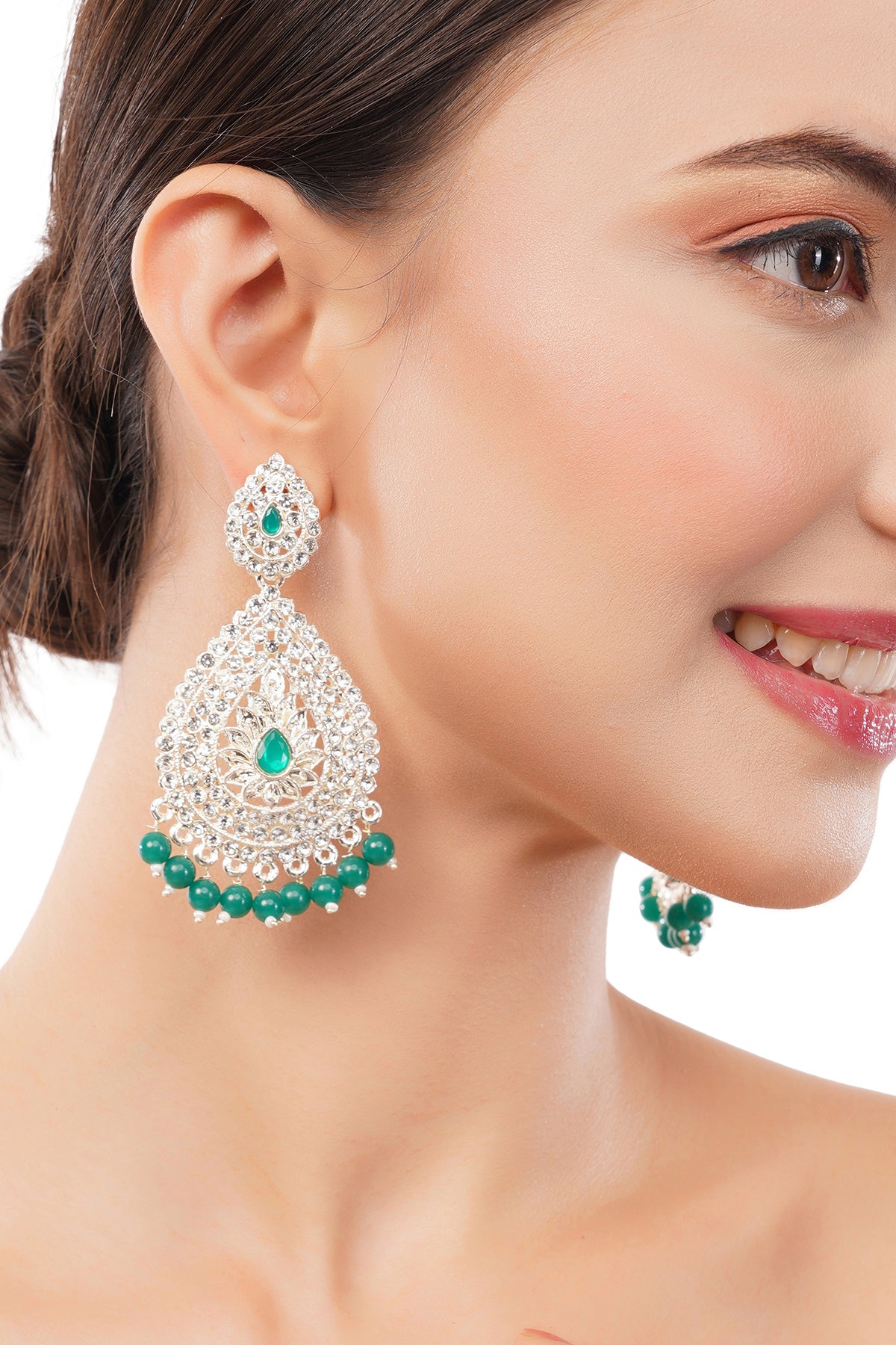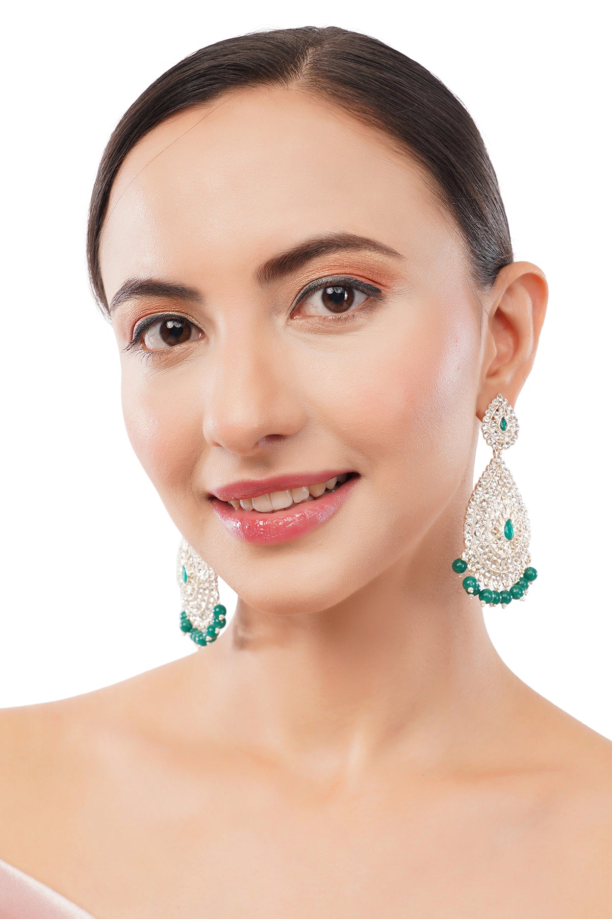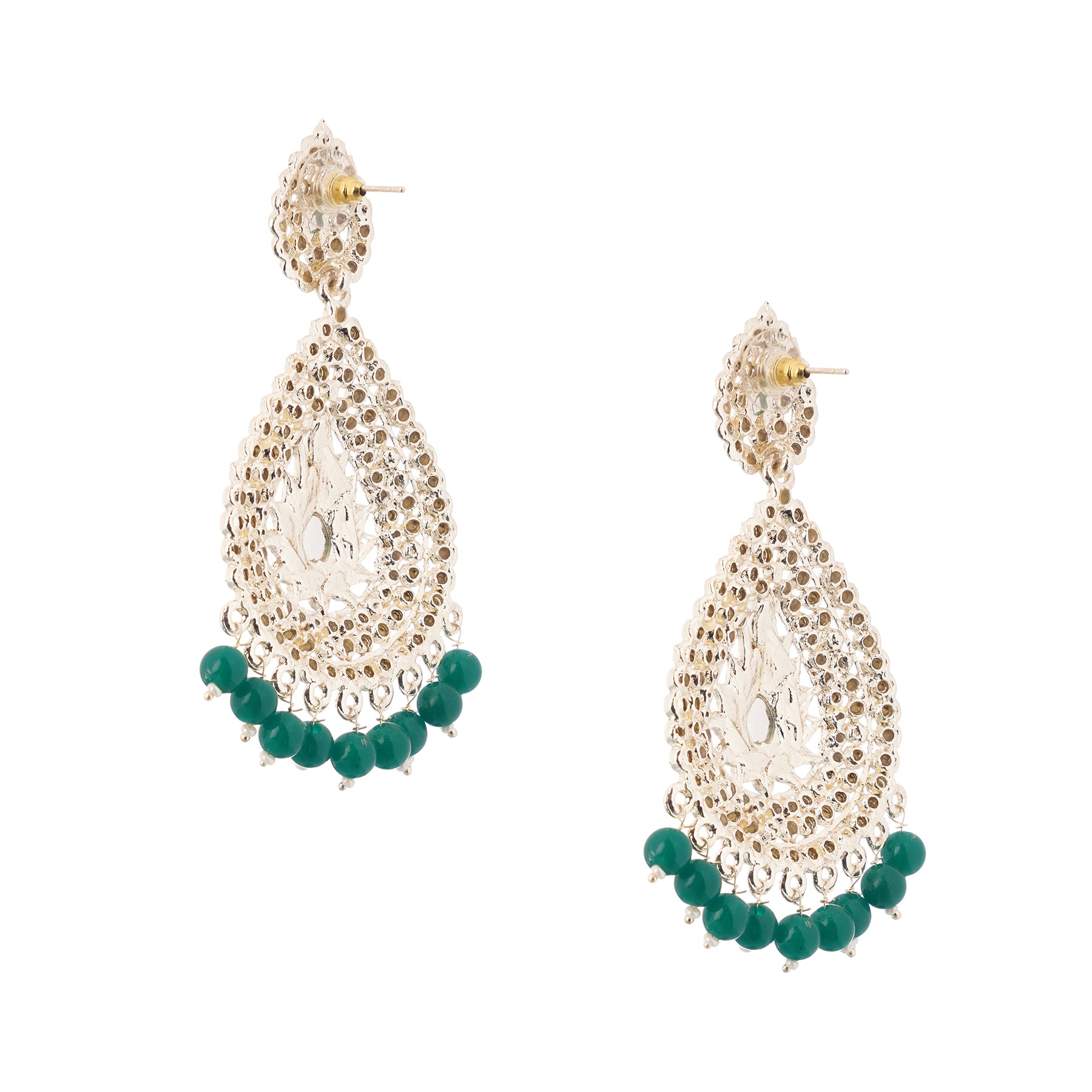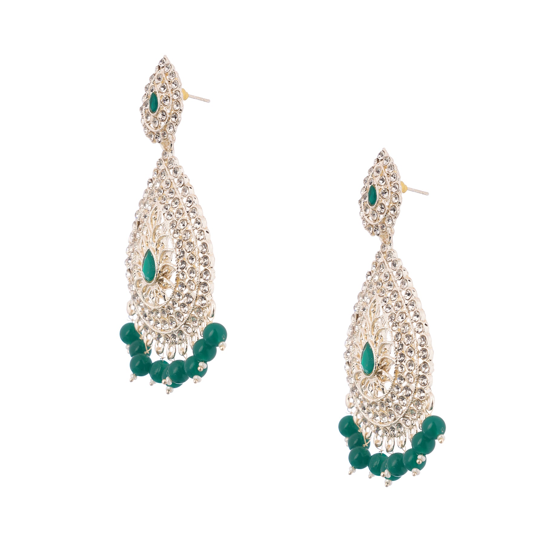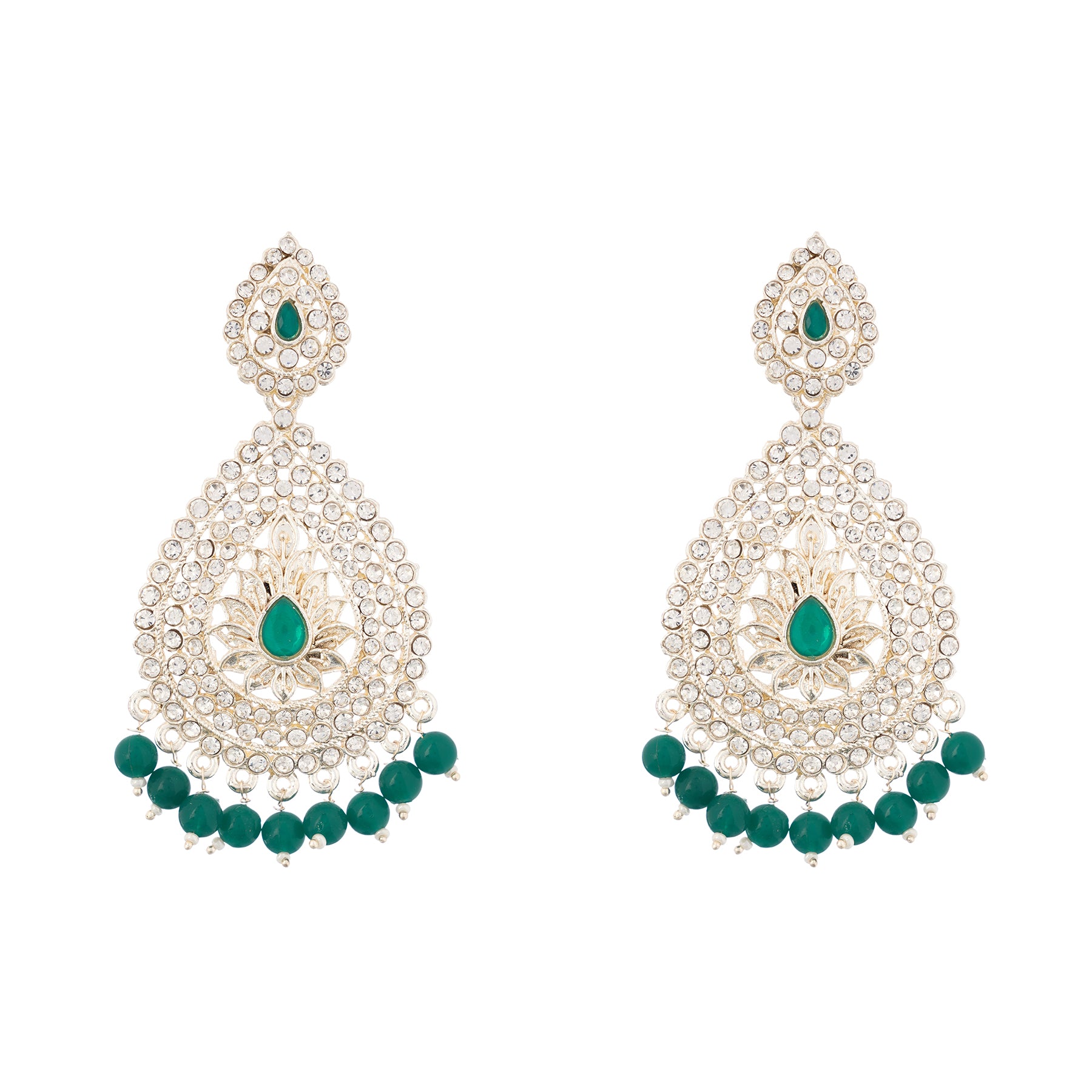 Traditional Green Pearl Long Earrings For Women